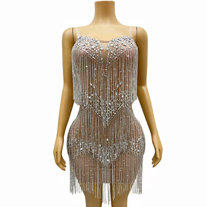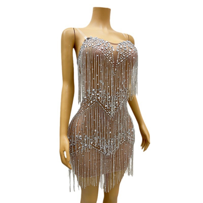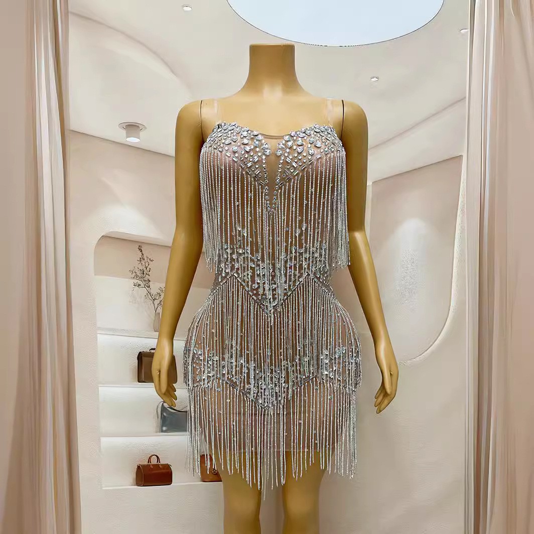 演出服时尚流苏连体镶钻高端活动礼服奢华拉丁舞服