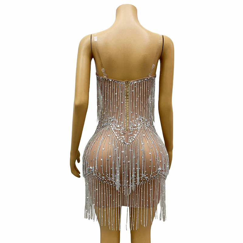 粉色性感流苏水钻身体链夜