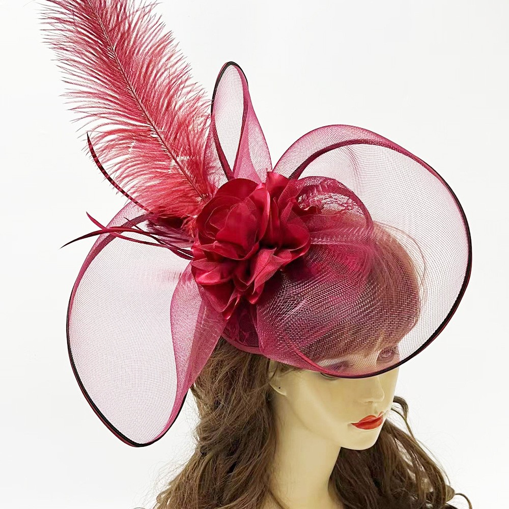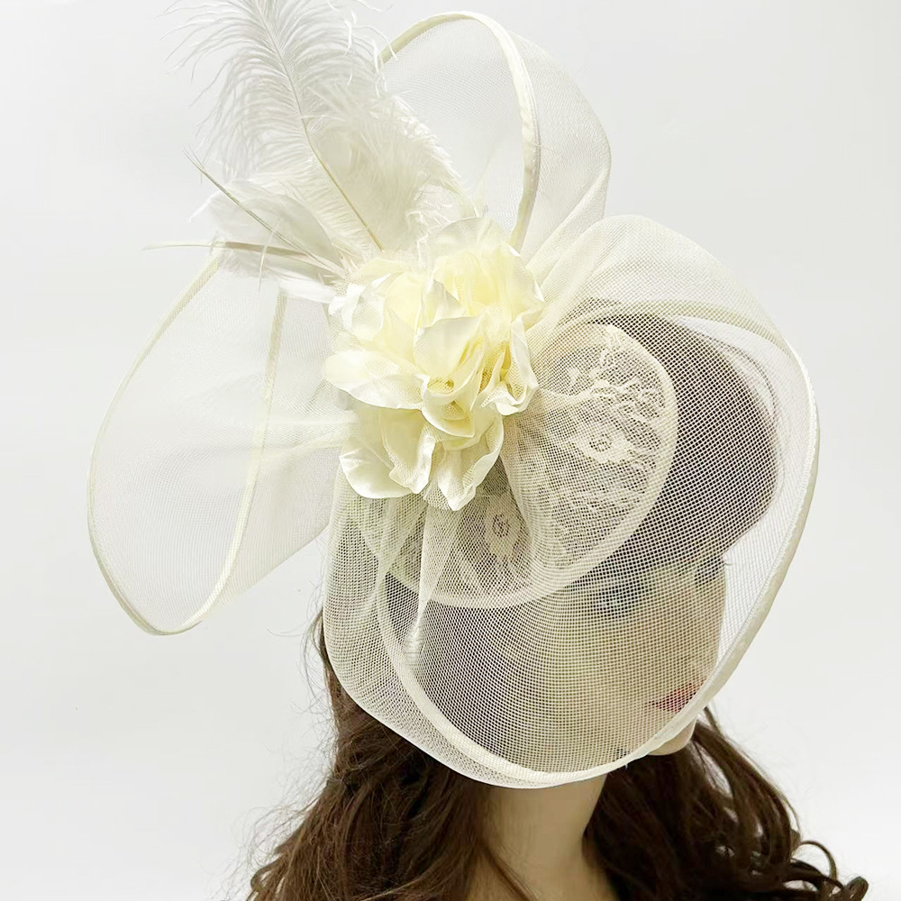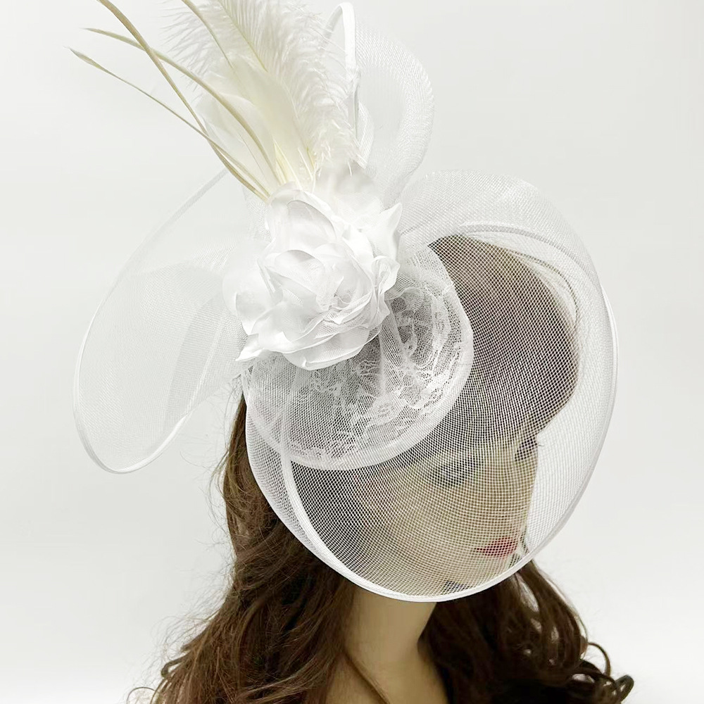 • 热卖网纱羽毛头饰蕾丝鸵鸟毛百搭发饰派对表演头花