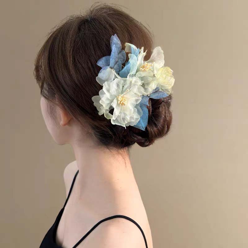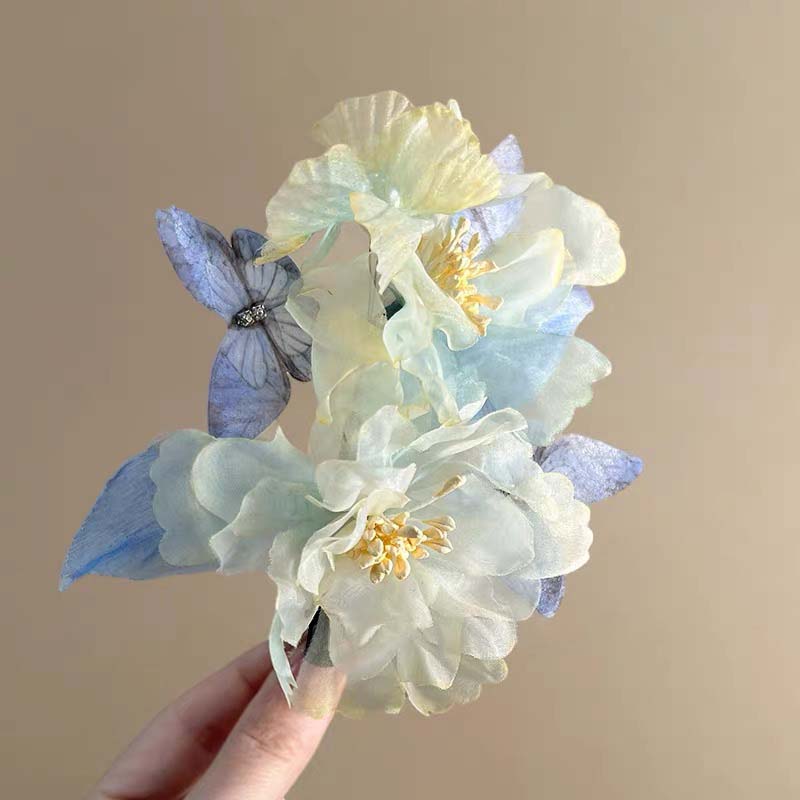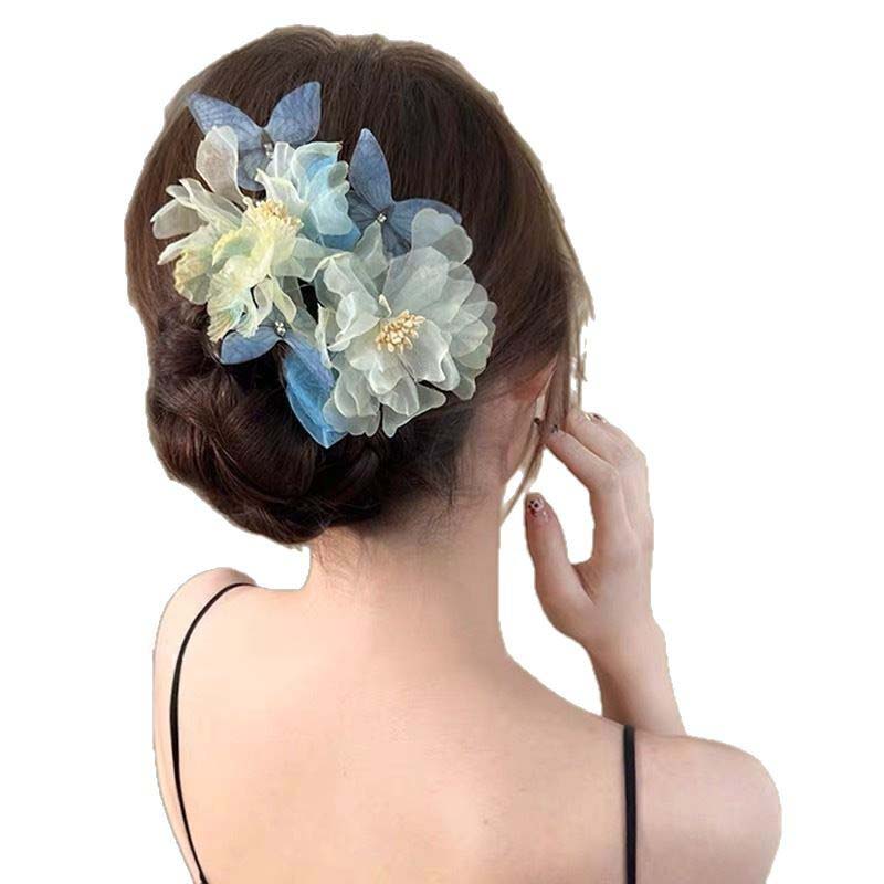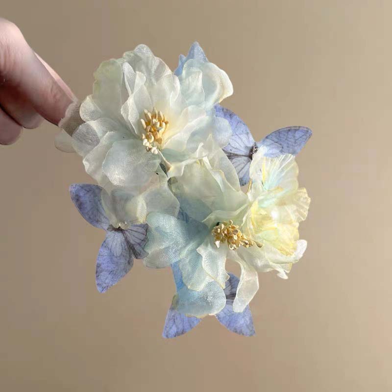 • 牡丹手工烫印发夹薄纱布仙女般的丝绸花仿古汉服发饰头饰