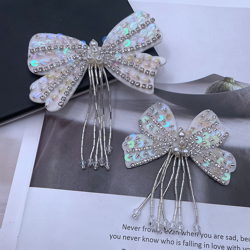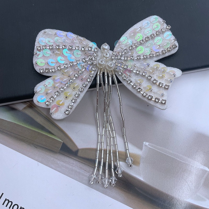 现货手工钉珠流苏幻彩亮片水钻蝴蝶结衣服辅料饰品辅料diy布贴