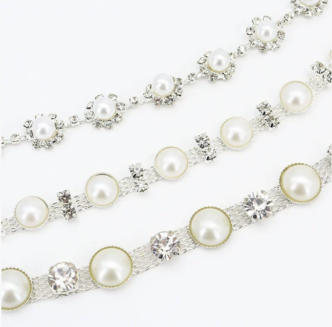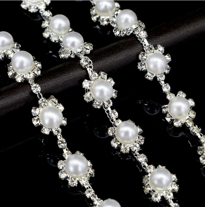 珍珠辅料爪链手缝钻花式码链服装配件珍珠链条配饰diy饰品水钻链