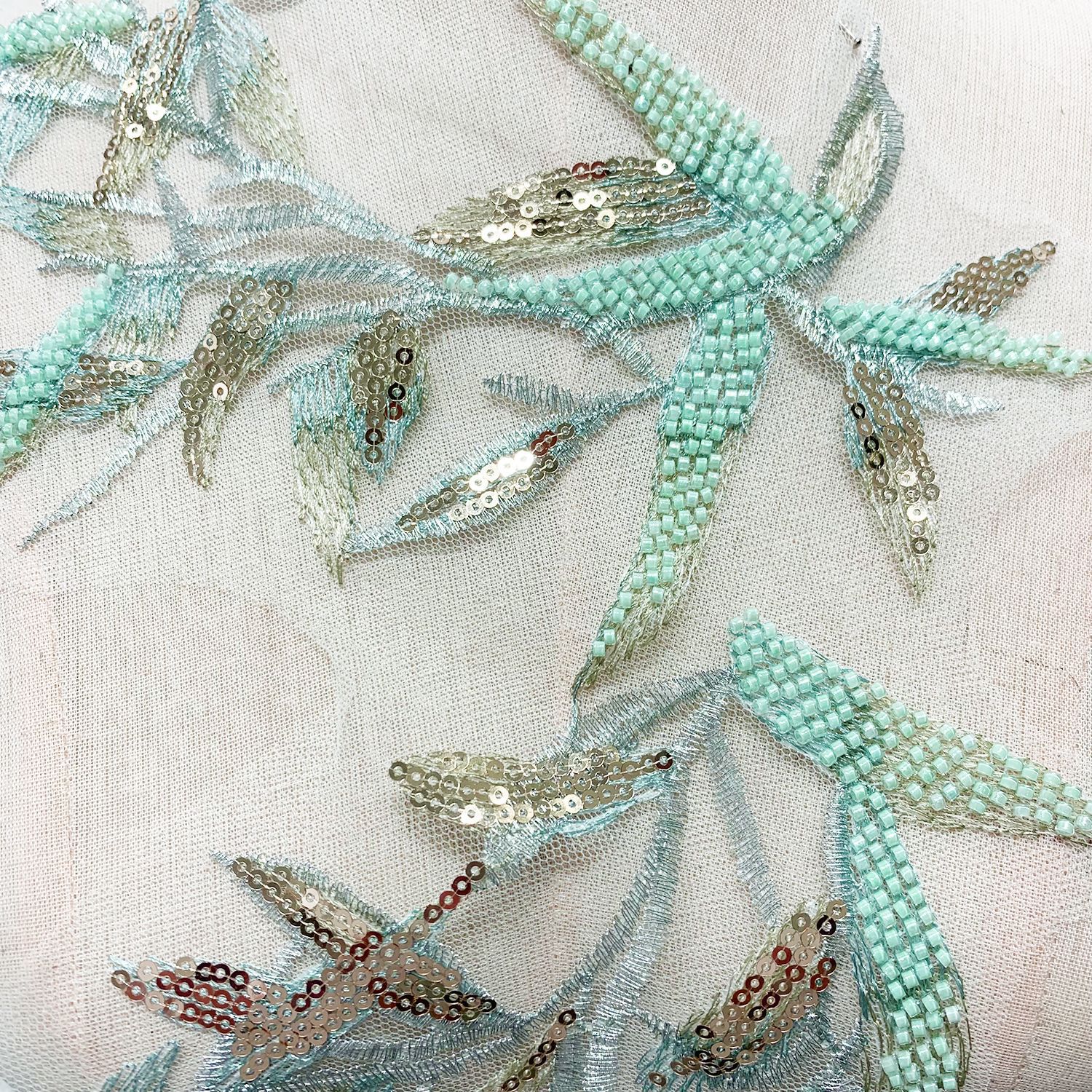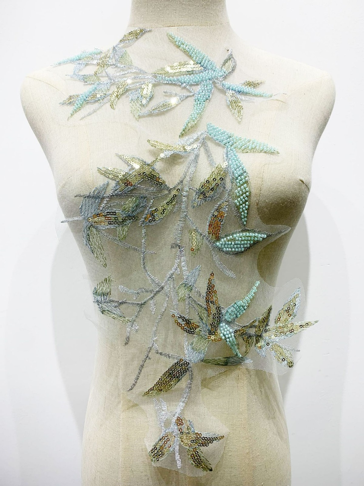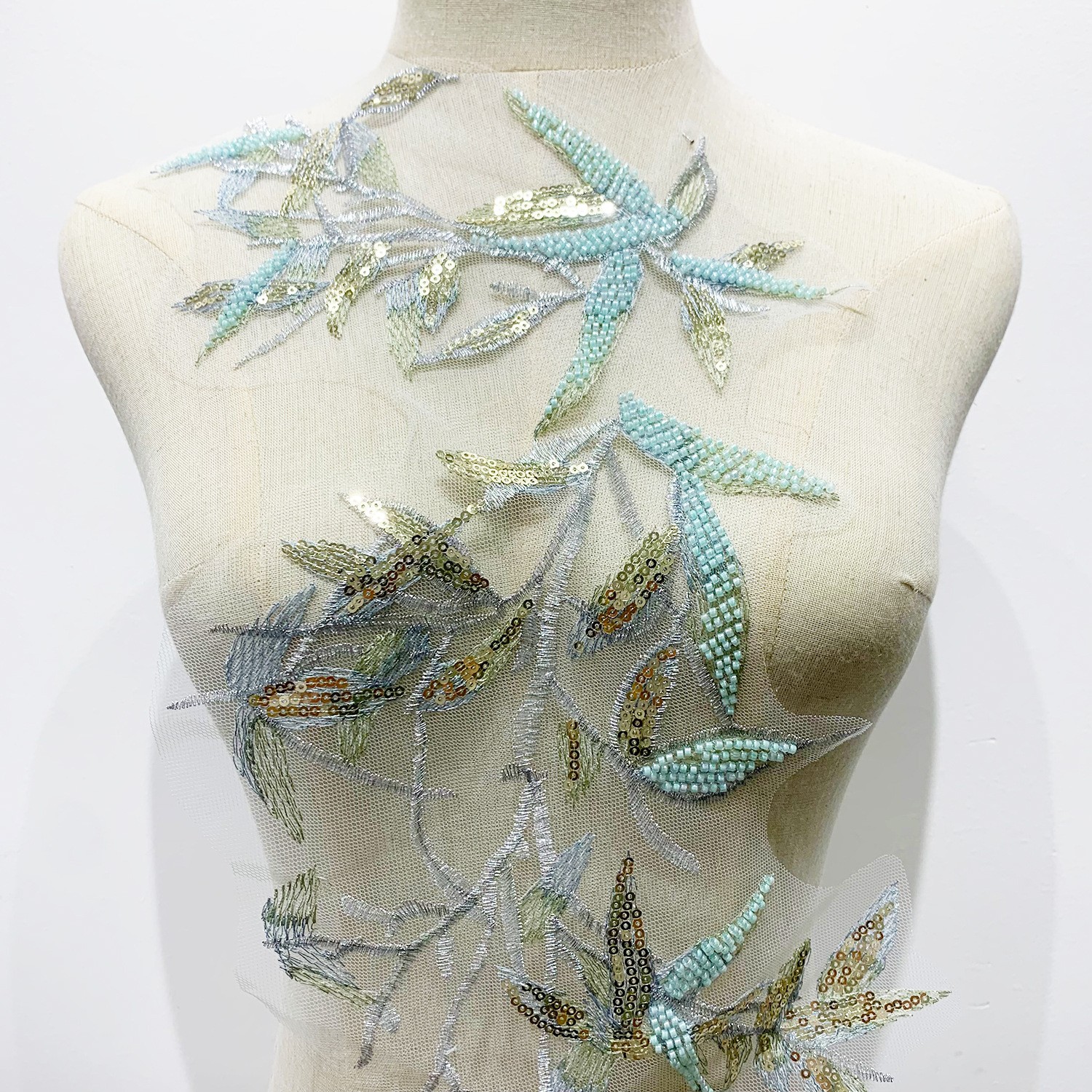 珠管亮片绣花竹叶花网纱底蕾丝刺绣贴布民族舞台服装装饰辅料
