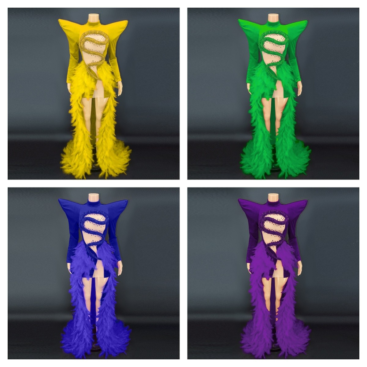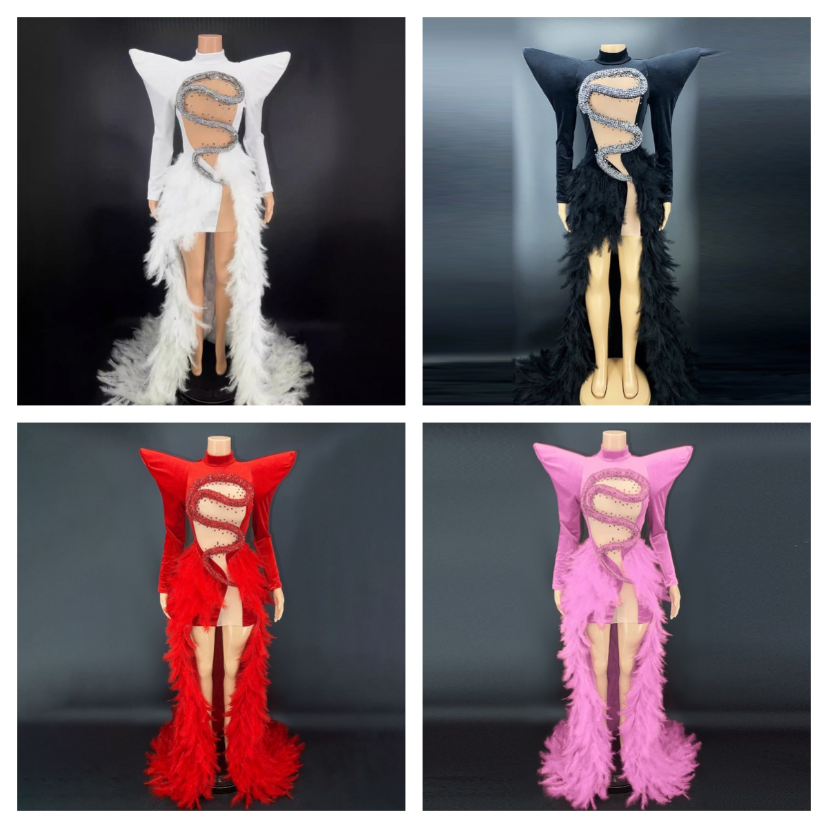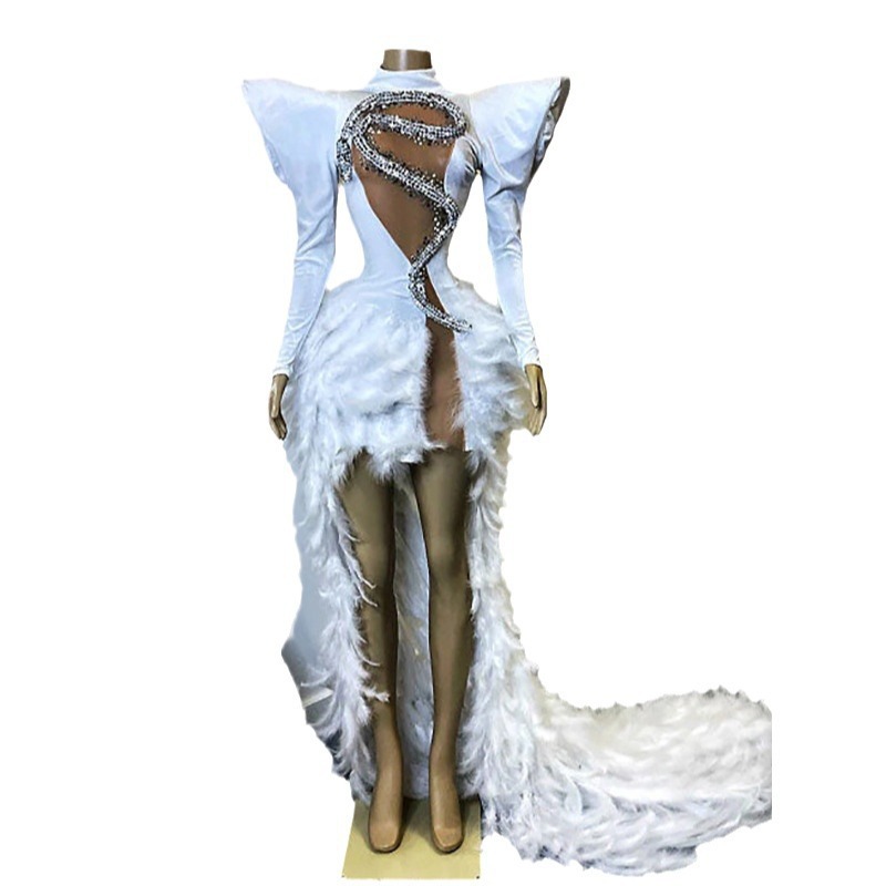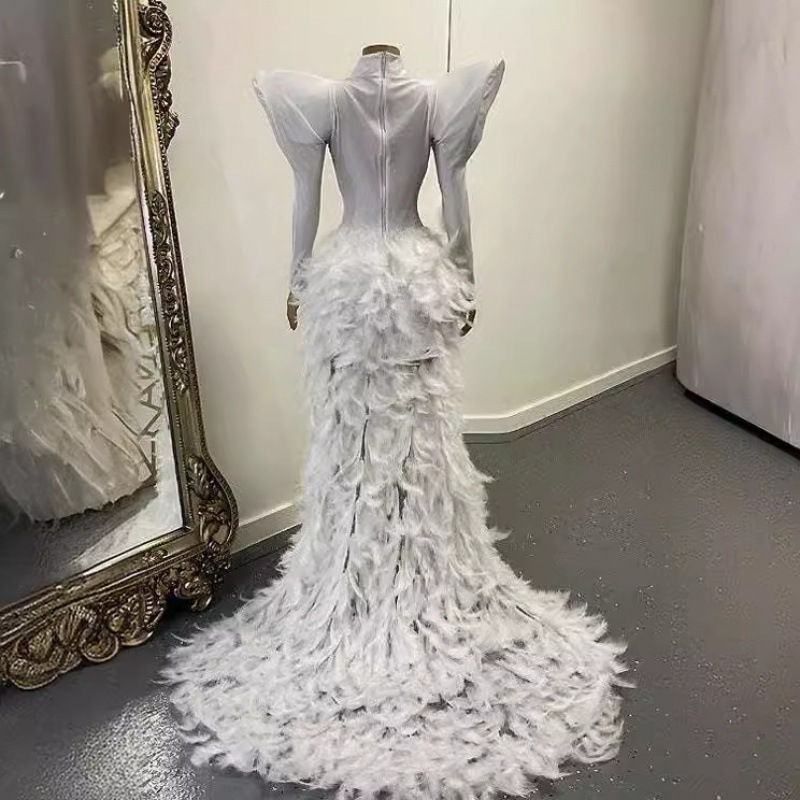 生日服装精品供应商水钻羽毛连衣裙晚会舞台服装前庭晚礼服