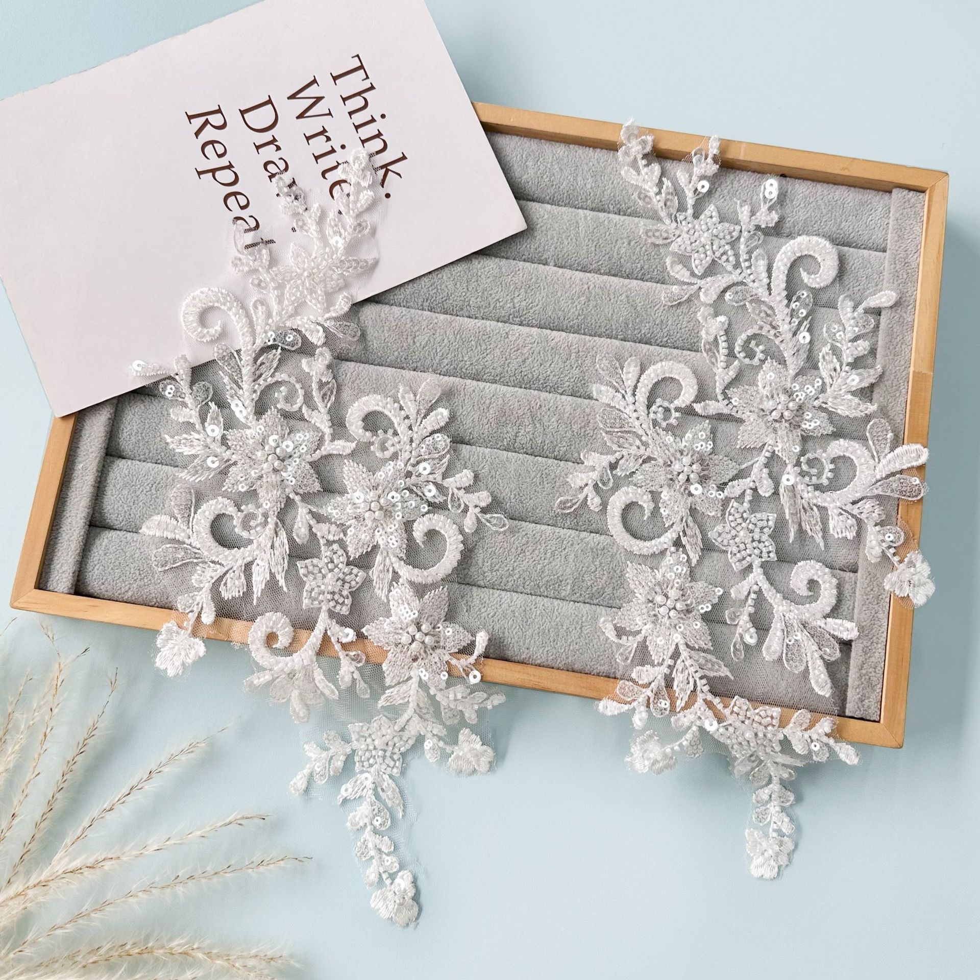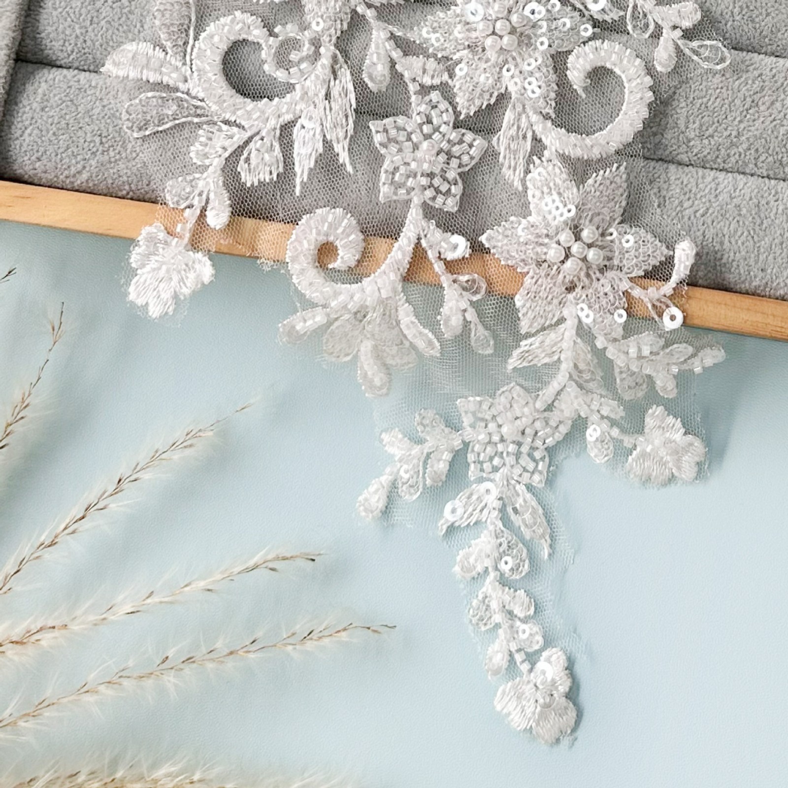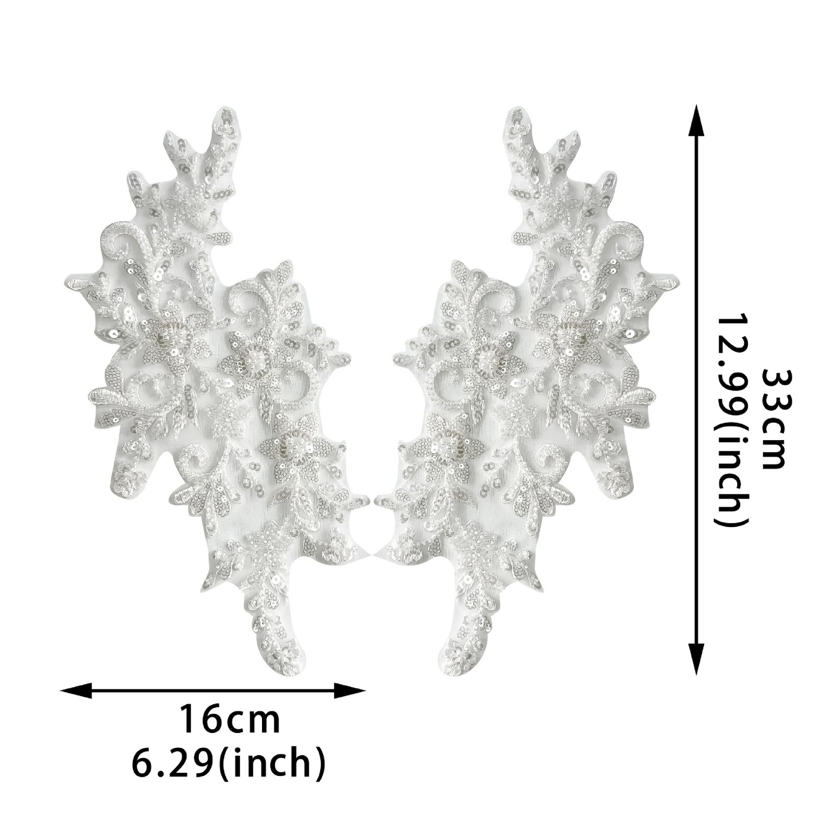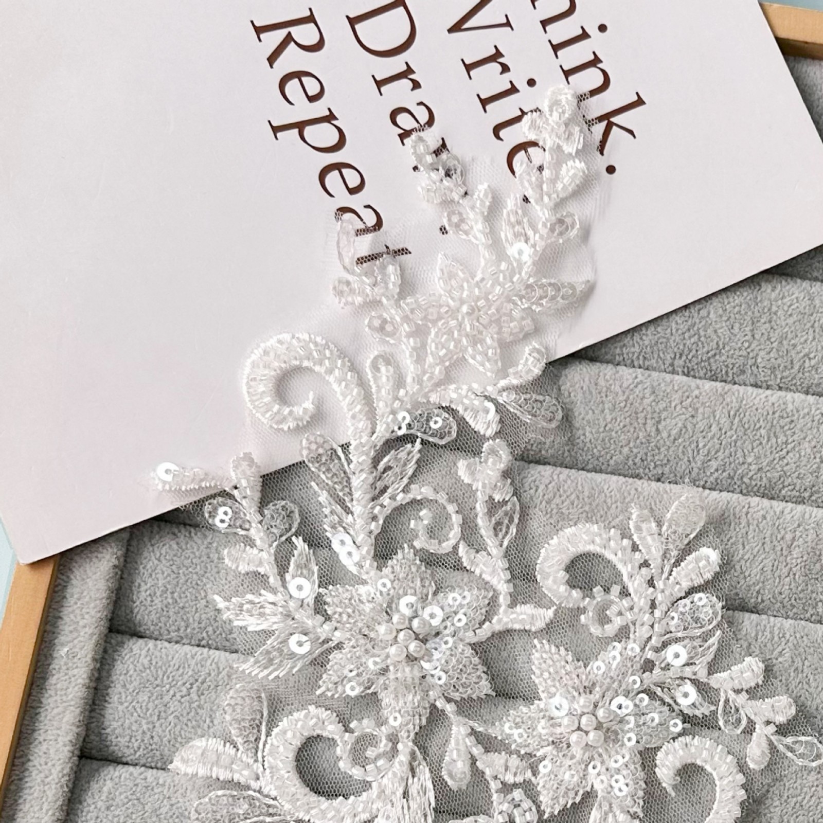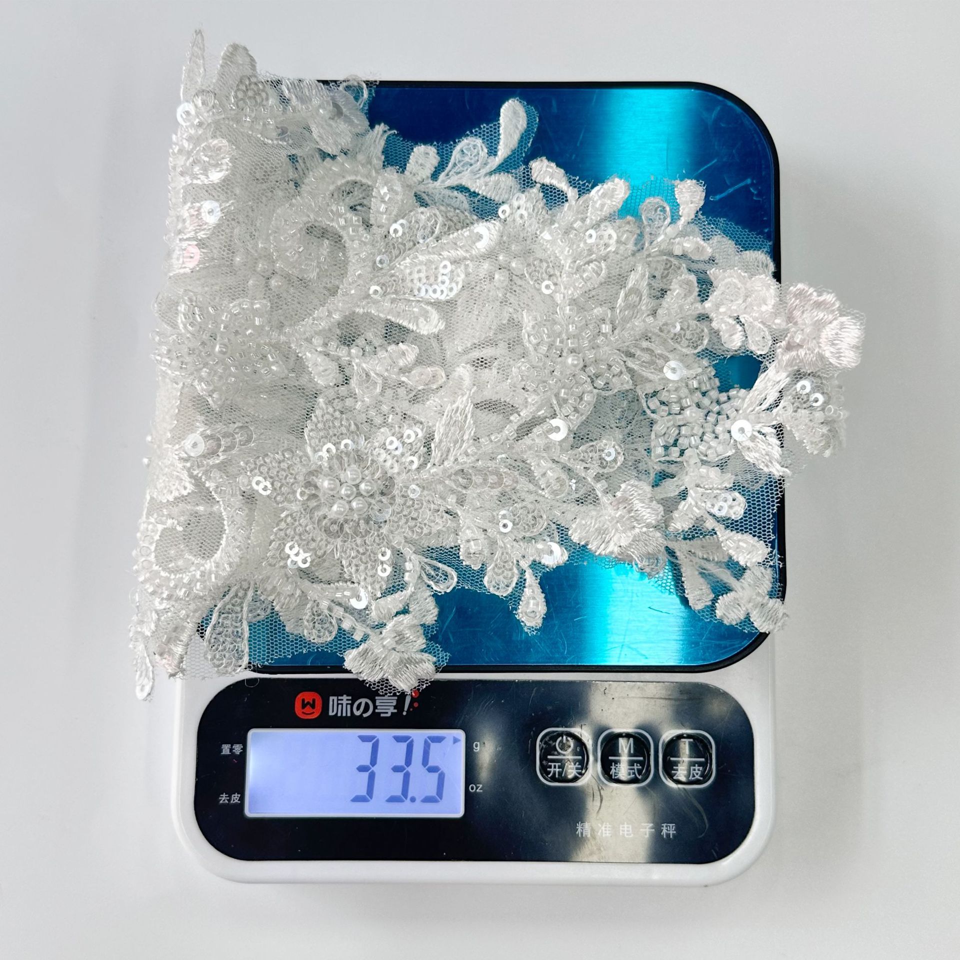 白色钉珠绣花亮片花朵刺绣布贴镂空服装辅料婚纱礼服蕾丝配饰装饰