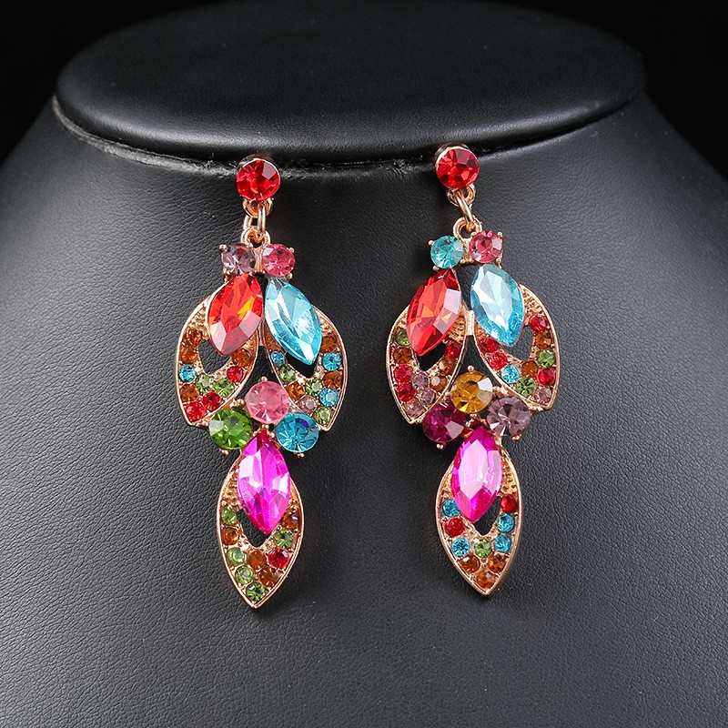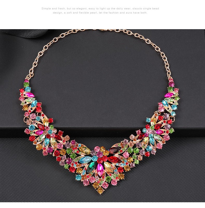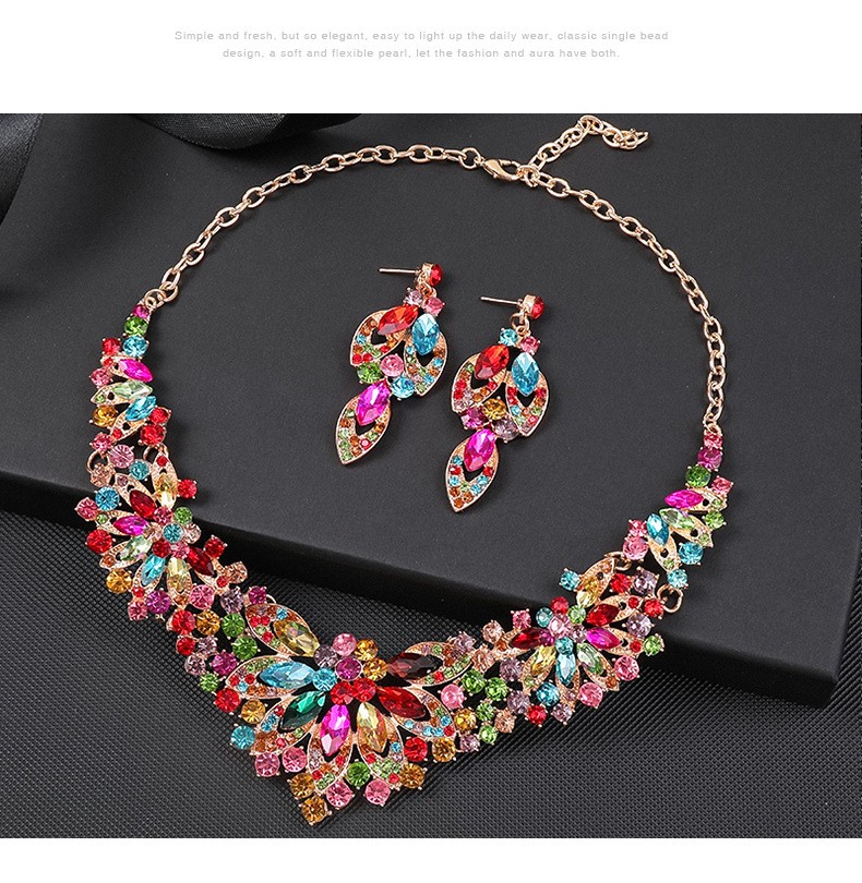 • 礼服首饰高级设计感项链耳环两件套彩色花朵复古