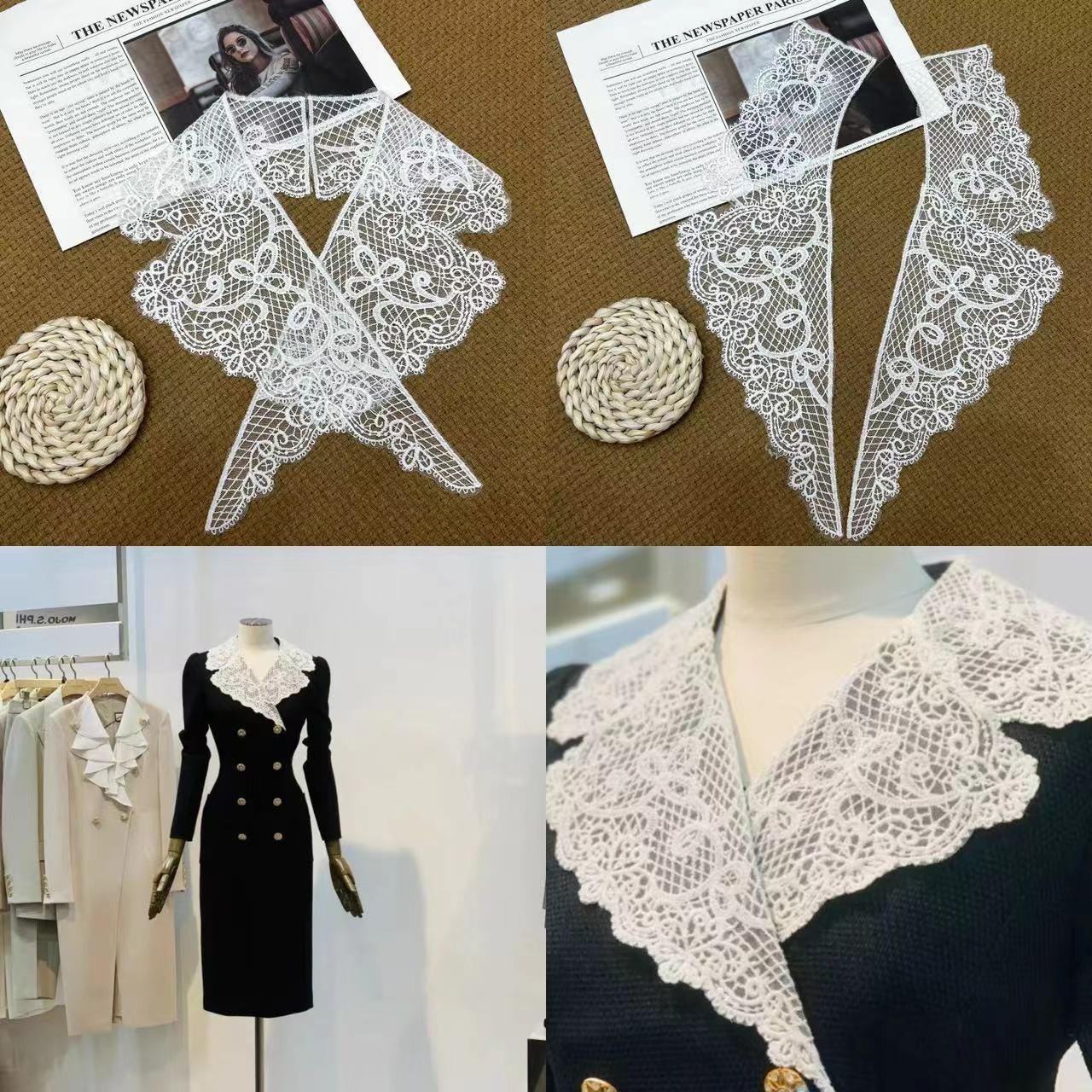 秋季新款西装套裙V领斜领 水溶蕾丝刺绣领子 涤纶大V领 服装辅料
