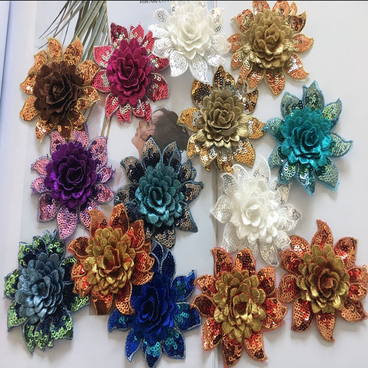 立体亮片小花朵刺绣布贴补丁婚纱舞蹈衣礼服装饰辅料DIY