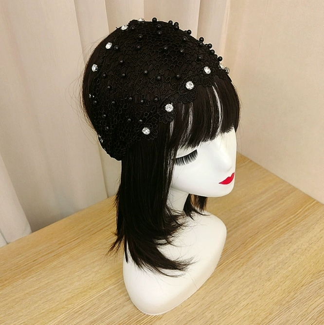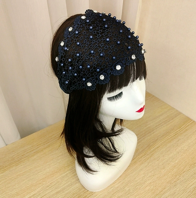 花朵镂空钉珠发带跨境热销钩花珍珠头套蕾丝宽边压发头巾发饰批发