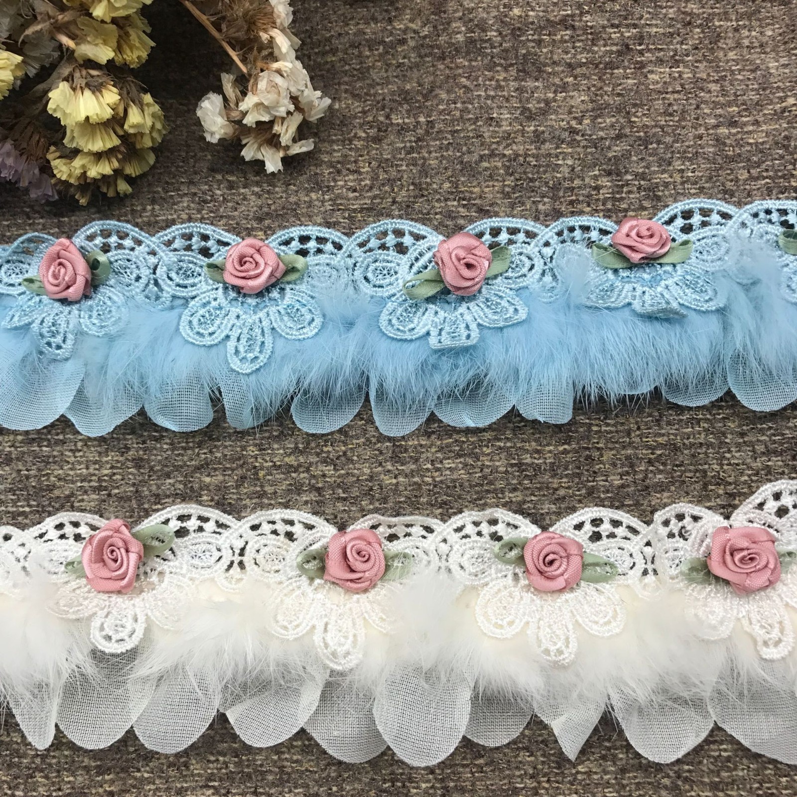 荷叶边立体胶花涤纶浅色水溶条码服饰家纺DIY辅料蕾丝花边