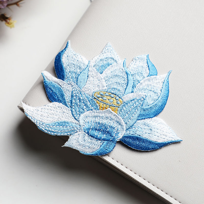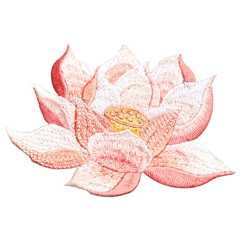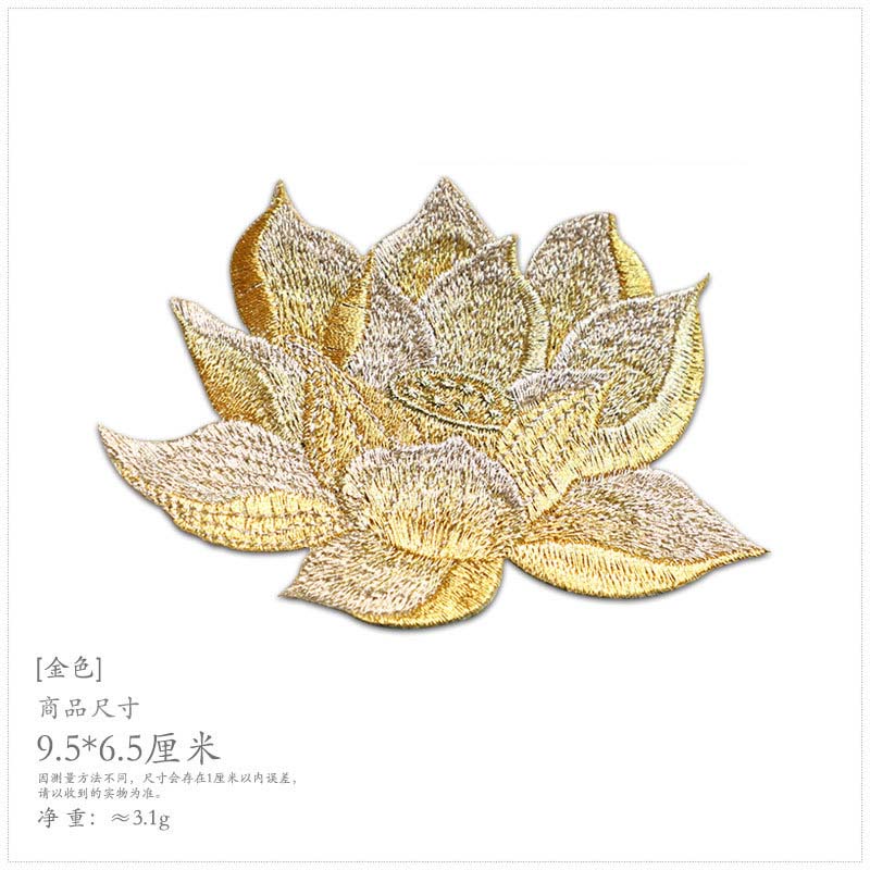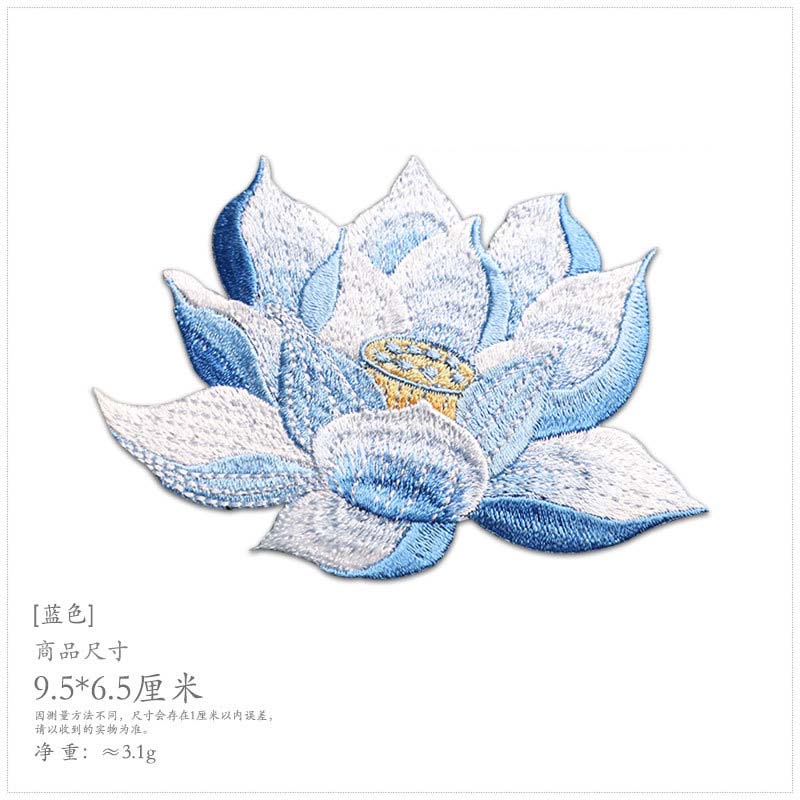 荷花刺绣布贴补丁DIY扇面衣服装饰背胶烫贴