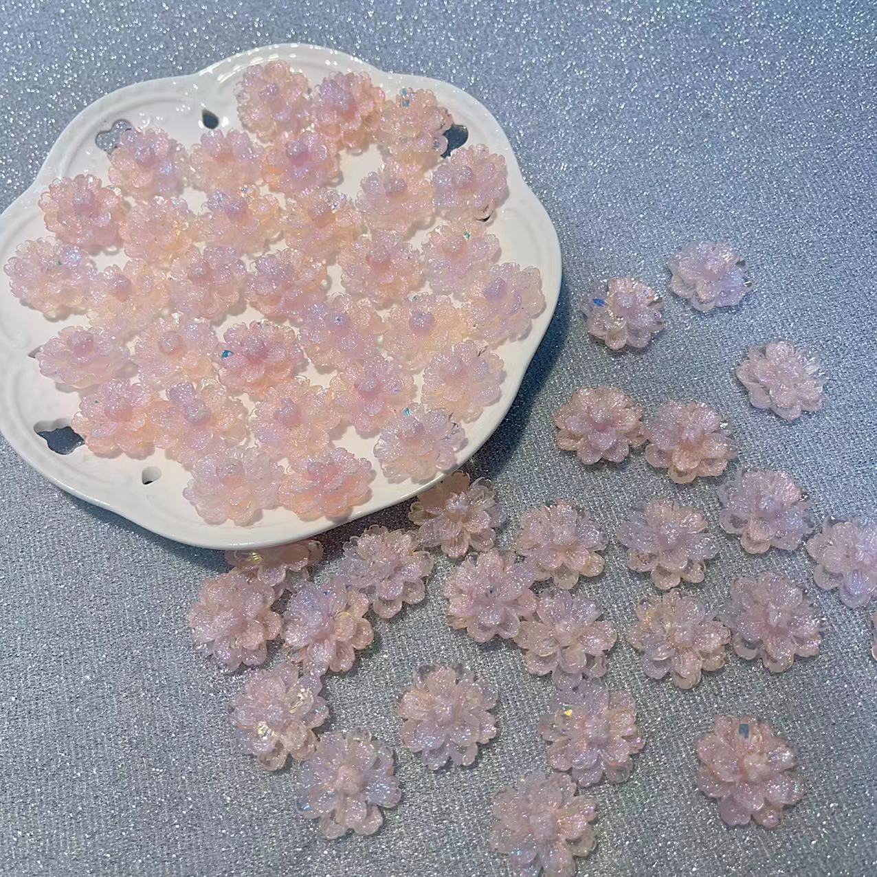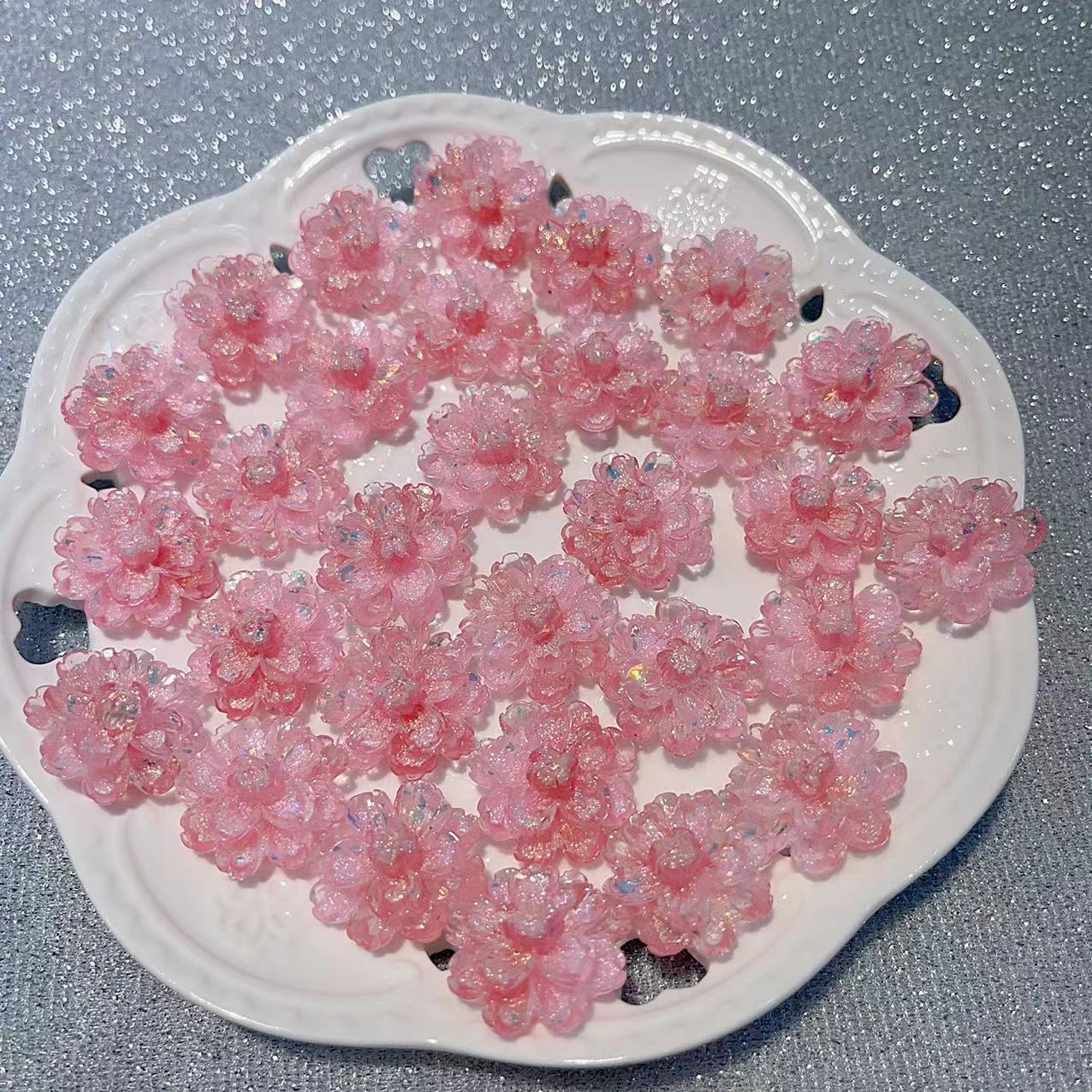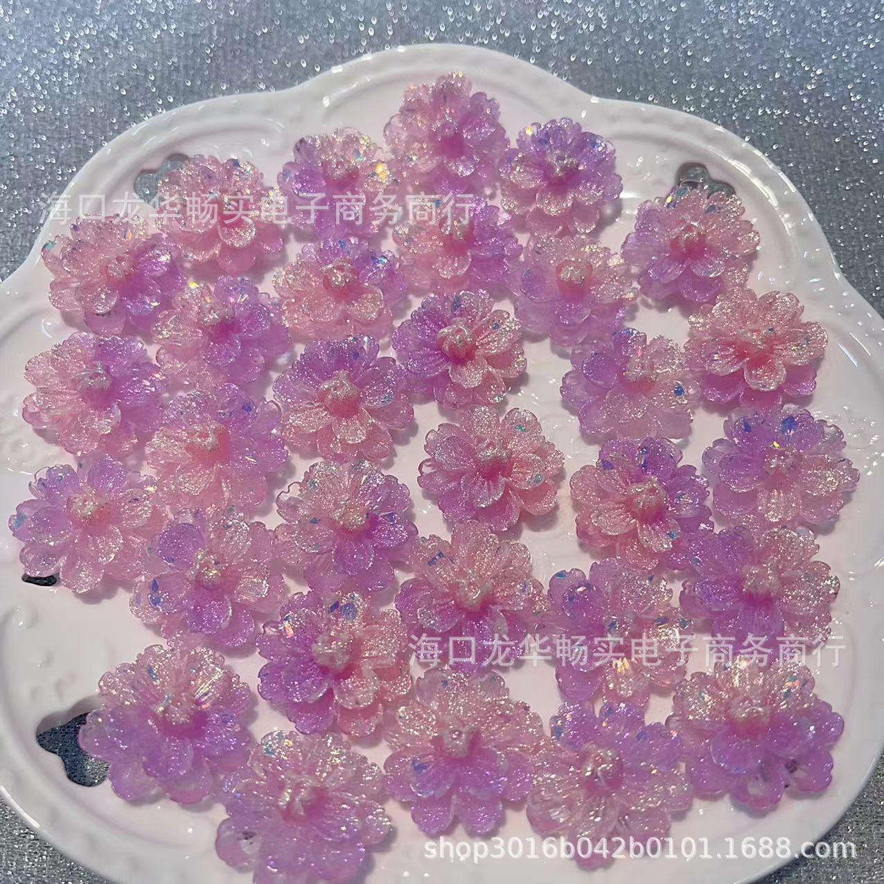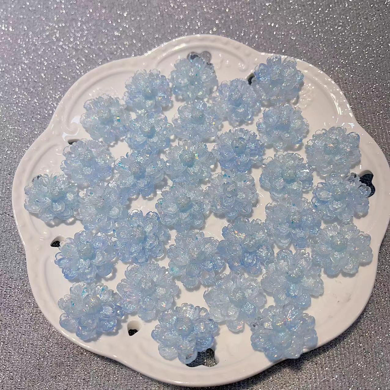 • 萤火虫悬浮冰透双层芙蓉花2.3cm手工DIY饰品-夜光树脂花