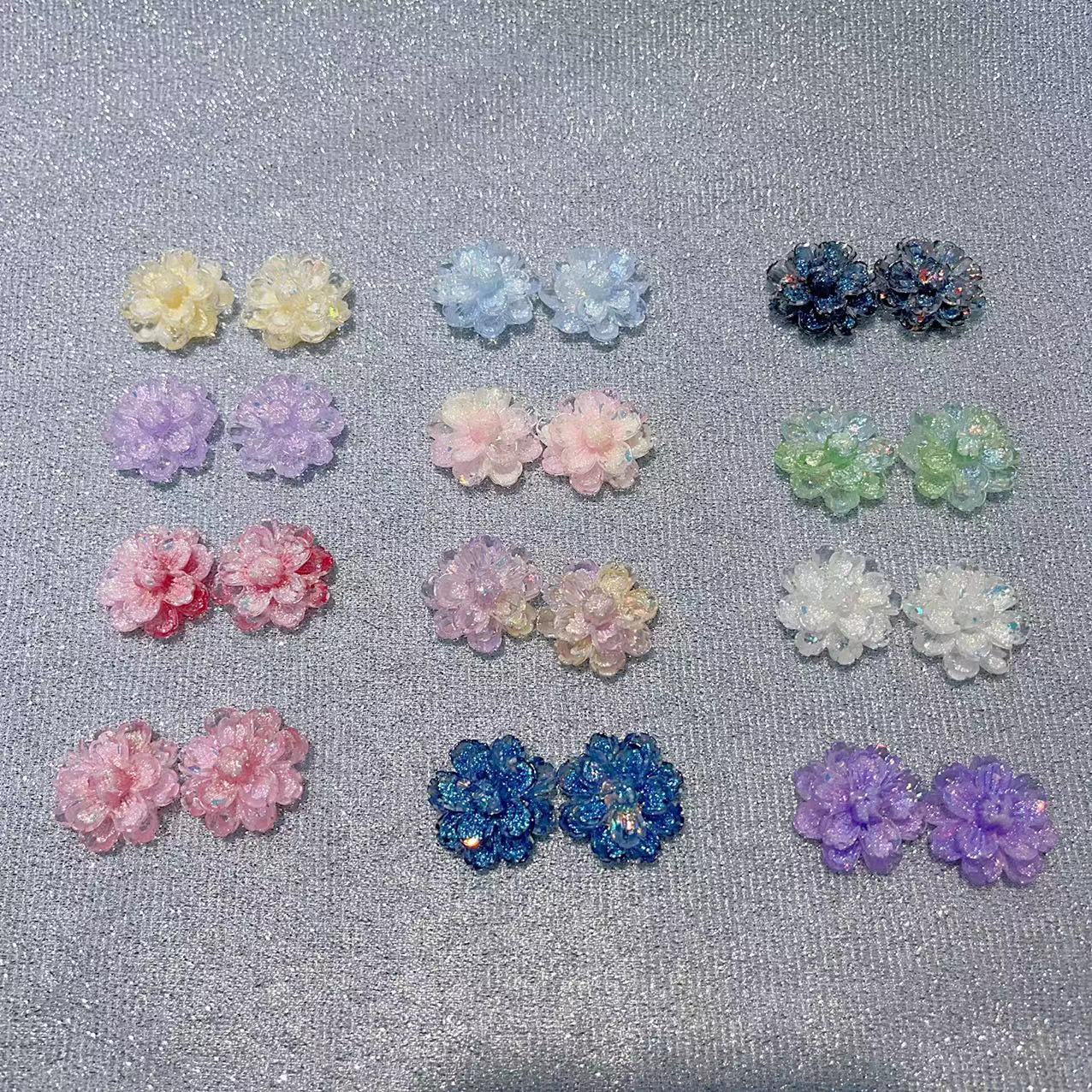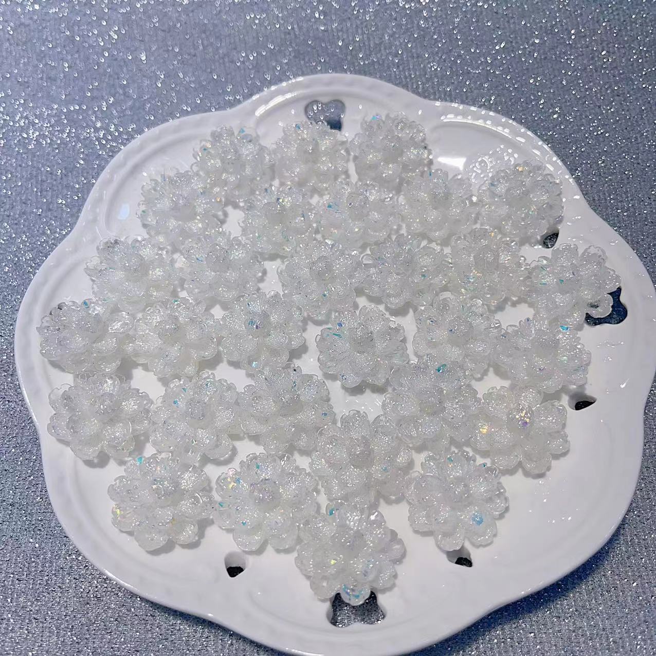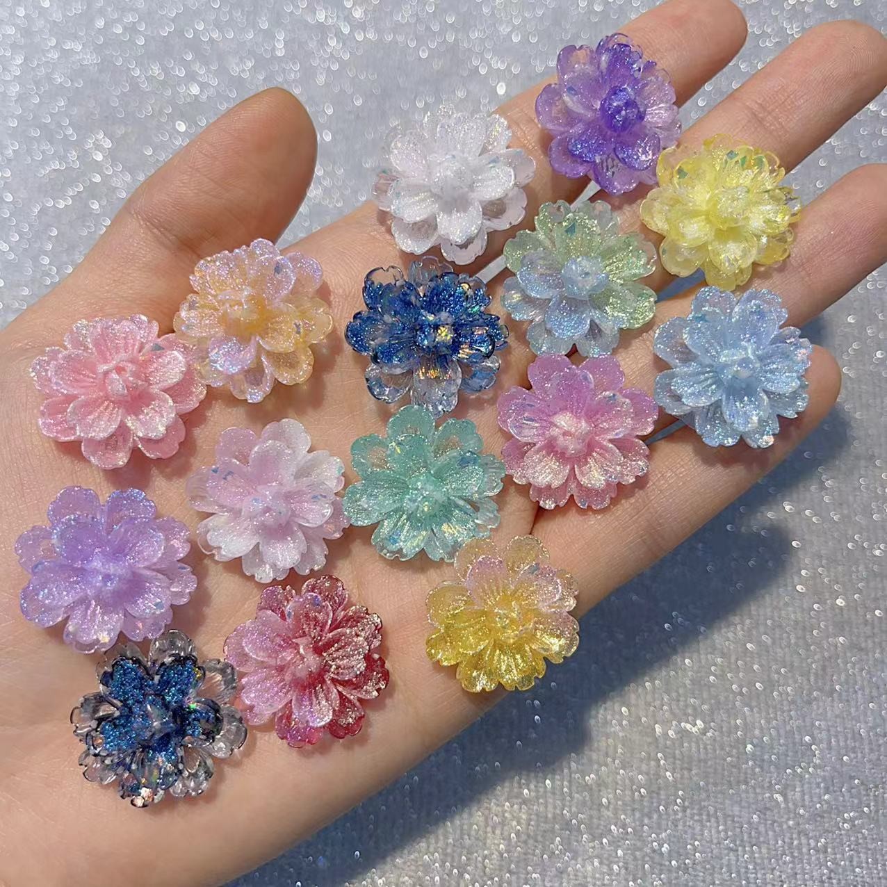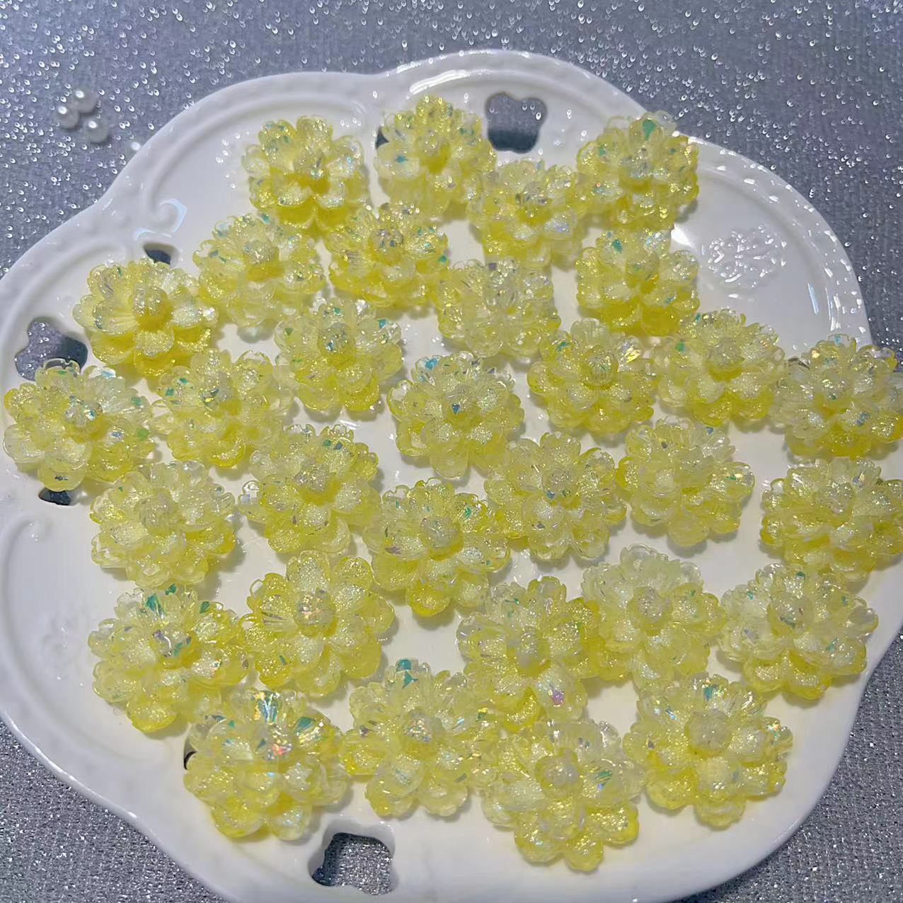 • 萤火虫悬浮冰透双层芙蓉花2.3cm手工DIY饰品-夜光树脂花