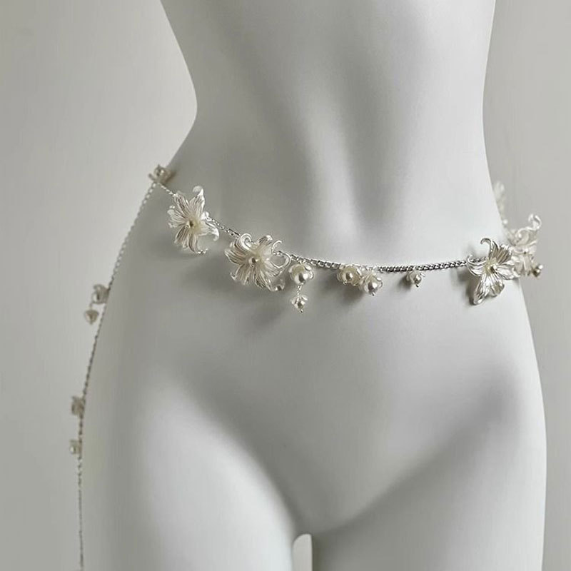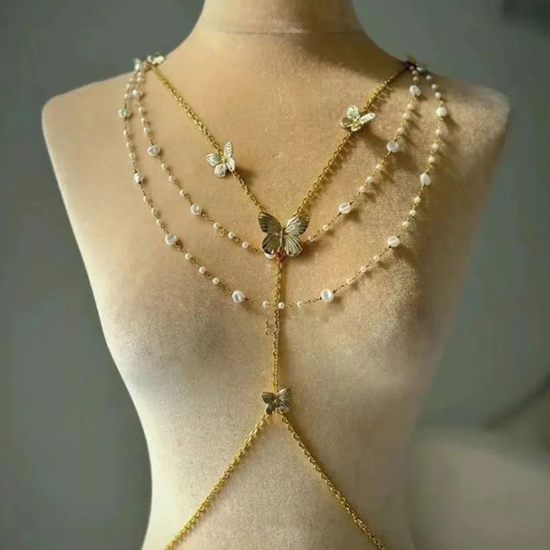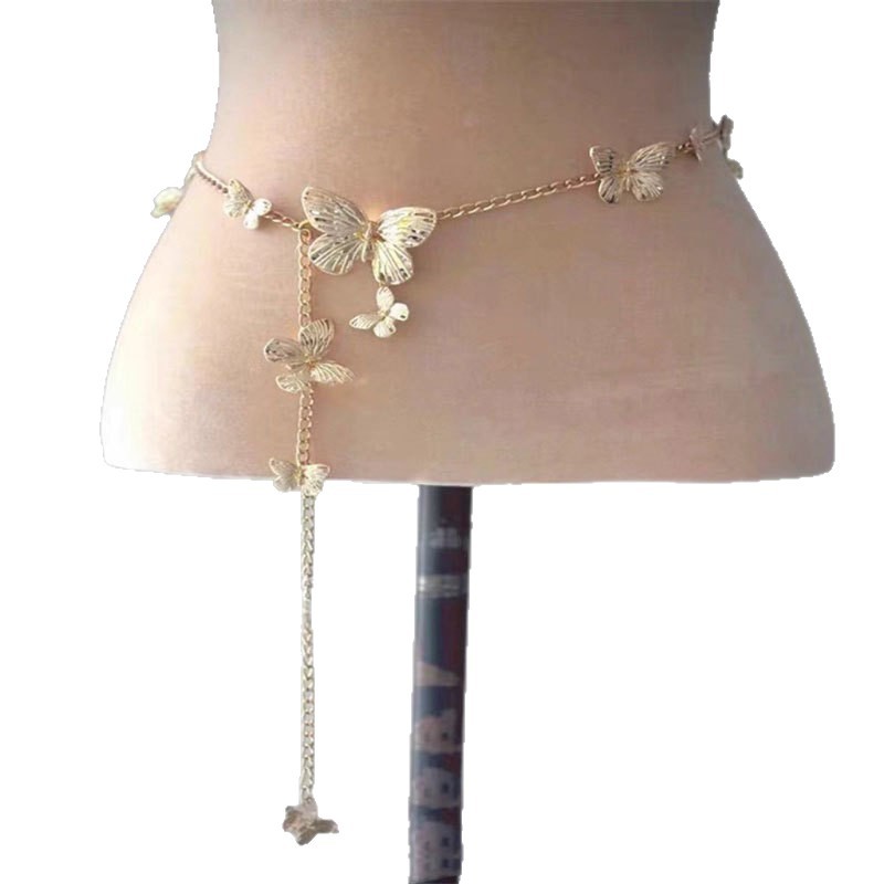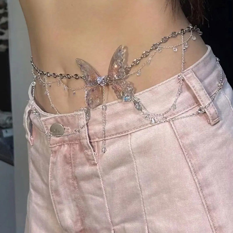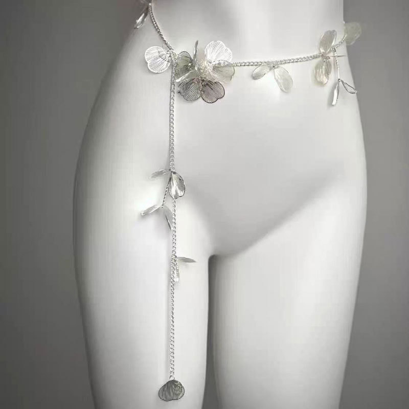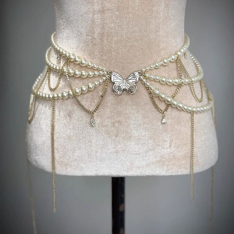 蕾丝珍珠流苏性感腿链时尚身体链甜美酷爽辣妹蝴蝶腰链