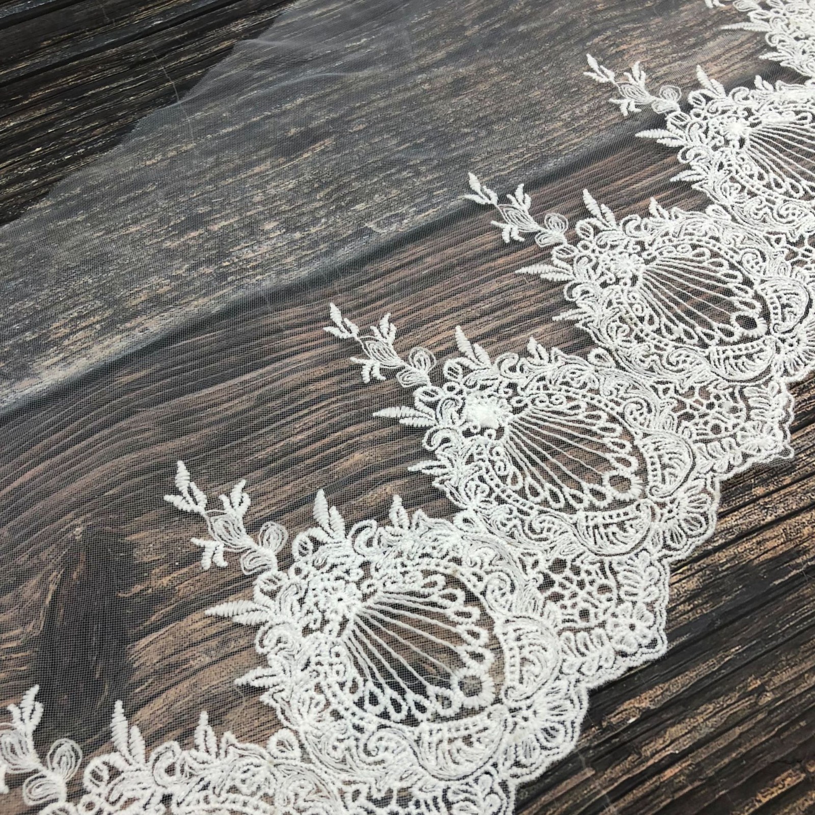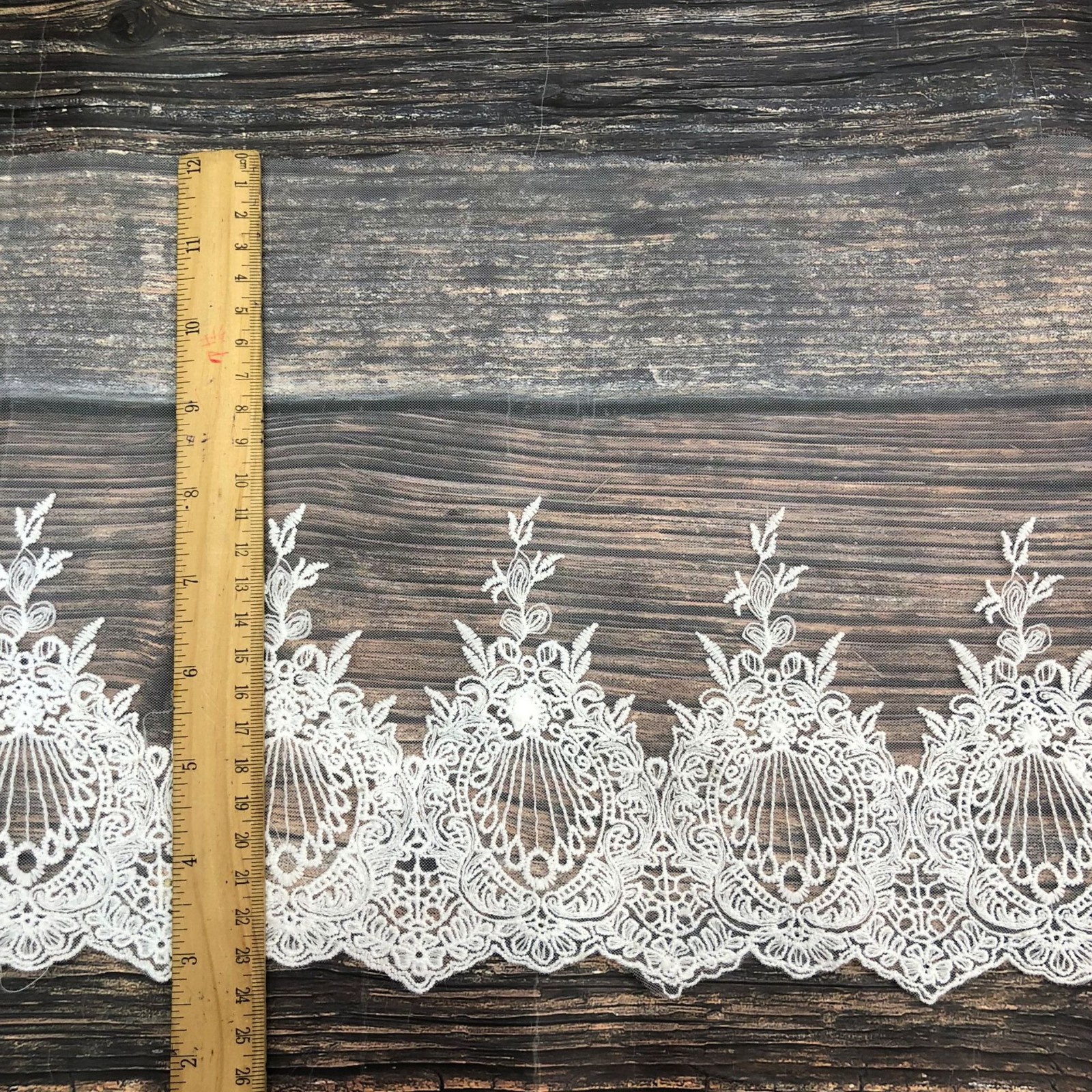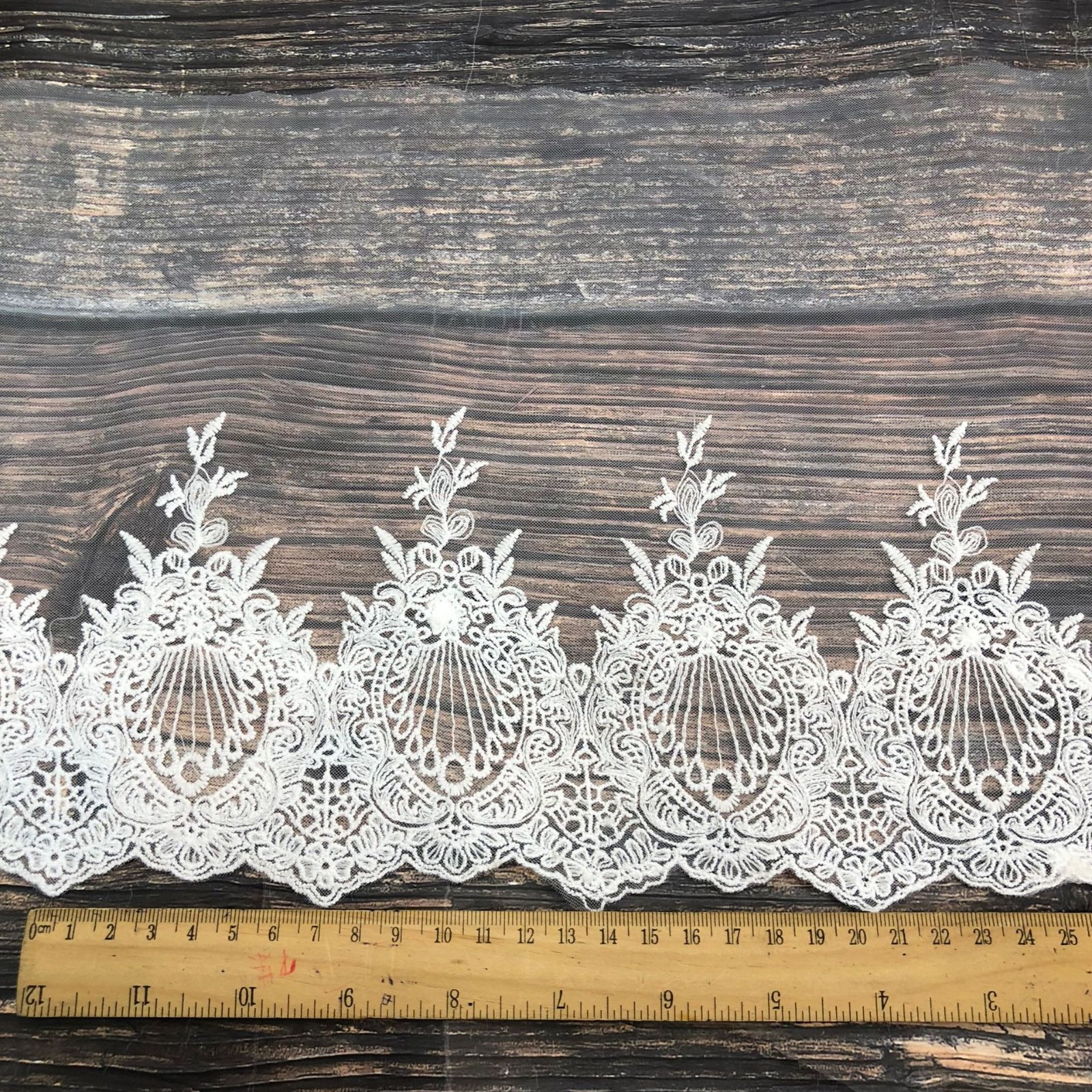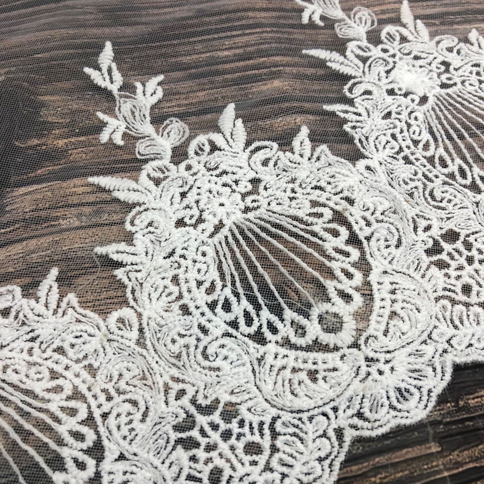 蕾丝花边鸟巢菠萝花网布刺绣面料牛奶丝条码双边绣花