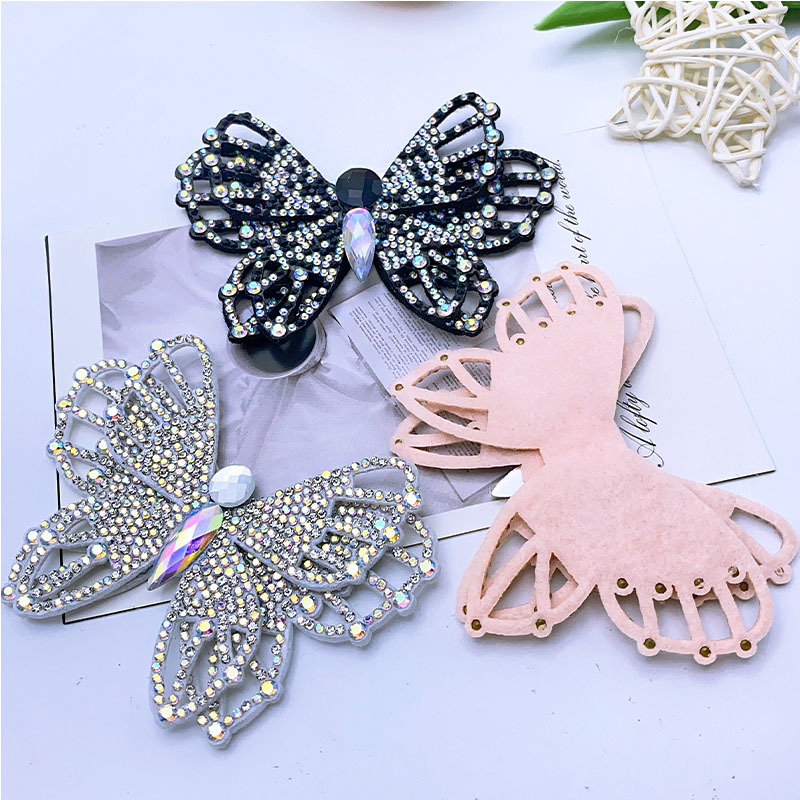 蝴蝶无纺布烫钻贴图创意diy双层蝴蝶鞋服帽子箱包装饰烫钻贴批发