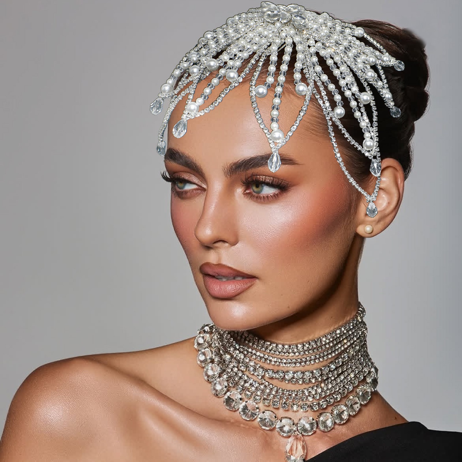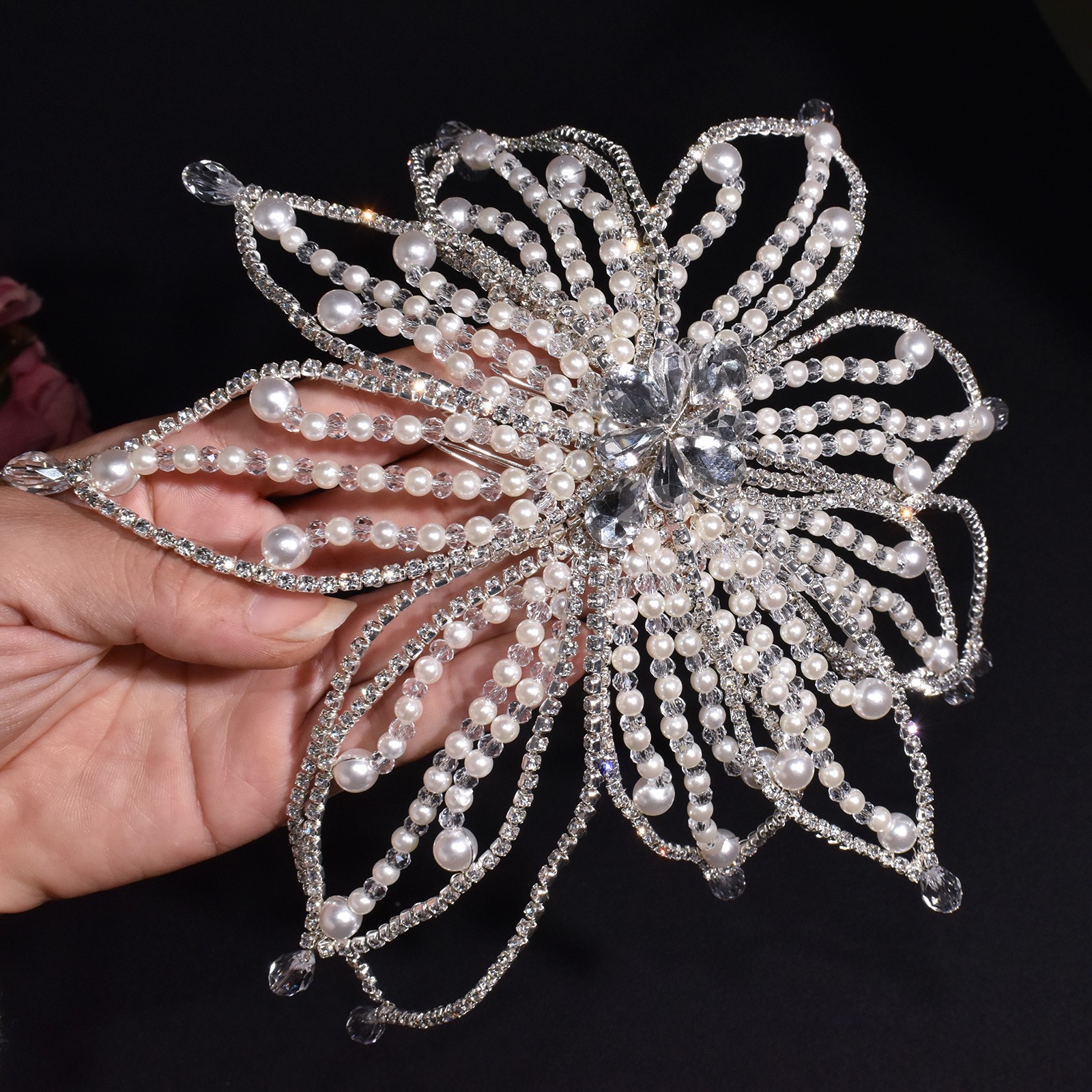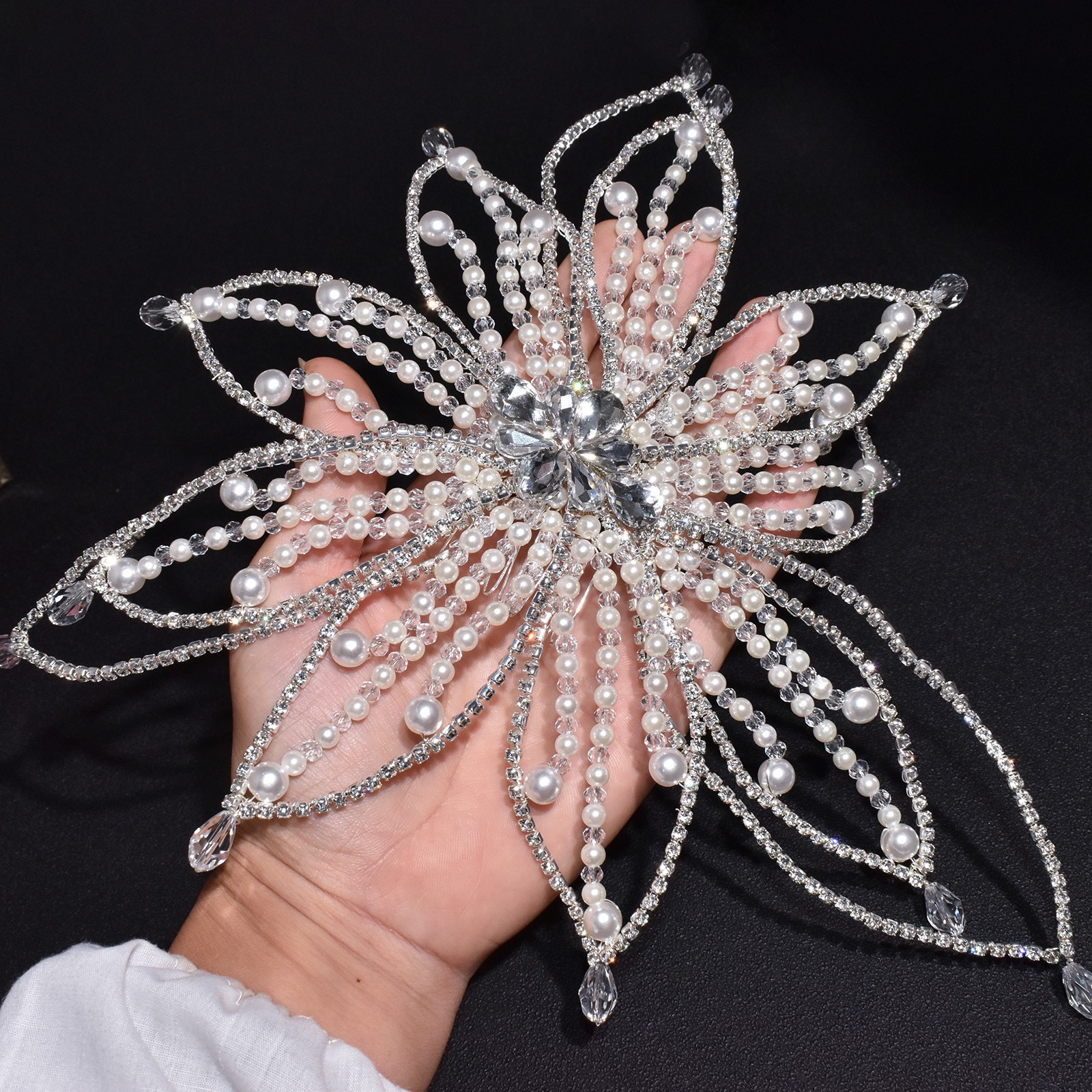 跨境婚纱礼服钻片配饰 手工爪链叶子珍珠发片包头发冠发箍
