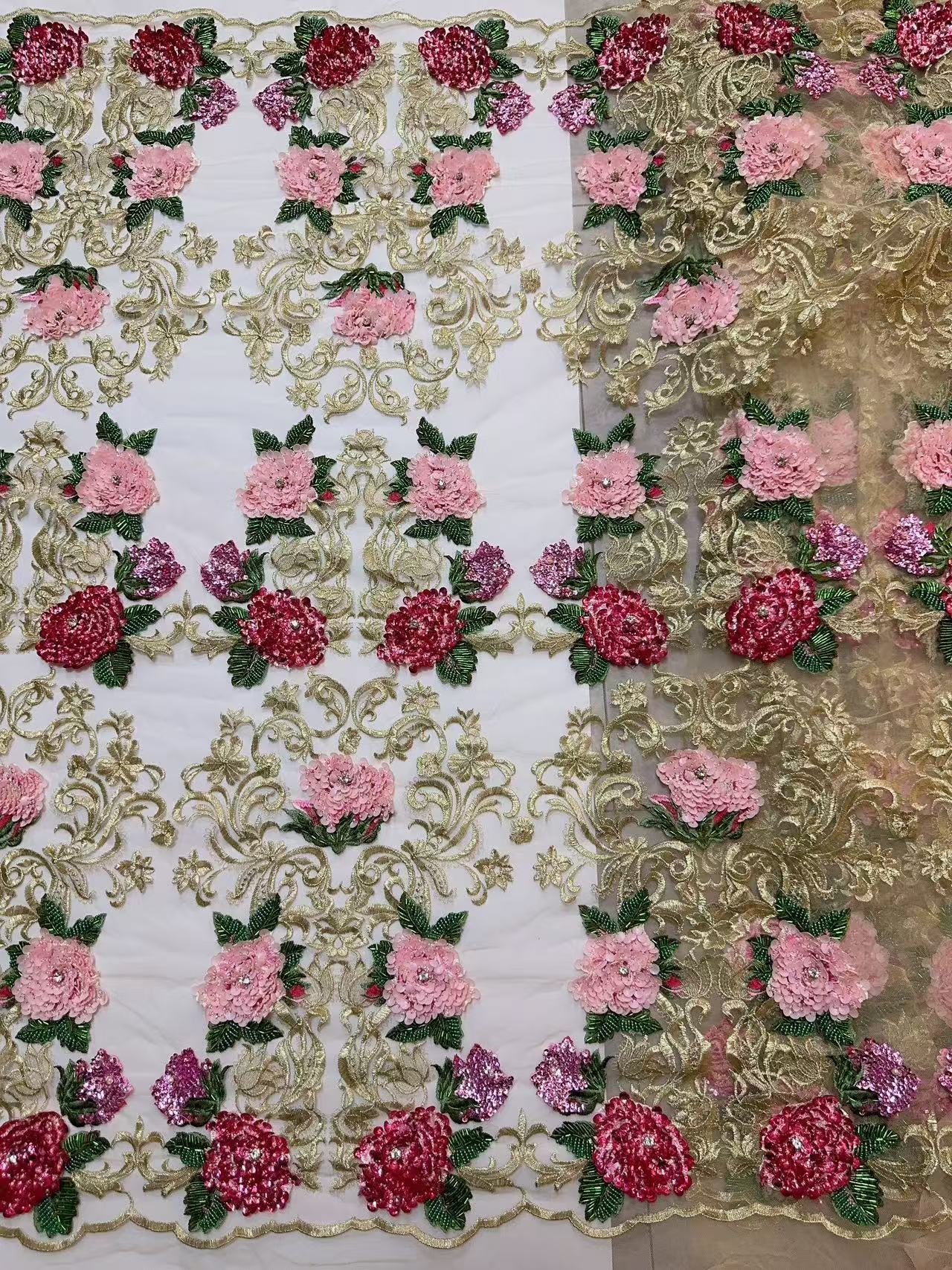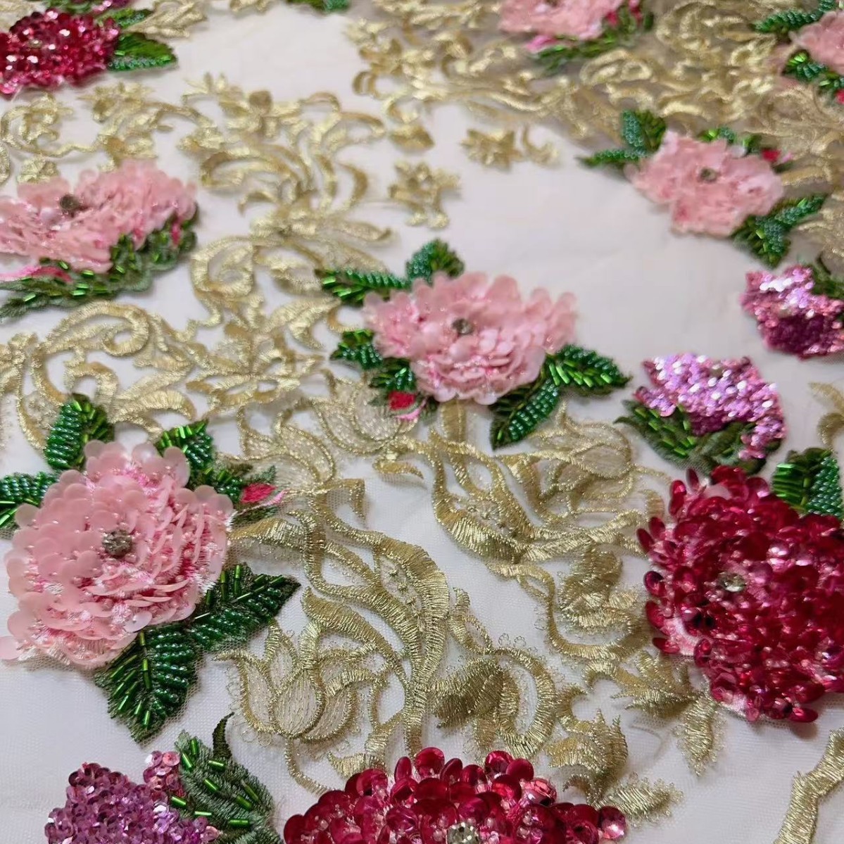 跨境手工串珠多色亮片花朵刺绣布礼服裙婚纱面料