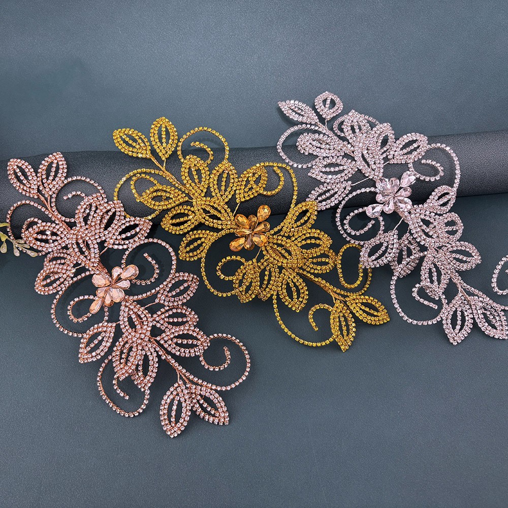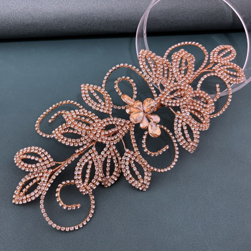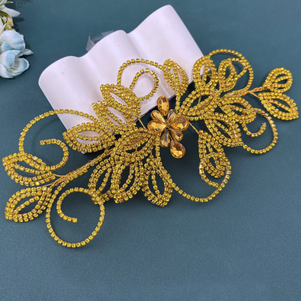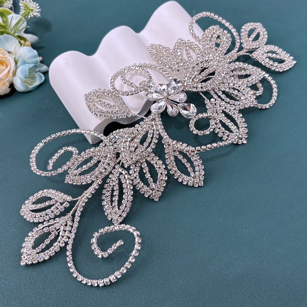 跨境新娘头饰手工爪链叶子水钻礼服配饰钻片 婚礼发冠发带