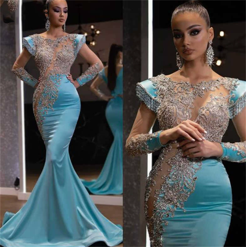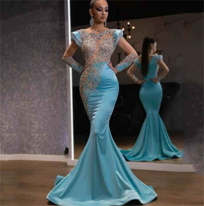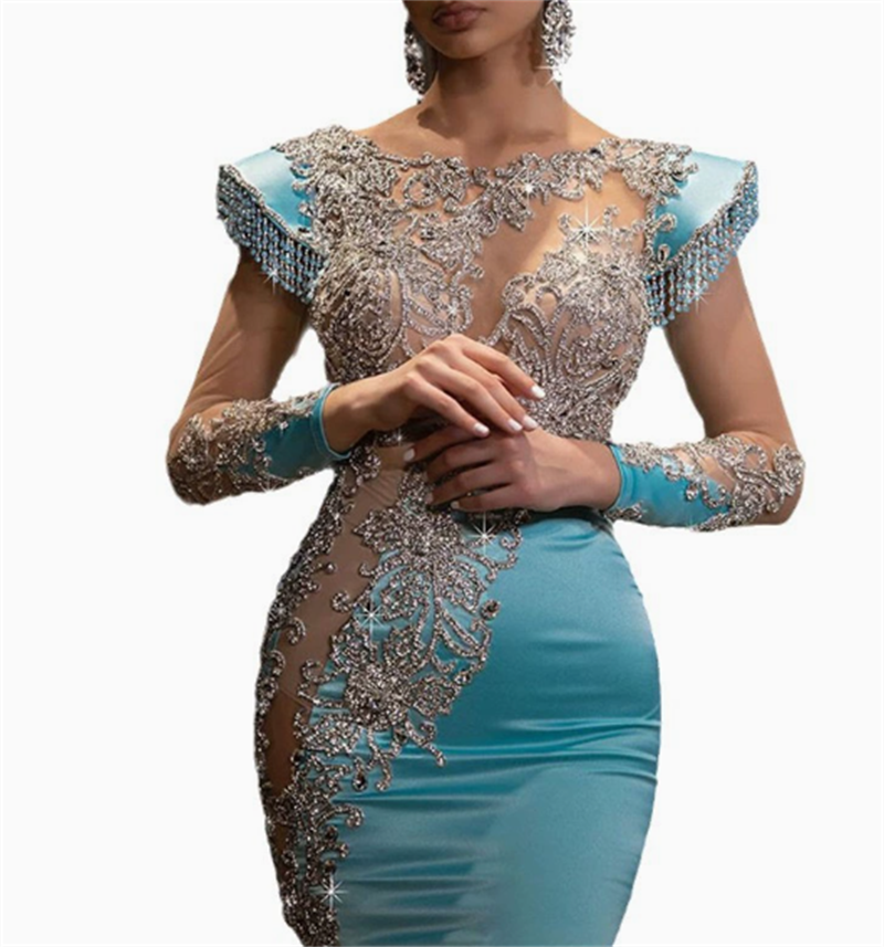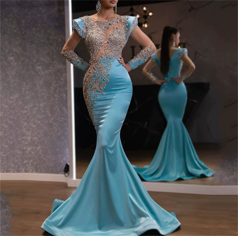 跨境春夏新款欧美女装鱼尾连衣裙宴会长款洒金显瘦气质晚礼服