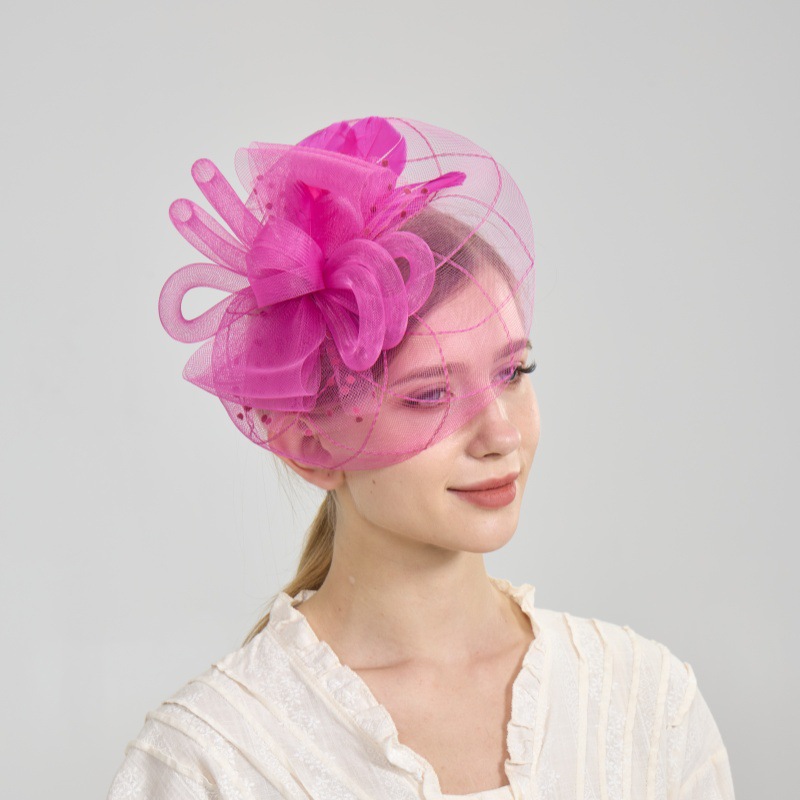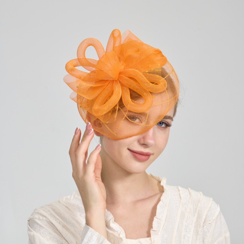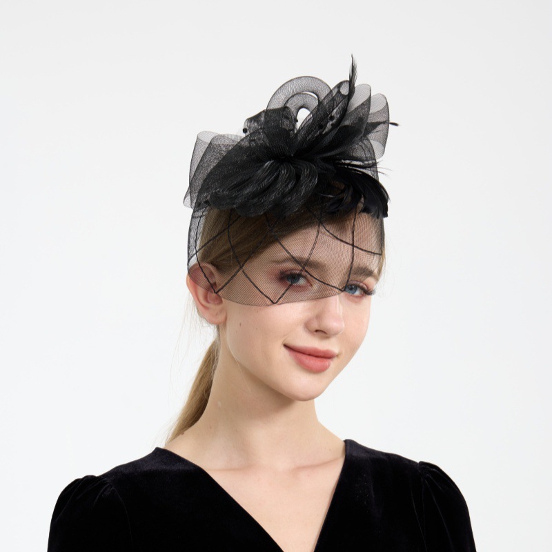 跨境欧美网纱遮面礼帽新娘头饰晚宴复古发箍羽毛发饰头花