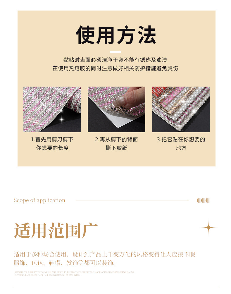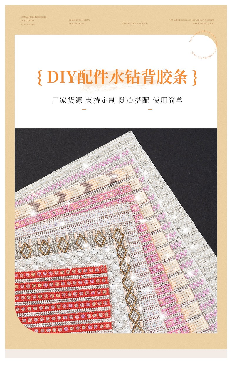 跨境水钻贴自粘钻条饰品diy配件服装辅料水晶烫钻辅料自贴背钻条