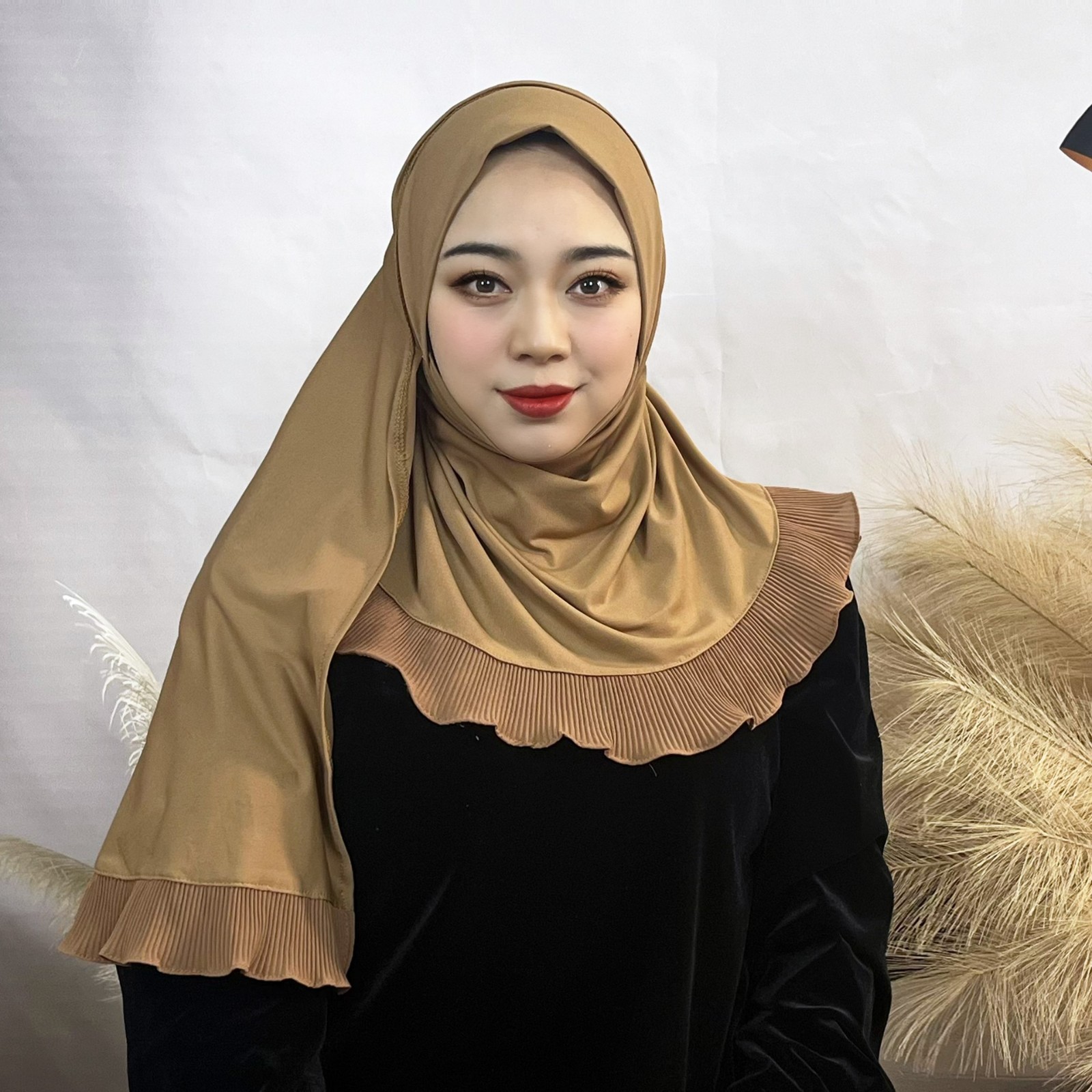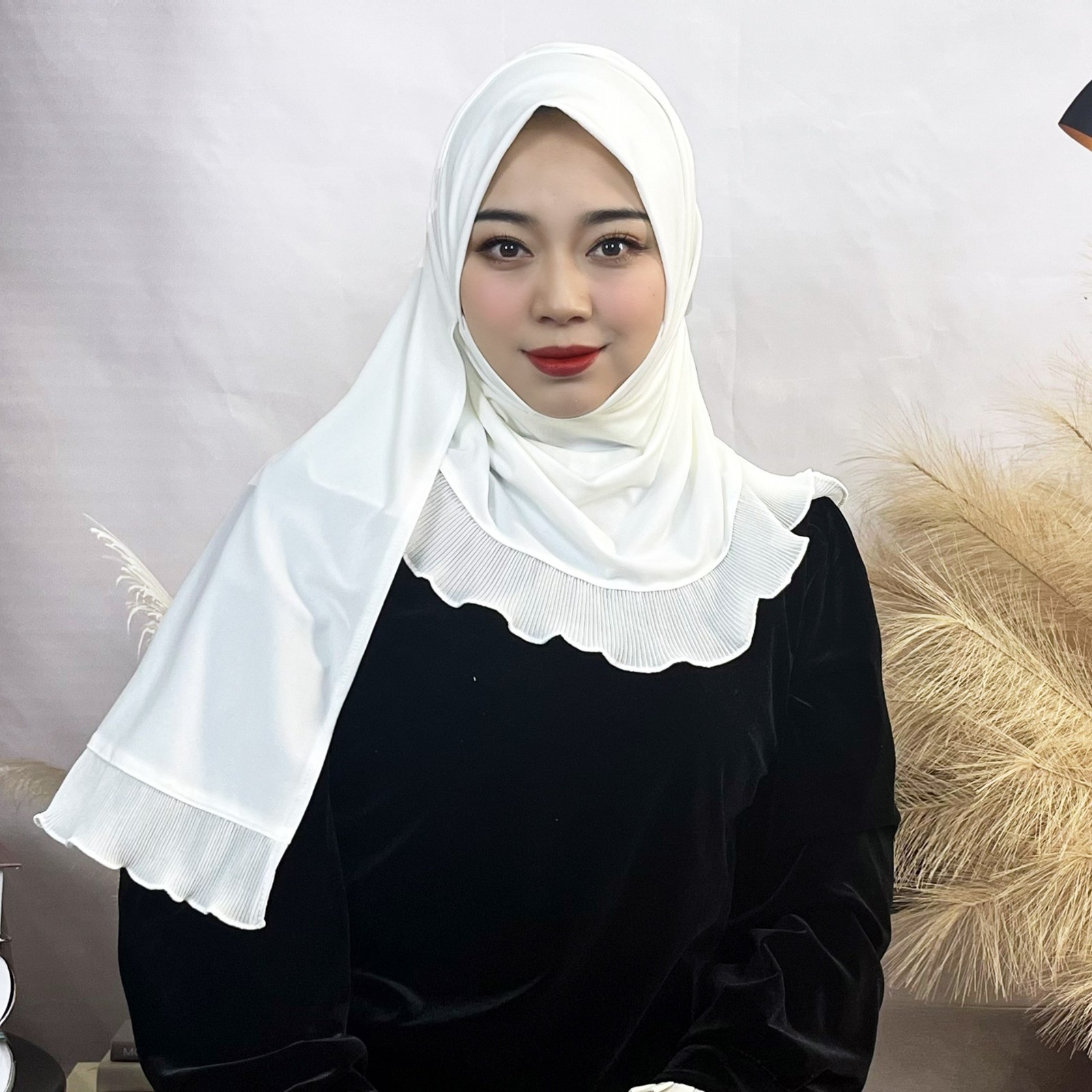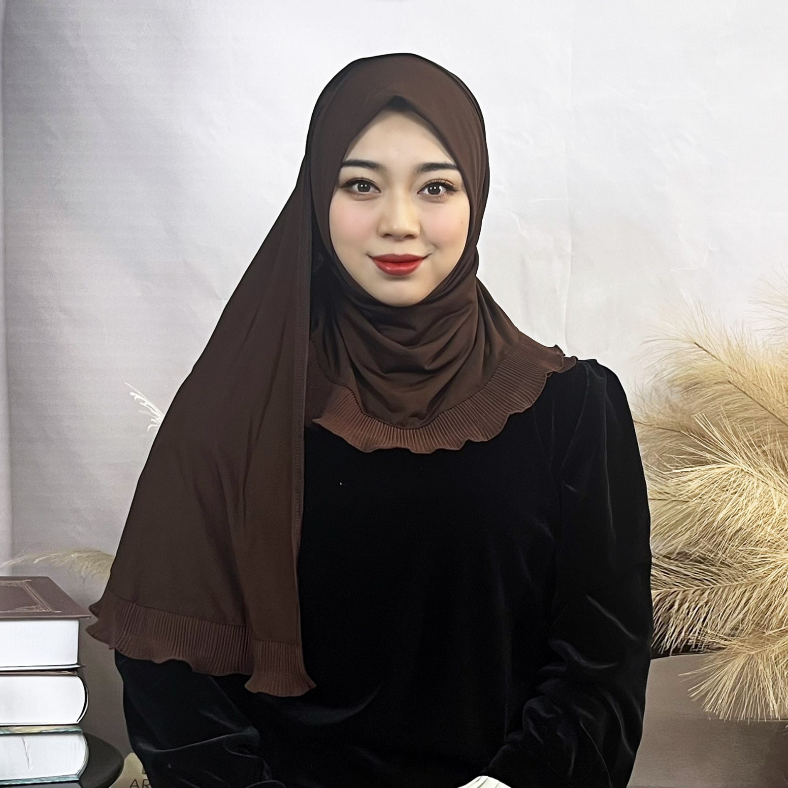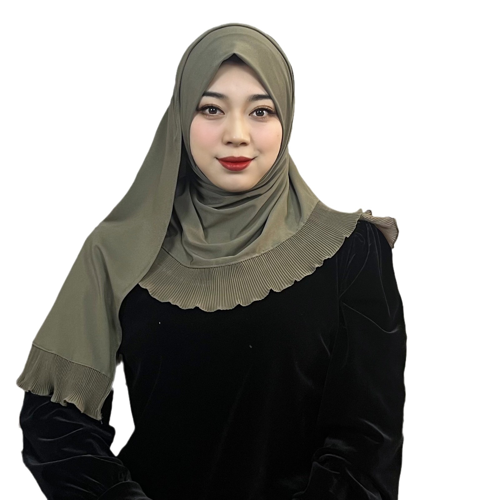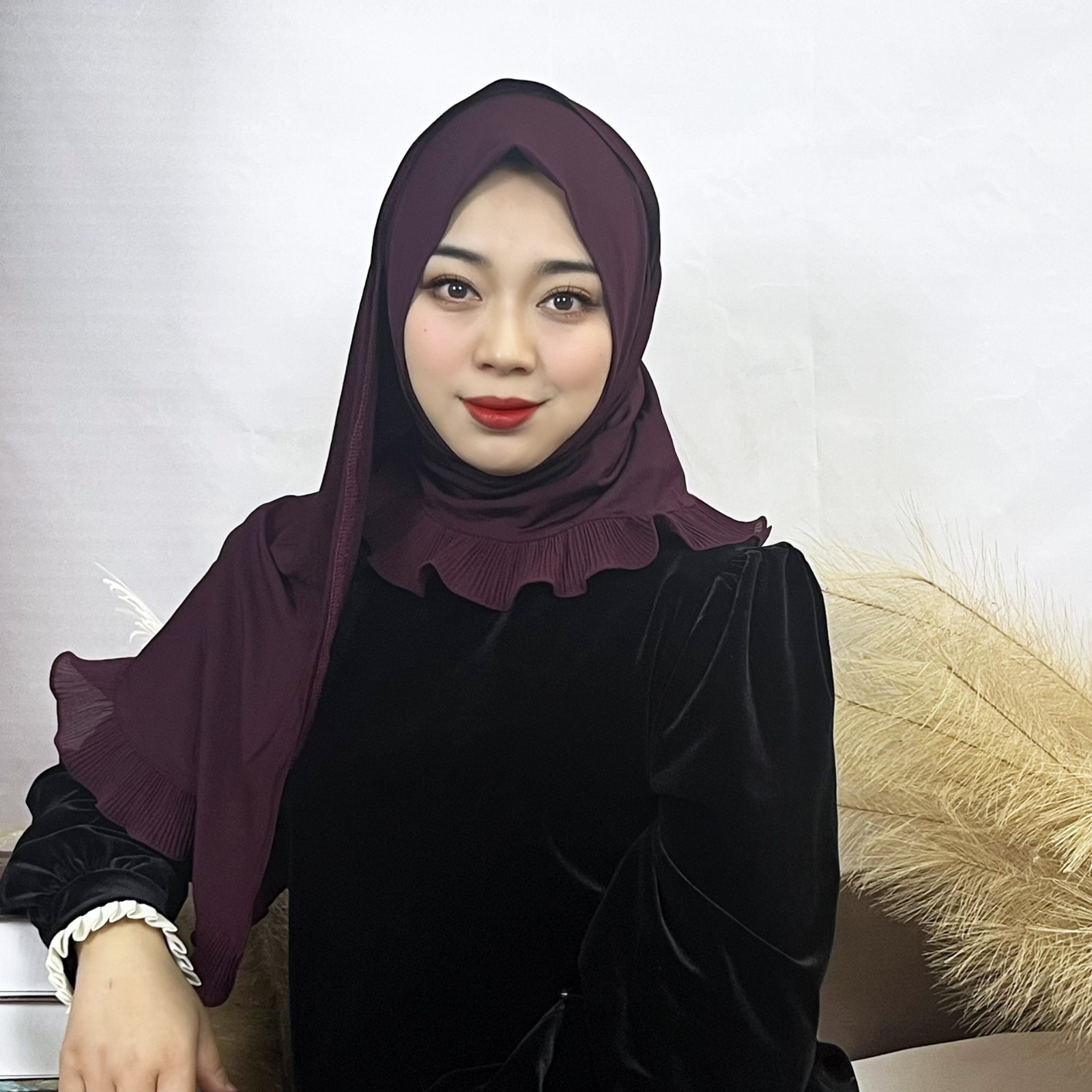 •  跨境纯色雪纺长巾套头单层荷叶边女士绕巾舒适头巾女现货批发