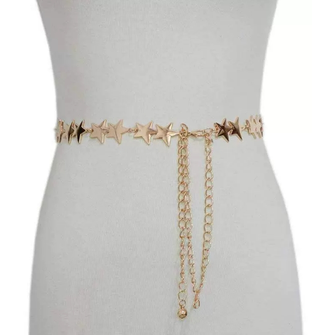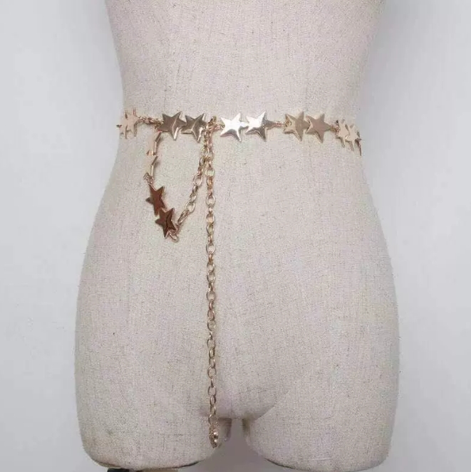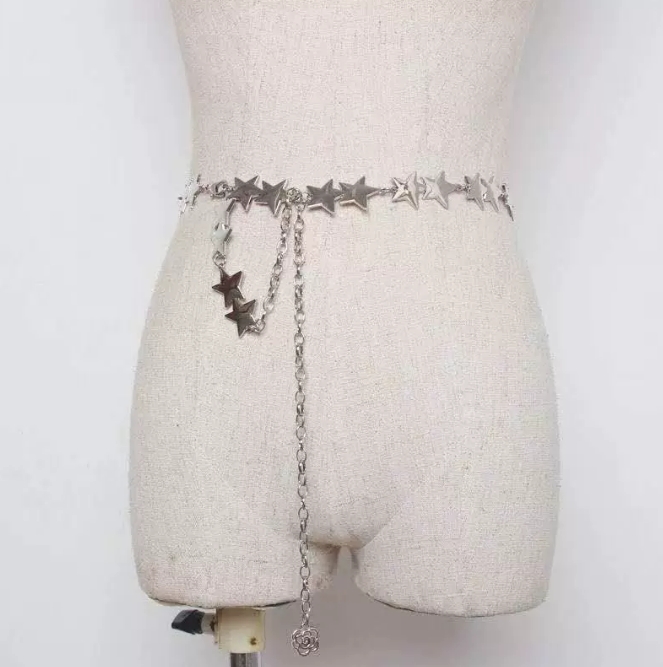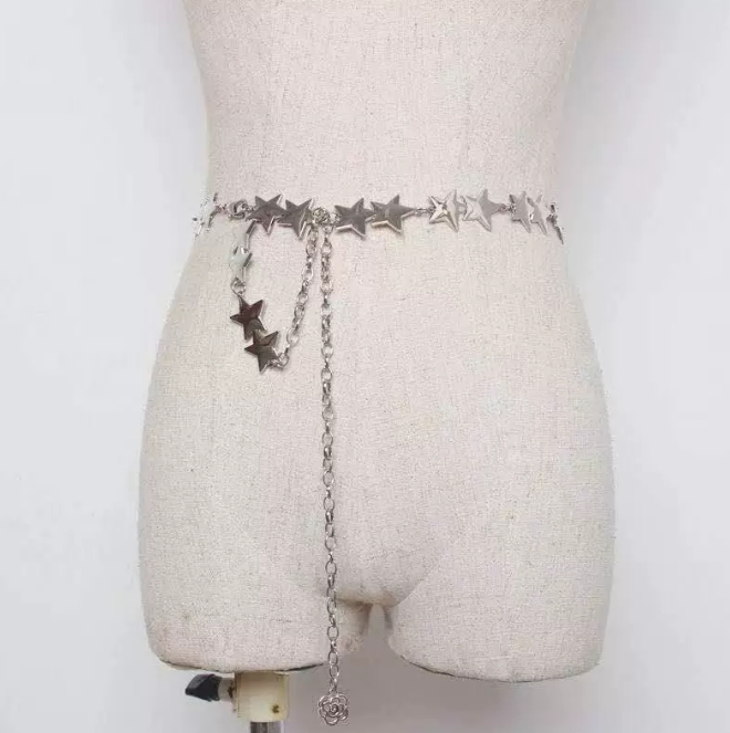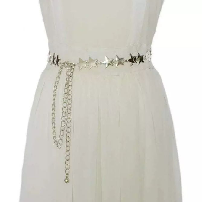 跨境饰品金属腰饰女时尚潮气质款单层星星链条腰链配连衣裙子批发