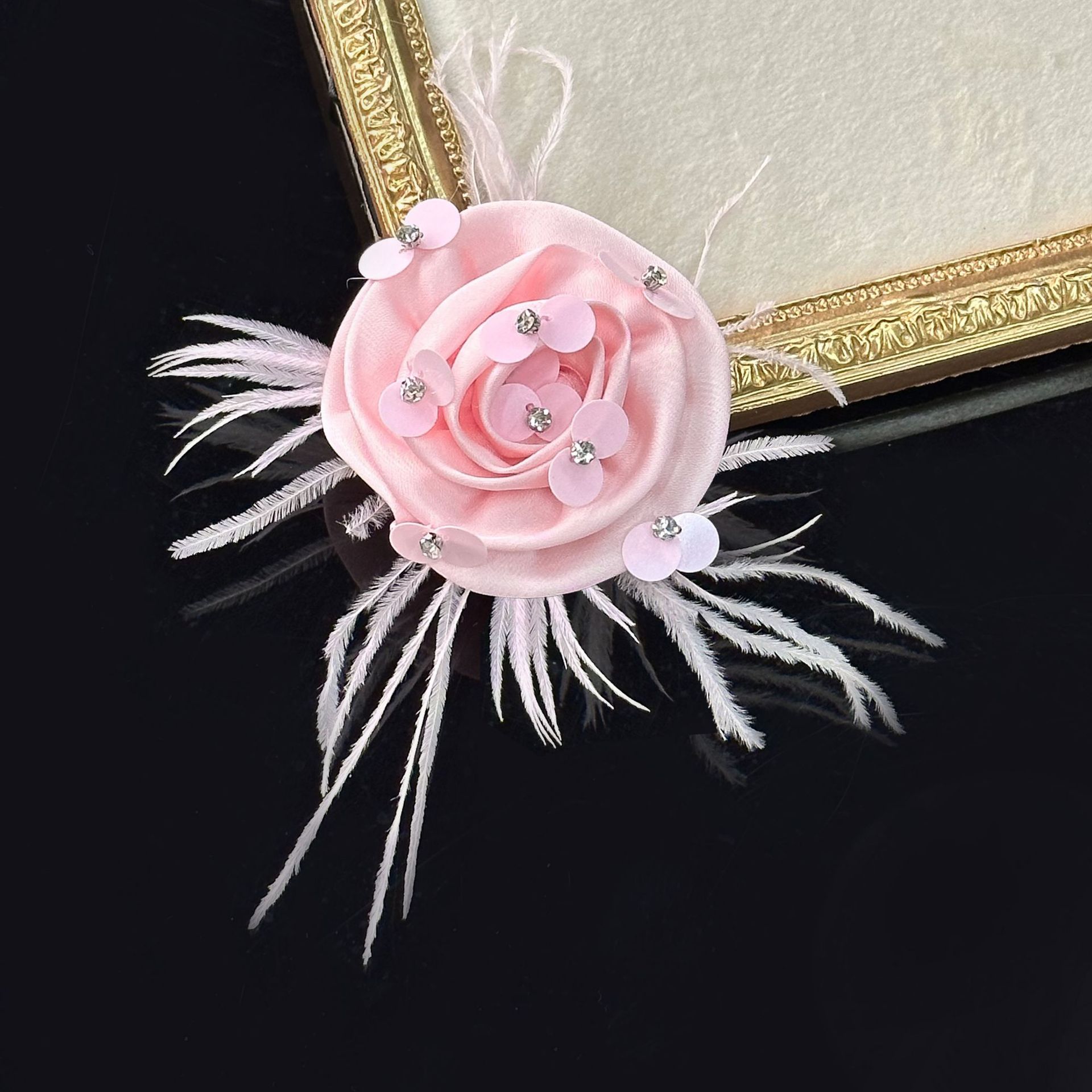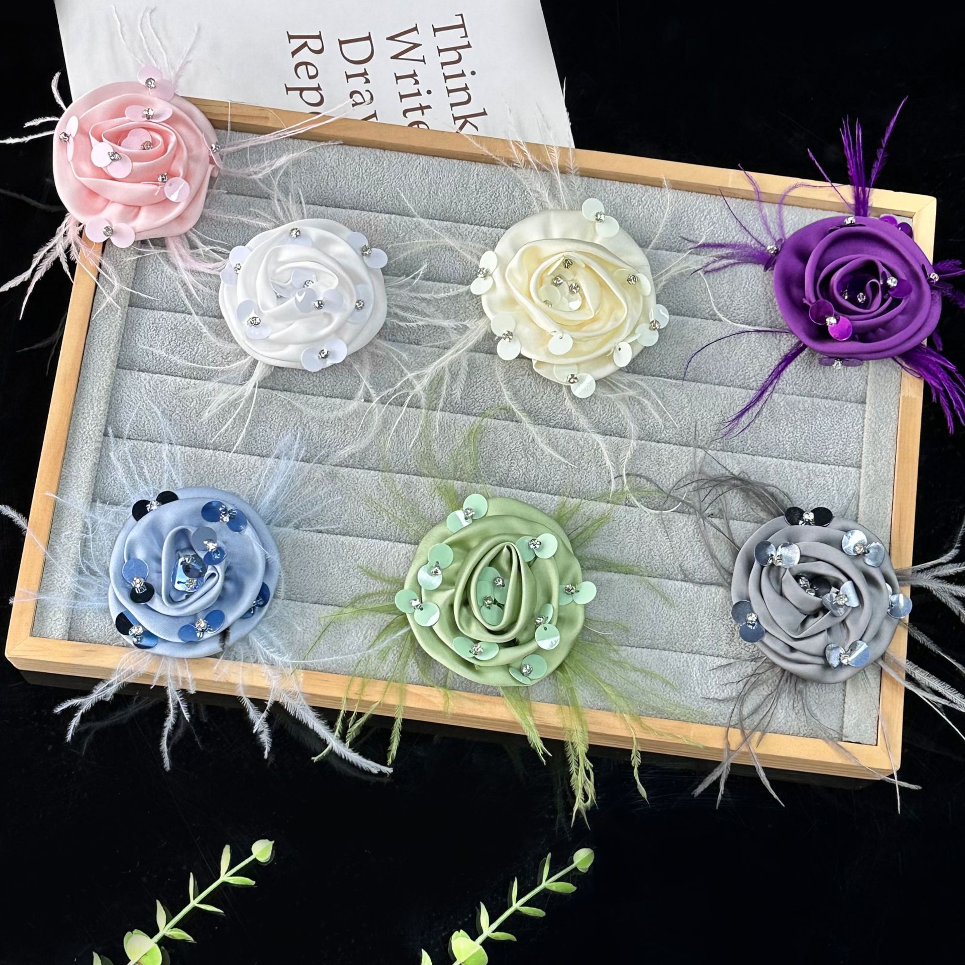 辣妹多色羽毛玫瑰花手缝女头饰鞋帽包包服饰胸花辅料