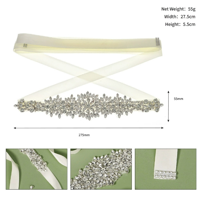 适合所有搭配的镶钻新娘腰带,高端婚纱装饰,女士厚重手工缝制水钻腰带