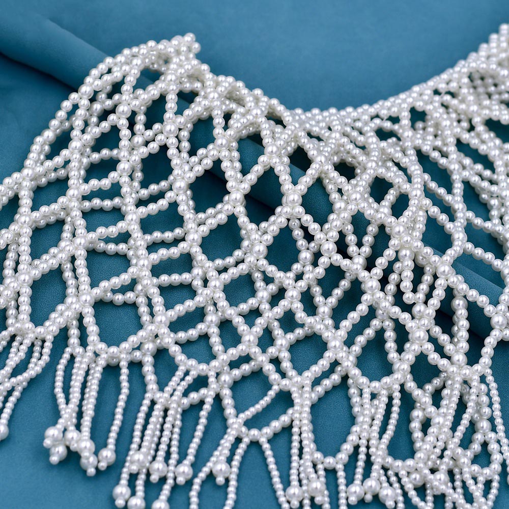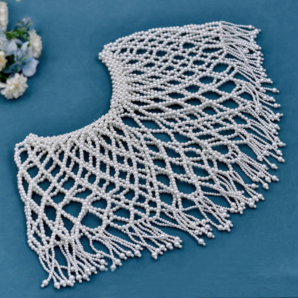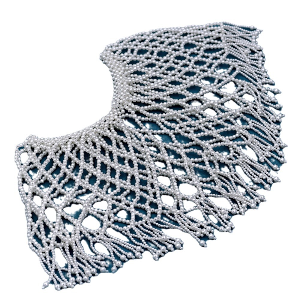 重工汉服云肩配饰 串珠旗袍镂空珍珠流苏披肩短