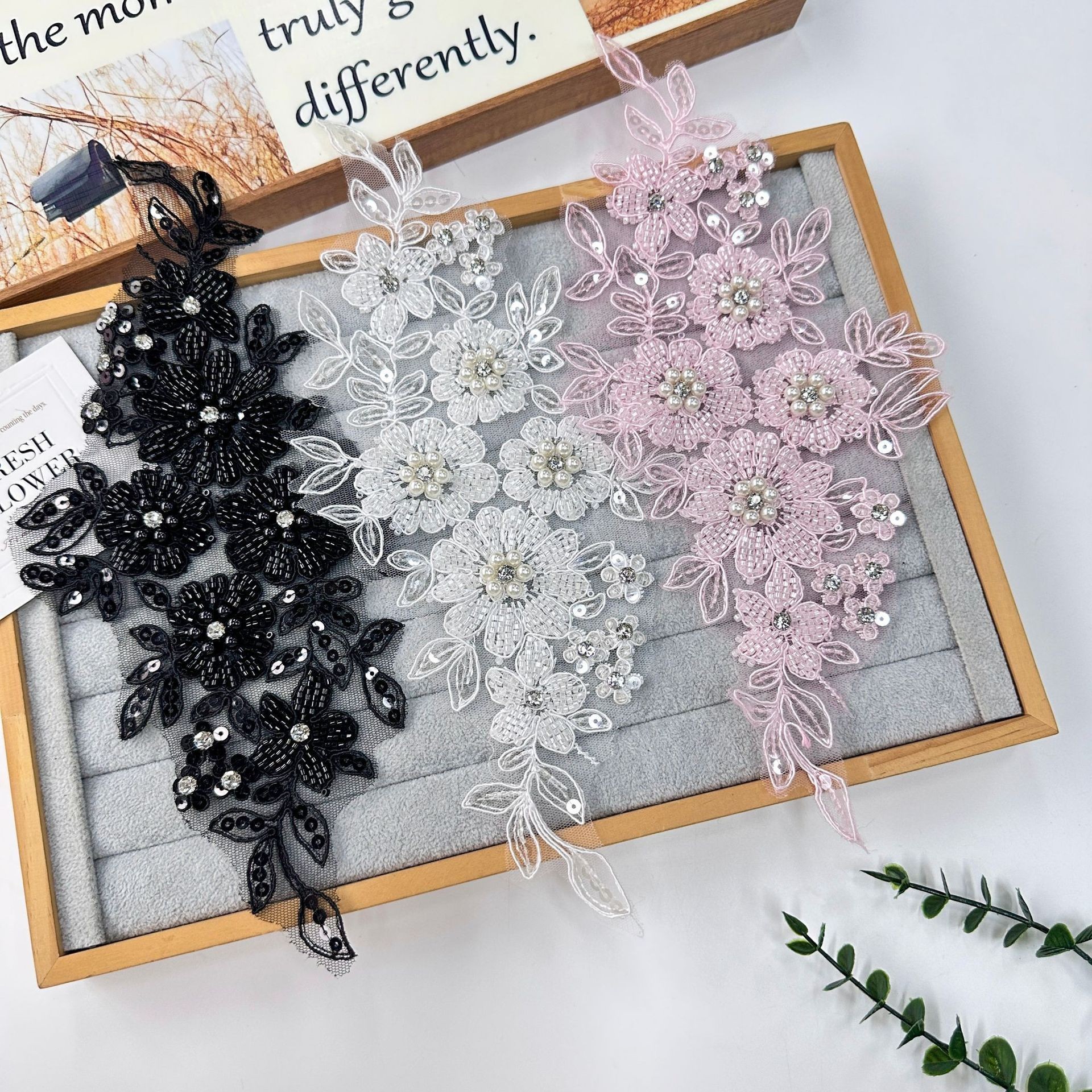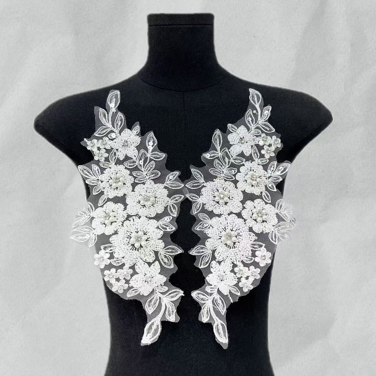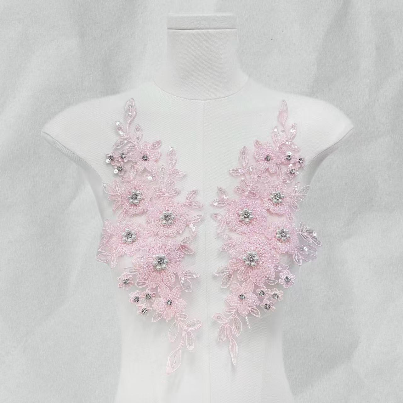 重工珠绣多色珍珠亮片花卉刺绣蕾丝服饰连衣裙礼服箱包装饰辅料
