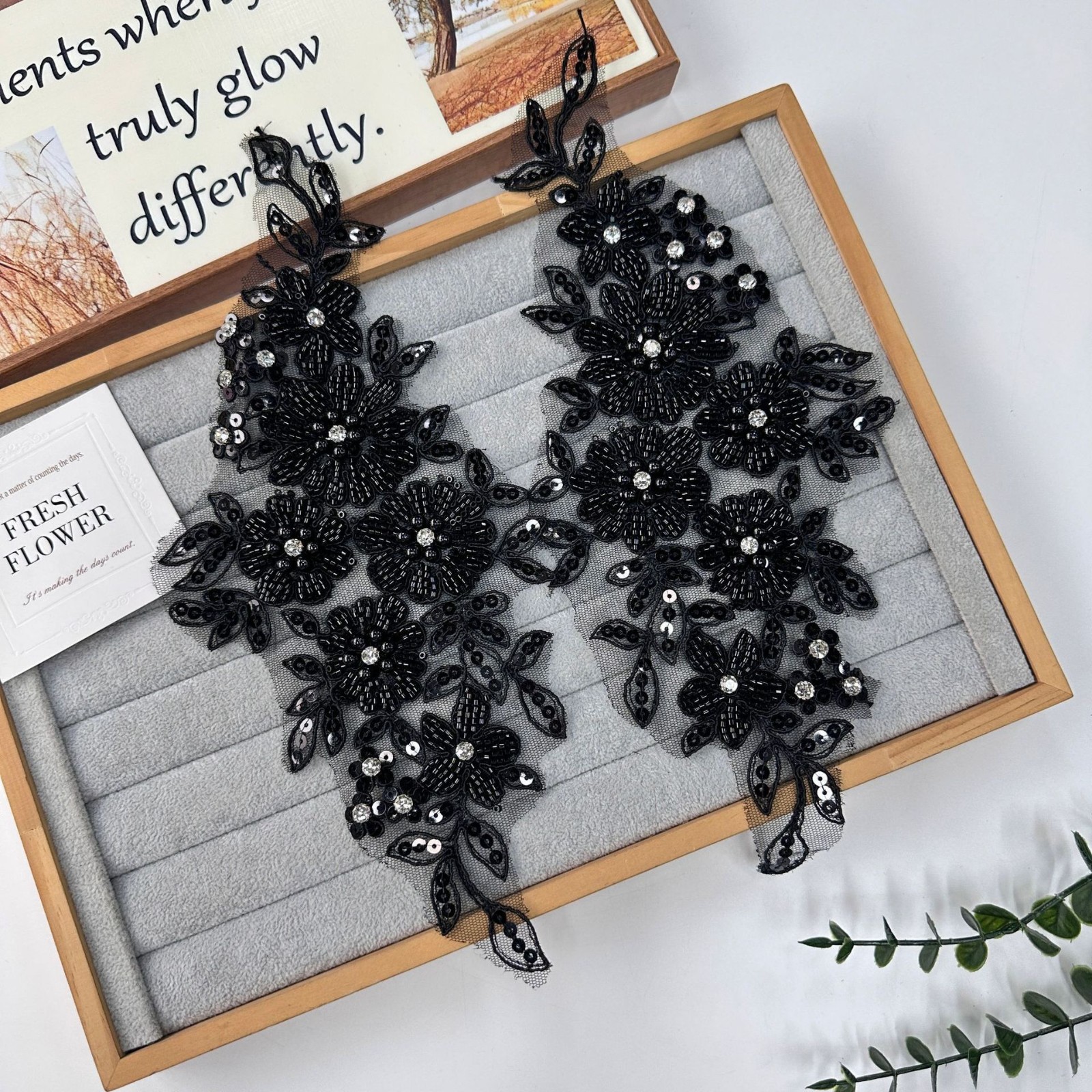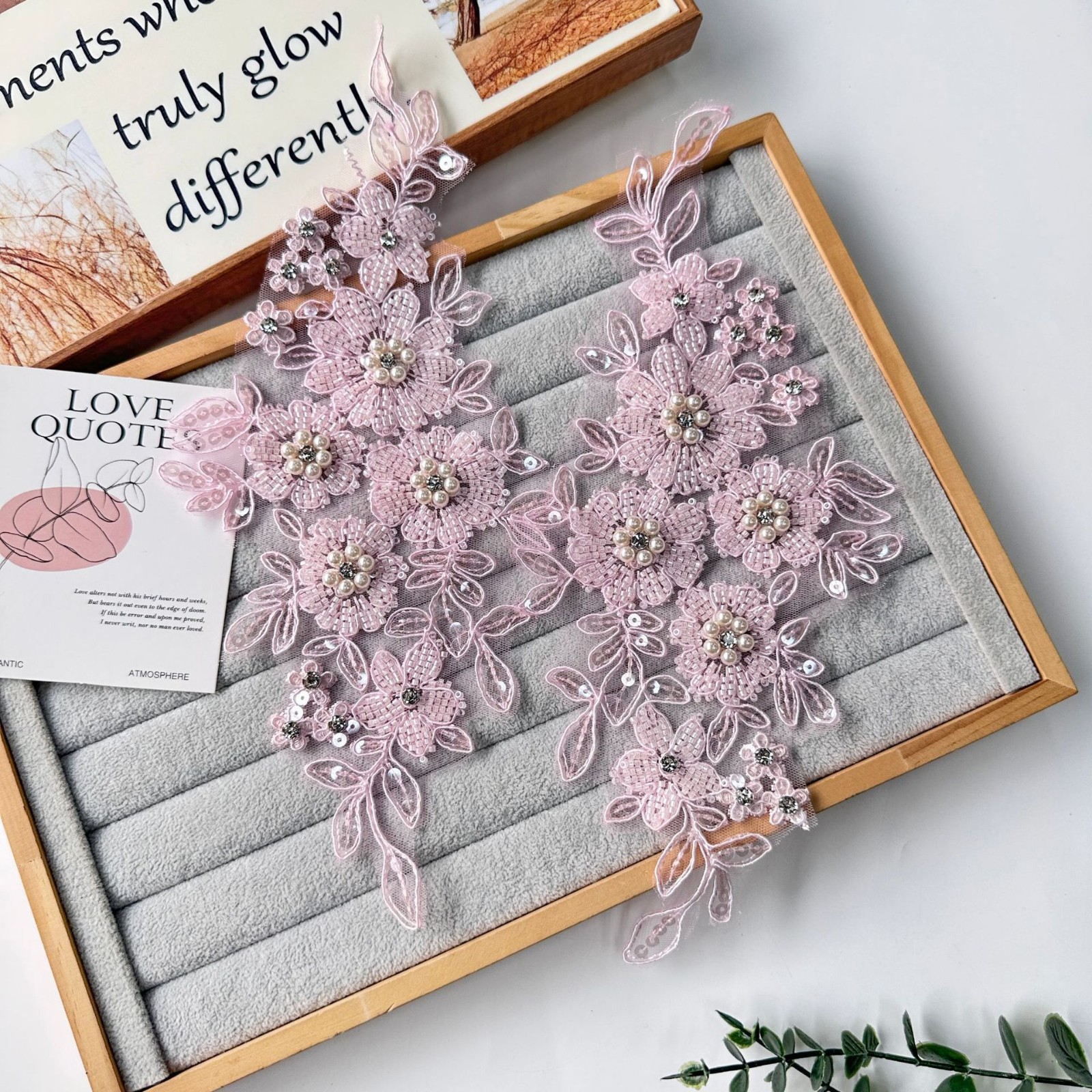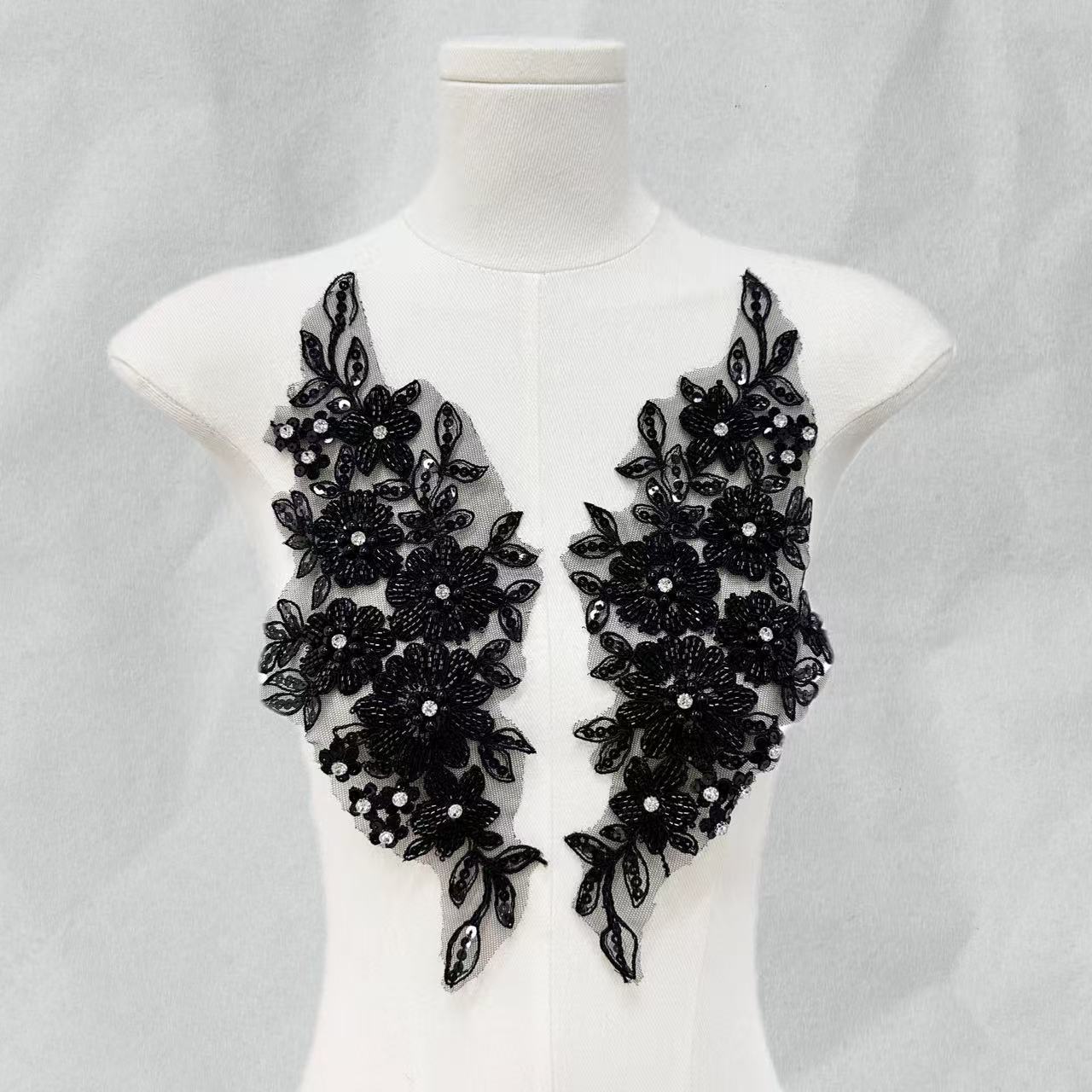重工珠绣多色珍珠亮片花卉刺绣蕾丝服饰连衣裙礼服箱包装饰辅料