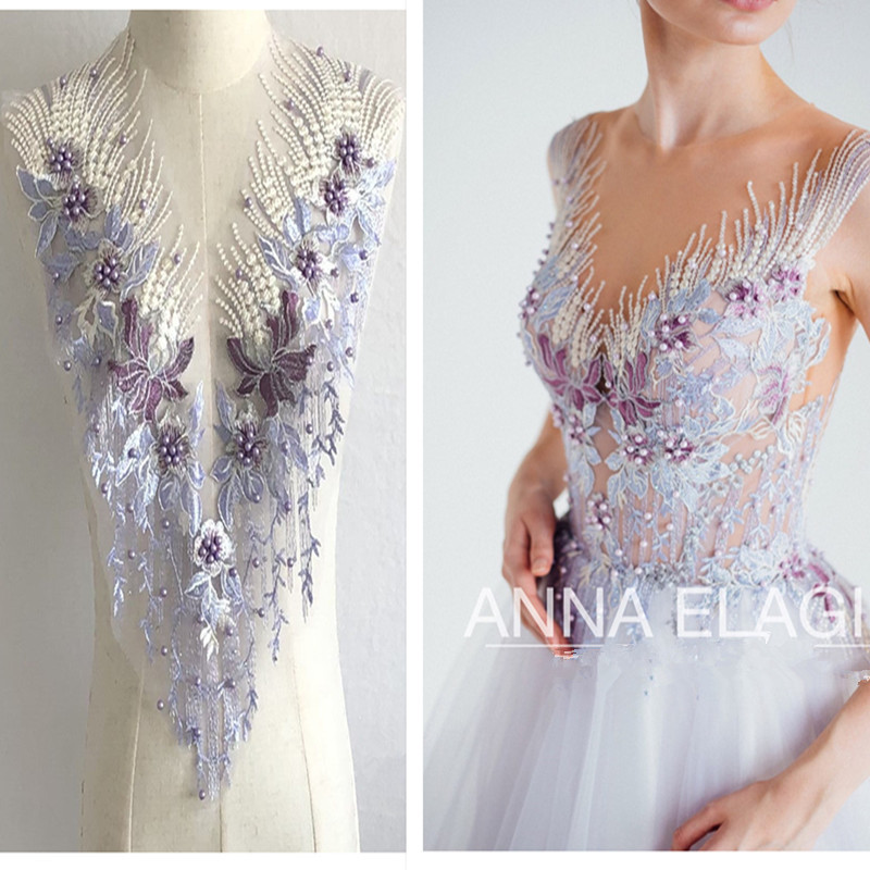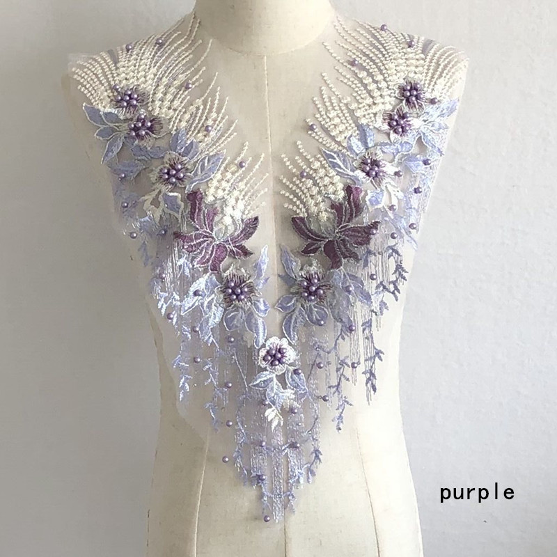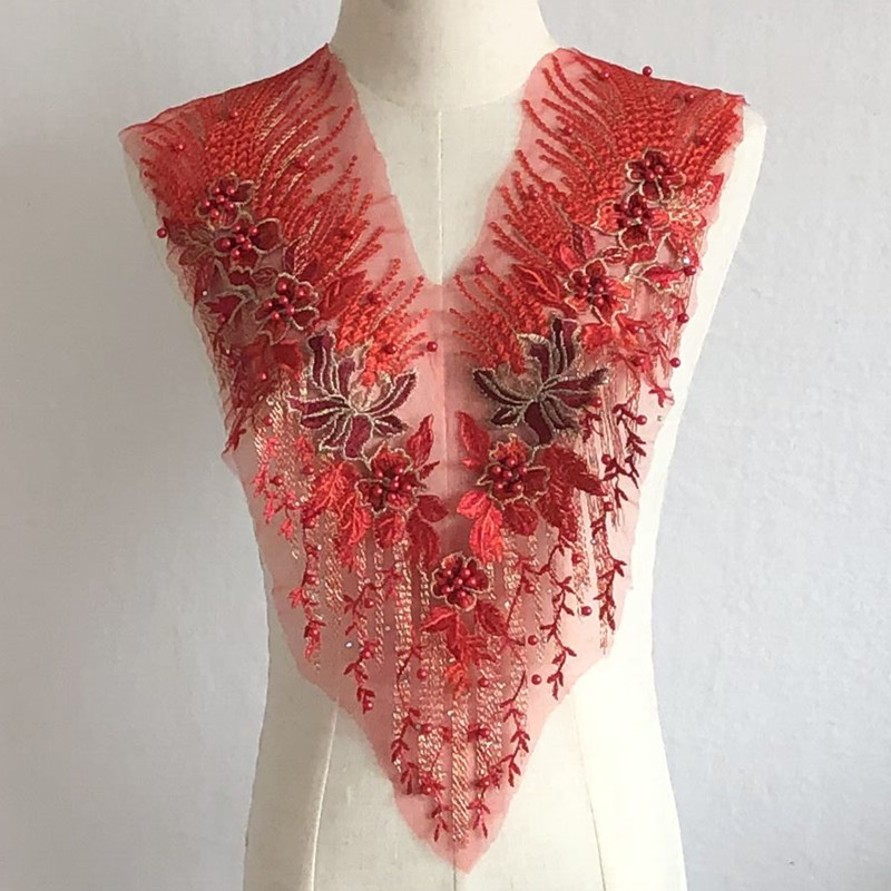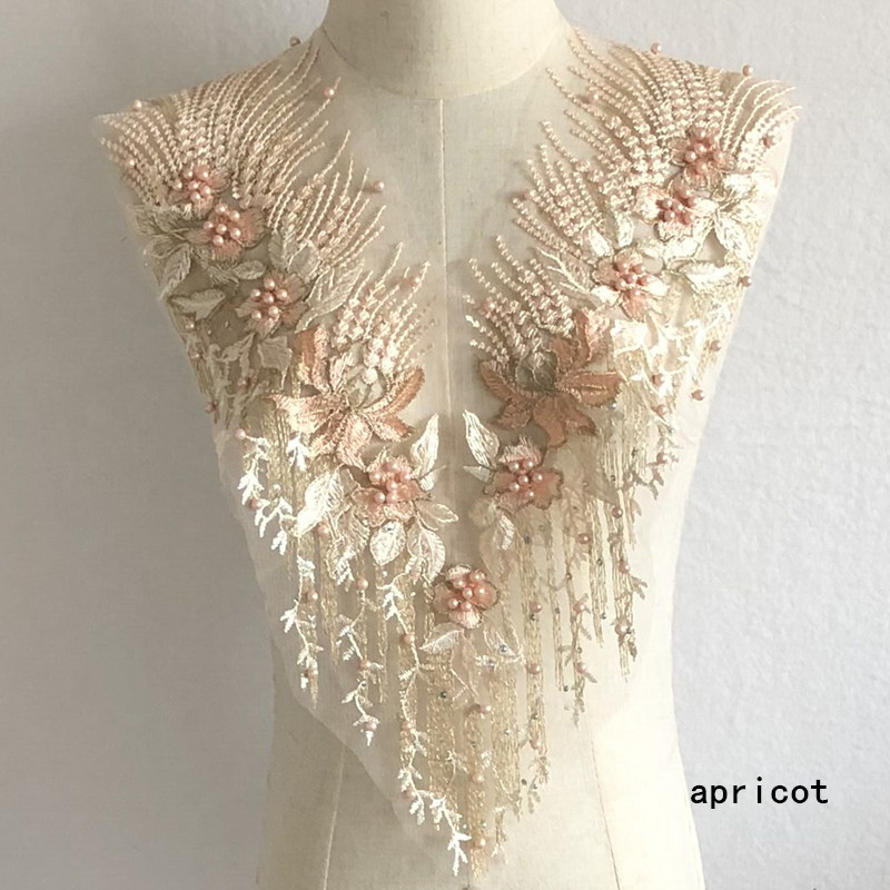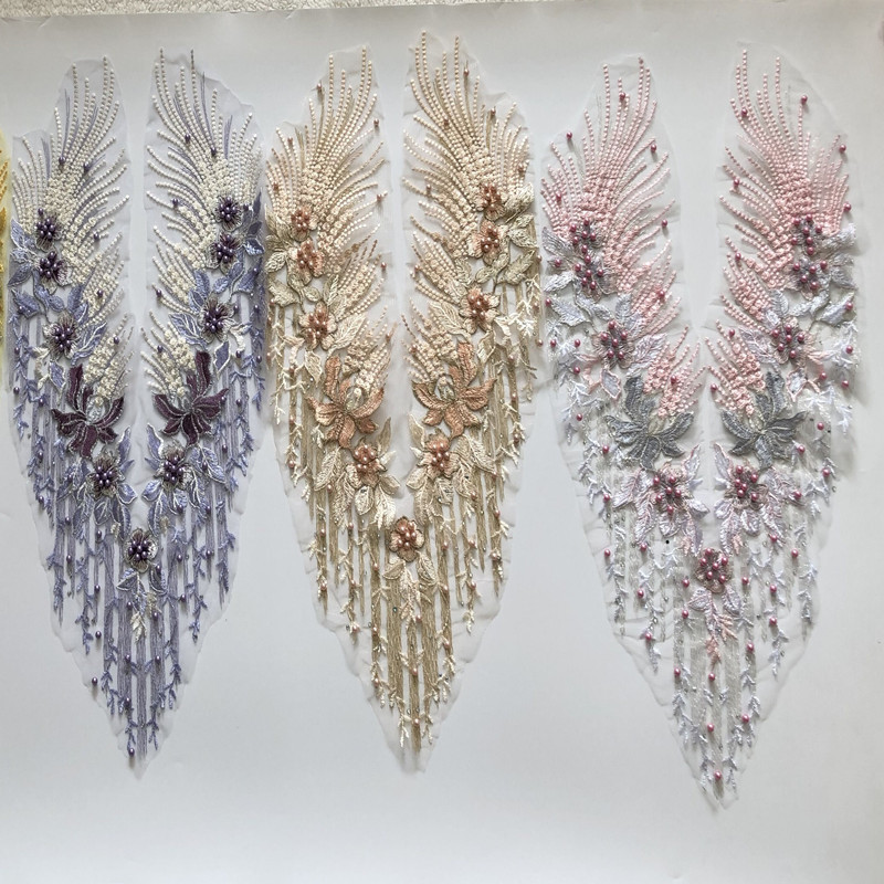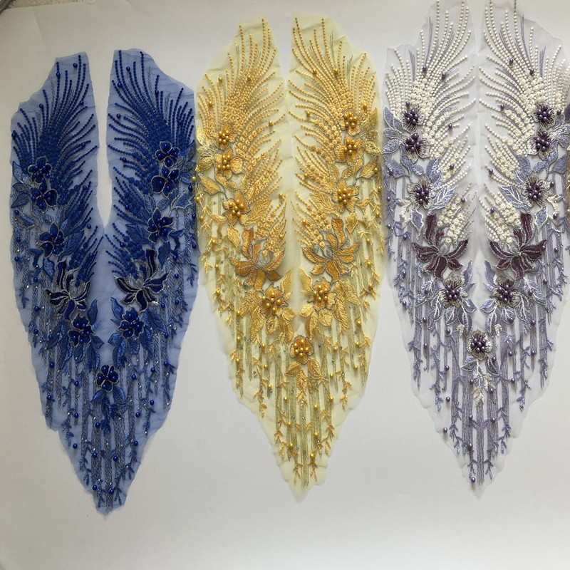 重工网纱刺绣手工钉珠烫钻布贴花朵蕾丝婚纱礼服补丁衣服装饰辅料