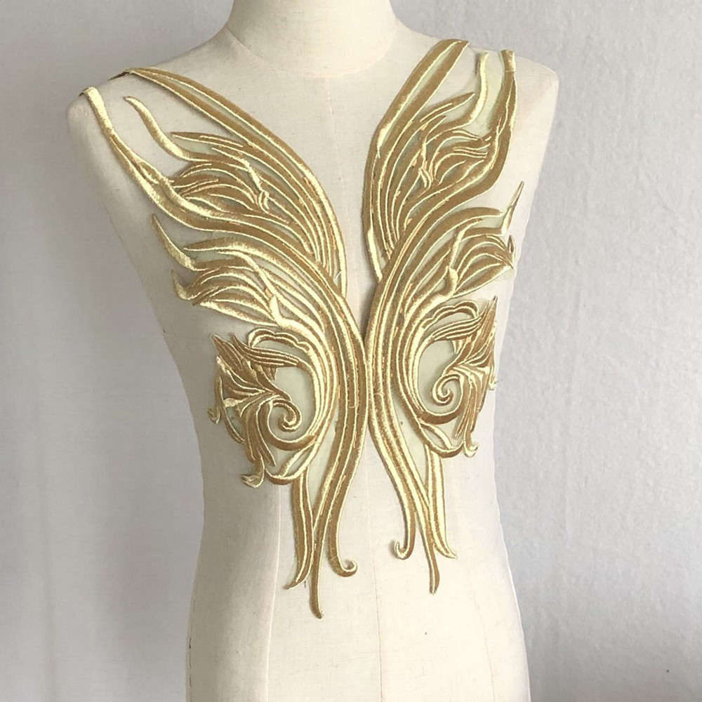 重工金线欧根纱刺绣布贴补丁舞蹈衣服装饰辅料手工缝DIY大号一对