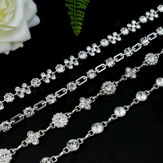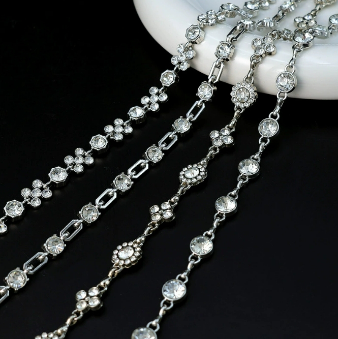 金属链条配饰diy饰品水钻链服装辅料钻链条腰饰手工钻石花式爪链