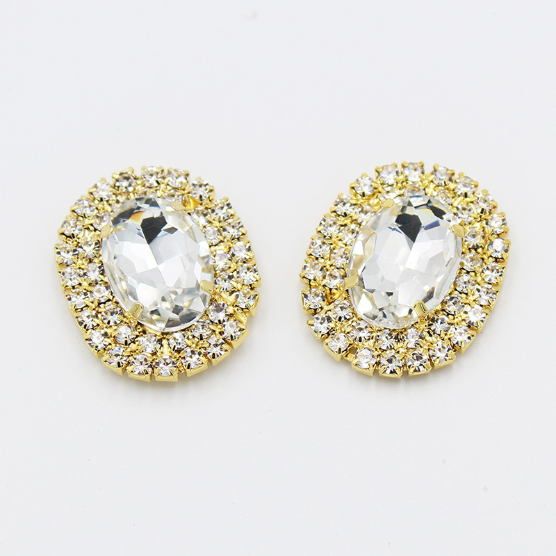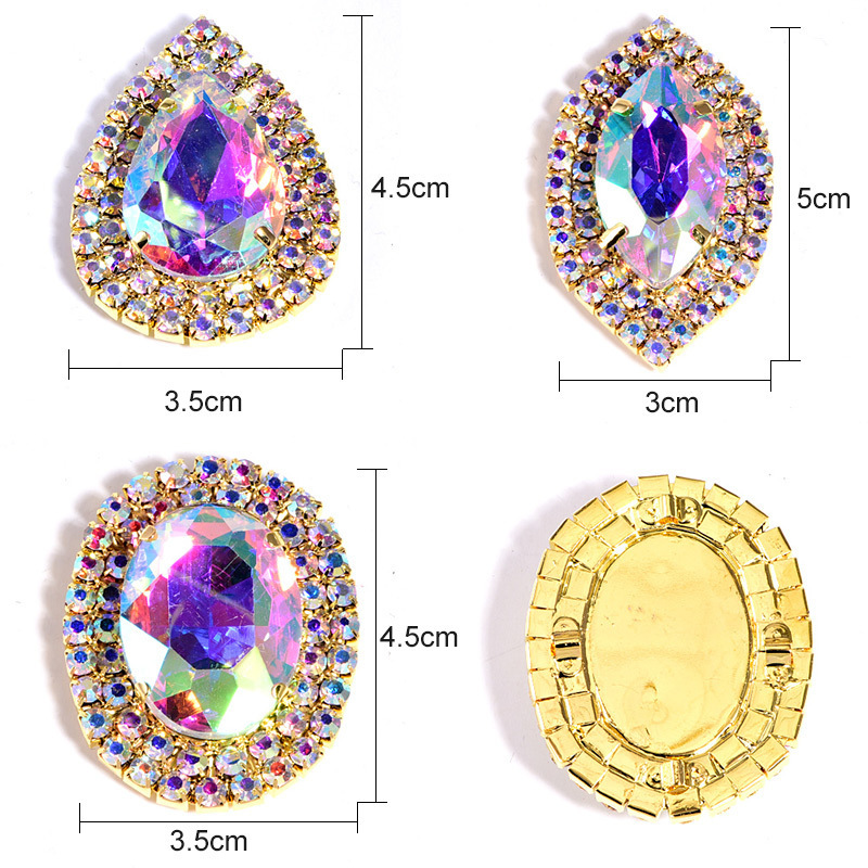 金底银底玻璃水滴椭圆马眼胸花胸针别针扣别服装配件