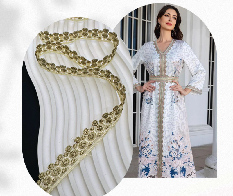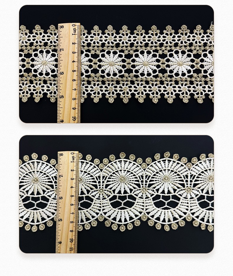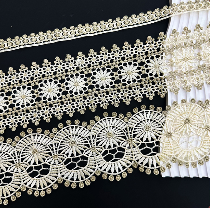 金线细线花边 水溶刺绣花边 金线涤纶拼接花边民族风跨境服饰