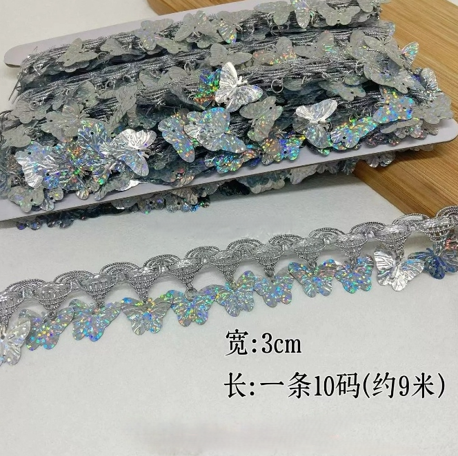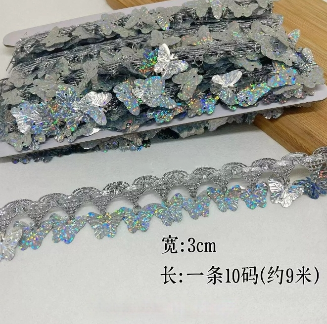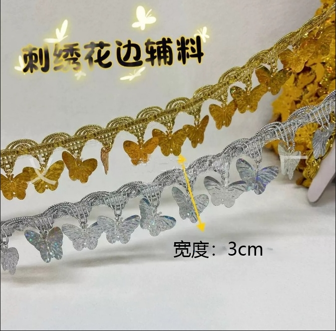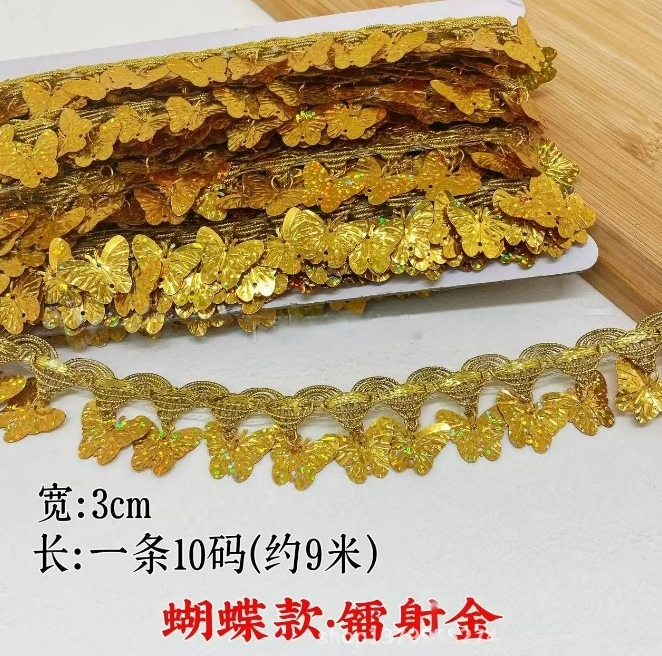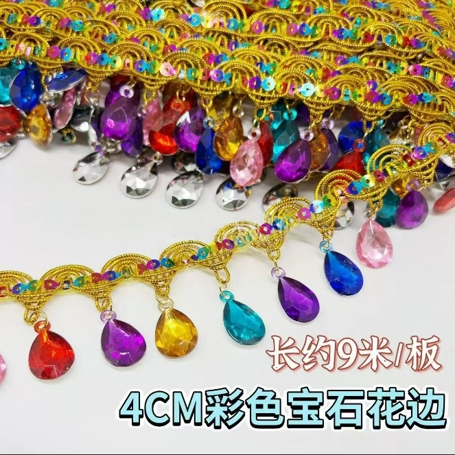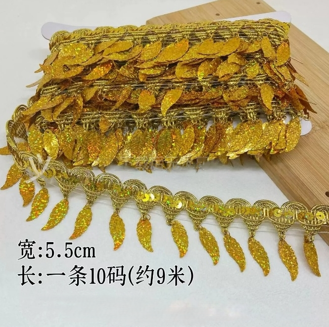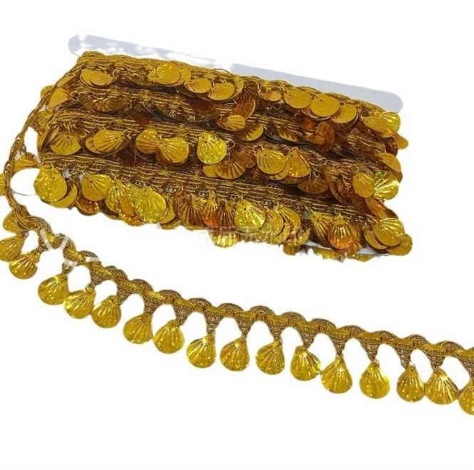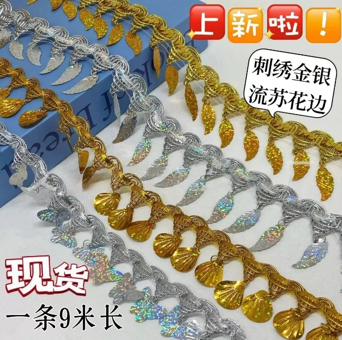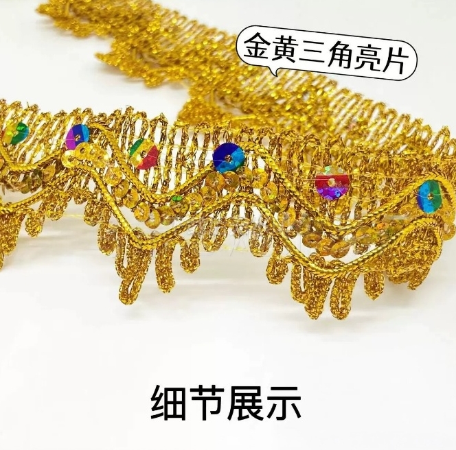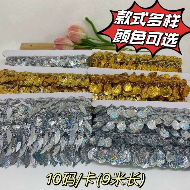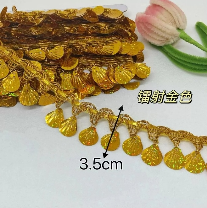 金色花边吊珠民族风装饰新款手工镭射吊片贝壳花边舞台演出服辅料