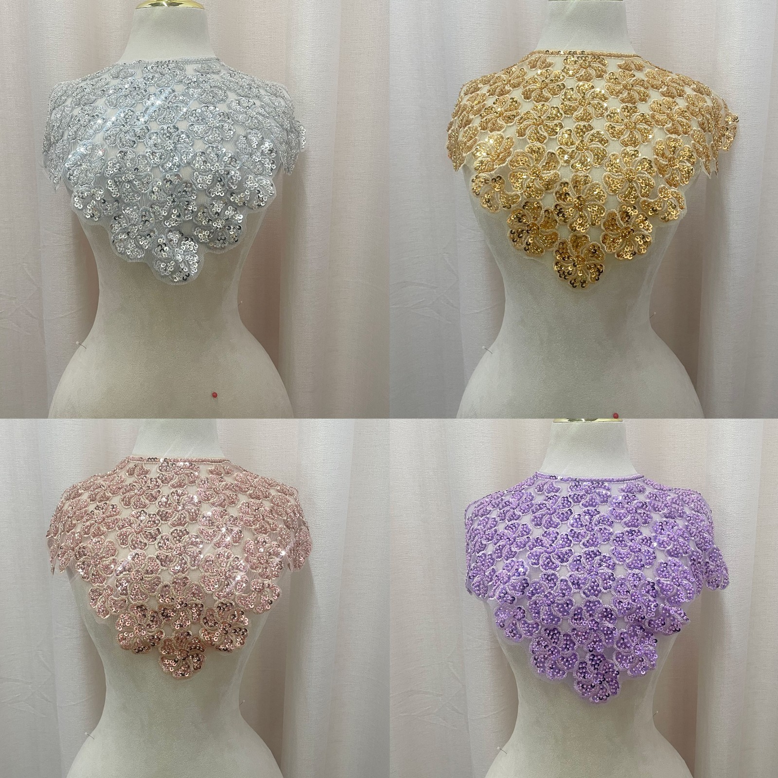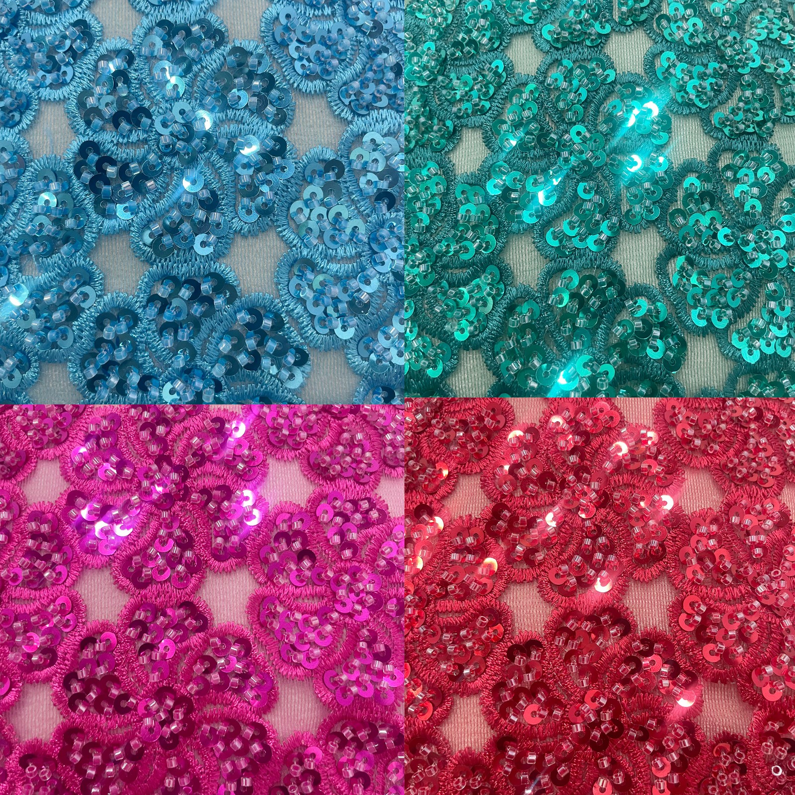 非洲风格亮片花朵领潮流帆布PVC面料多种颜色网用于时尚前卫的服装