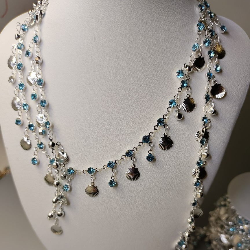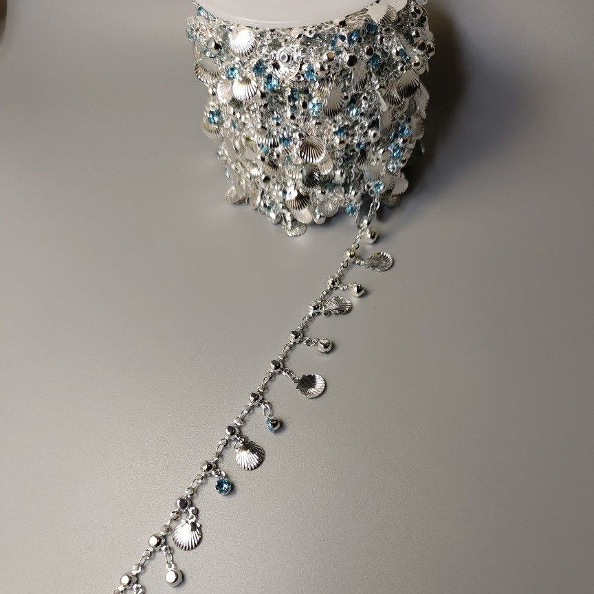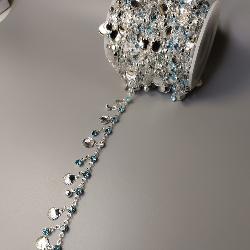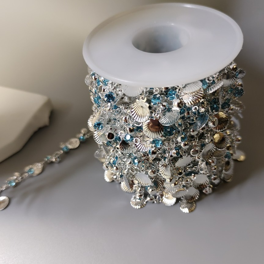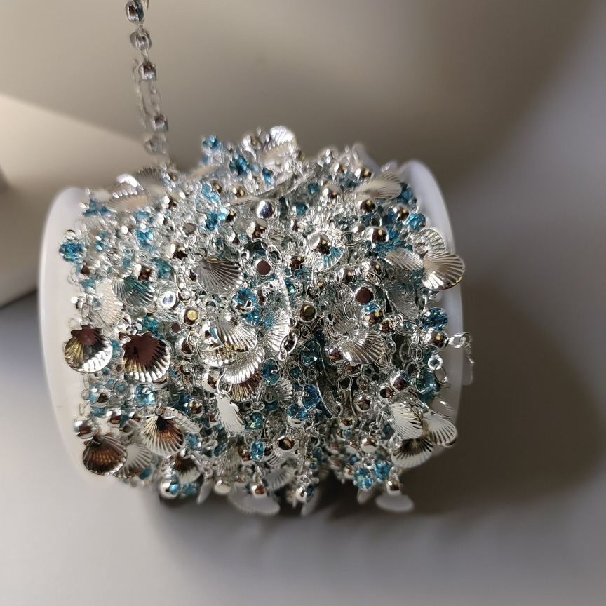饰品链条湖水蓝钻吊贝壳汉服腰链头饰饰品配链