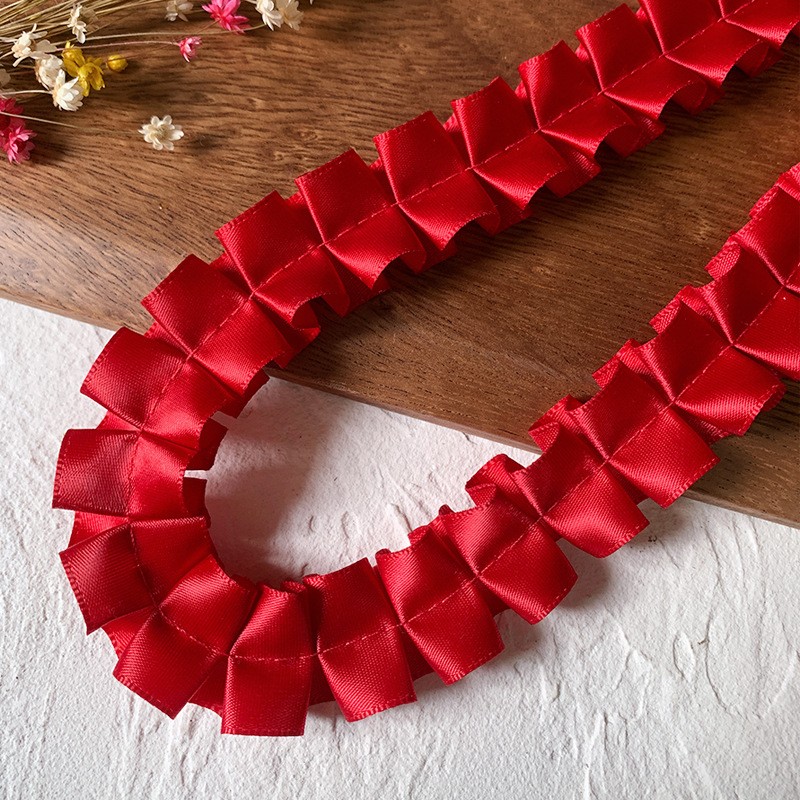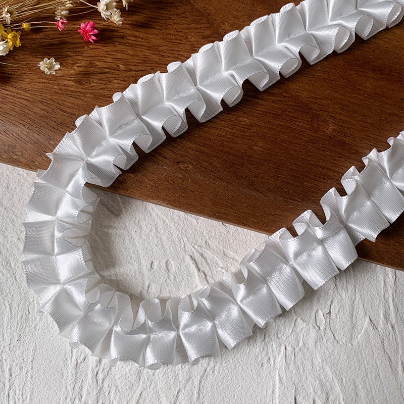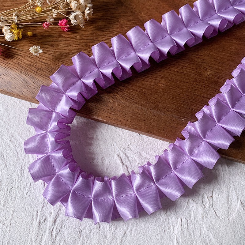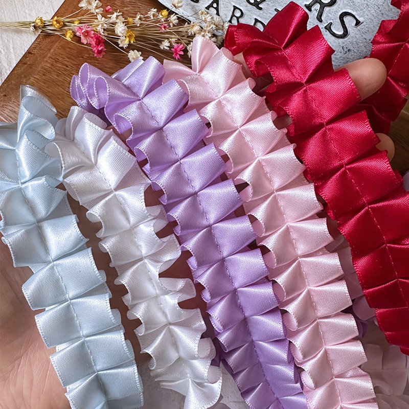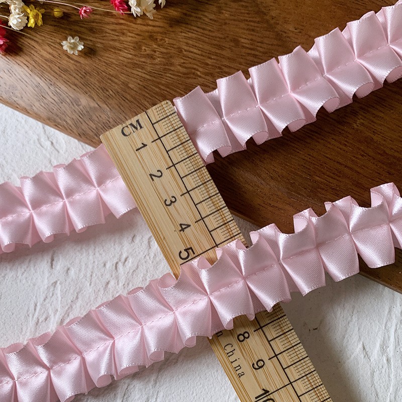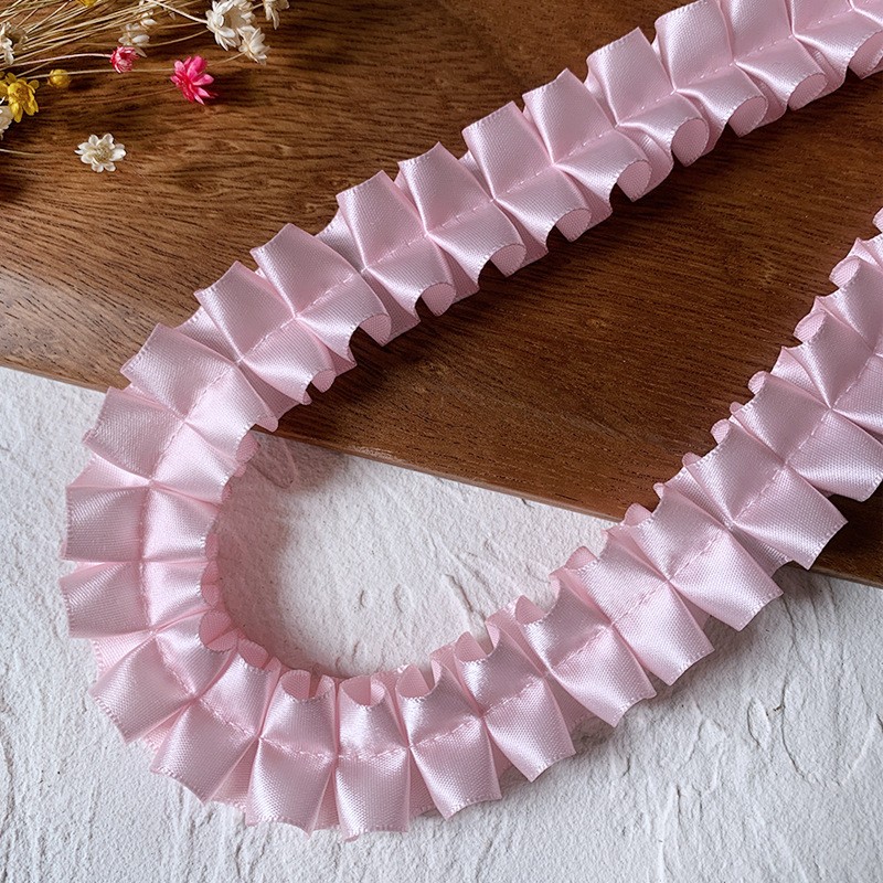 高档彩色蕾丝花边辅料粉色丝带百褶服装领口diy材料