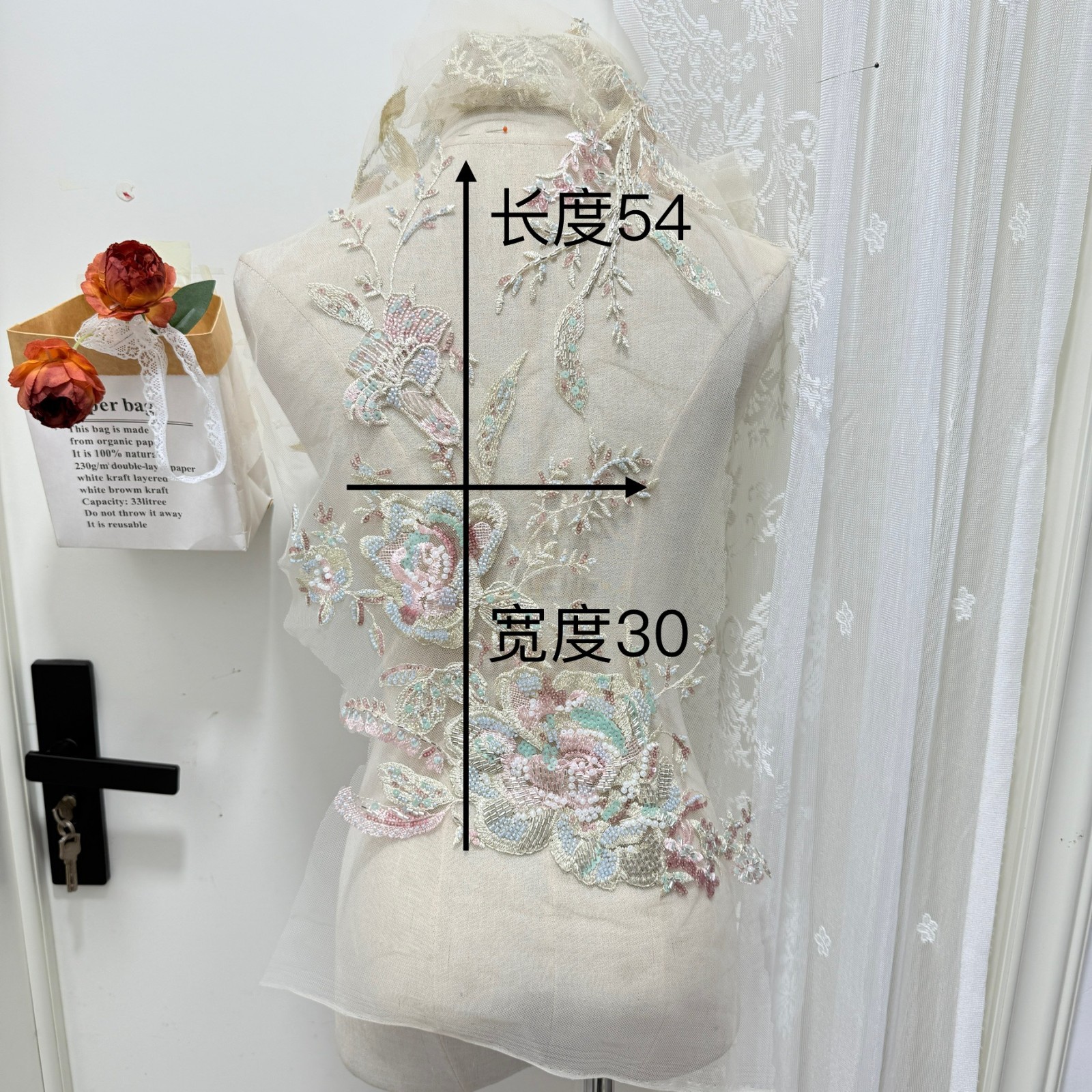 高档钉珠立体刺绣蕾丝花朵布贴贴花婚纱服装演出服装饰辅料