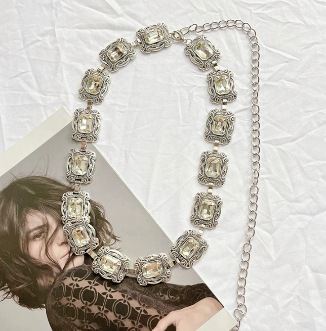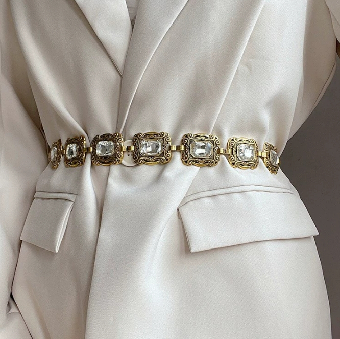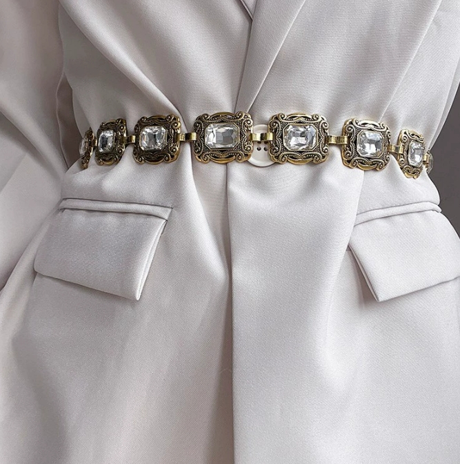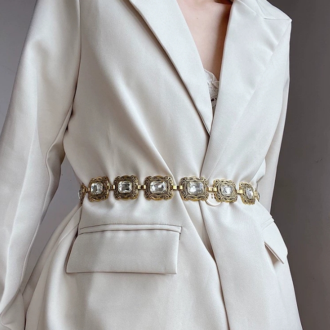 高级感腰链配饰女水钻链条腰带装饰配连衣裙子毛衣西装牛仔裤链子