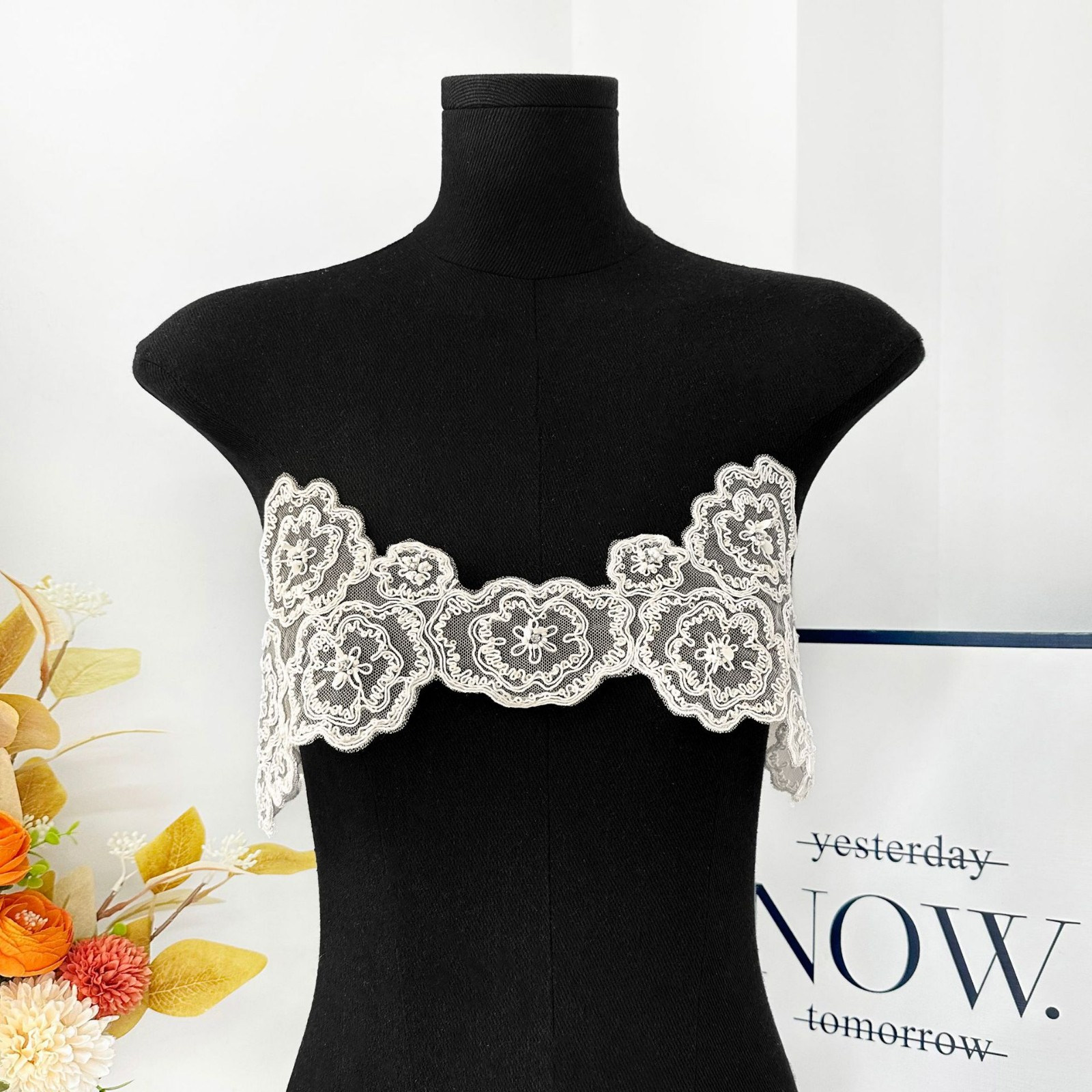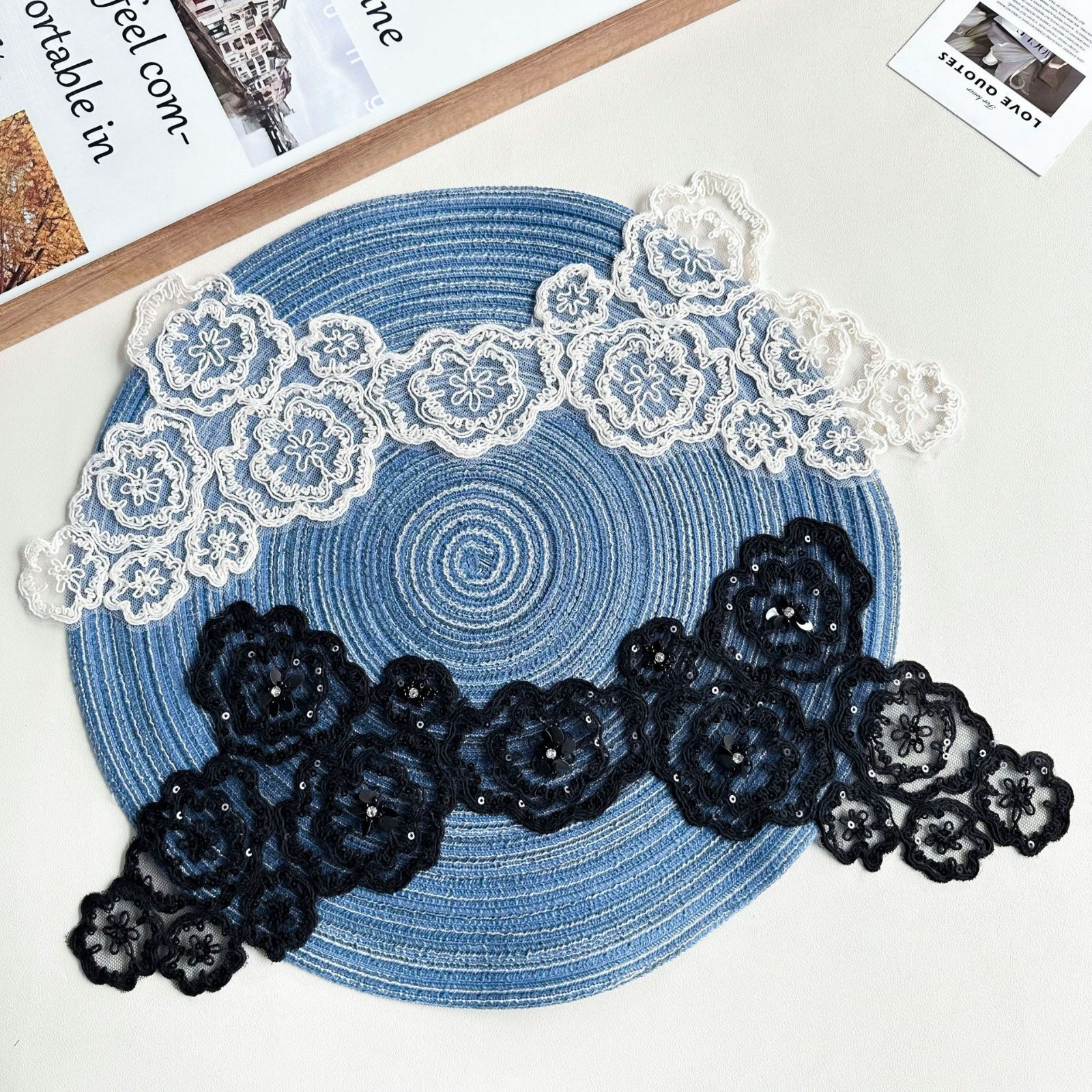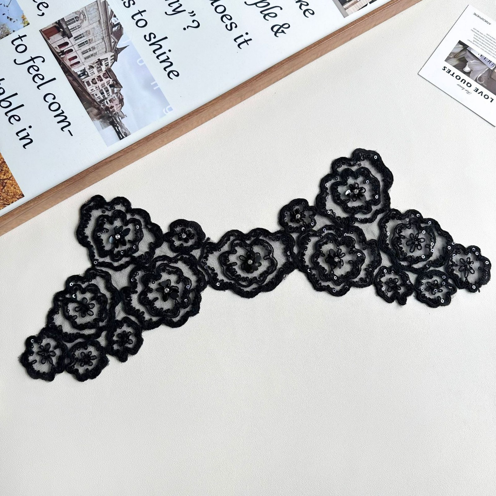黑杏双色立体花朵蕾丝贴片钉钻刺绣装饰辅料装饰睡衣吊带裙连衣裙