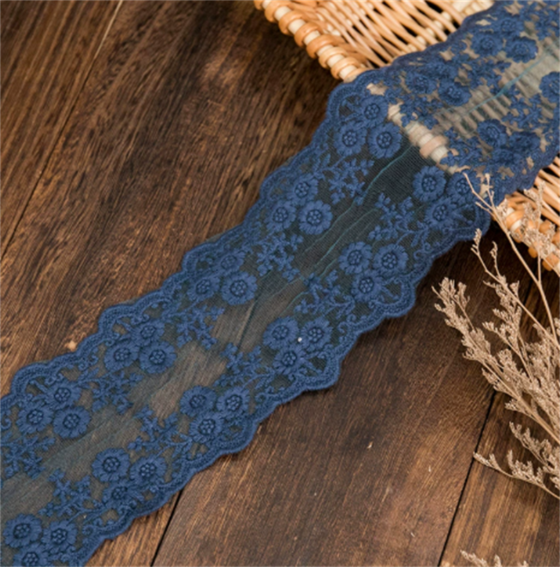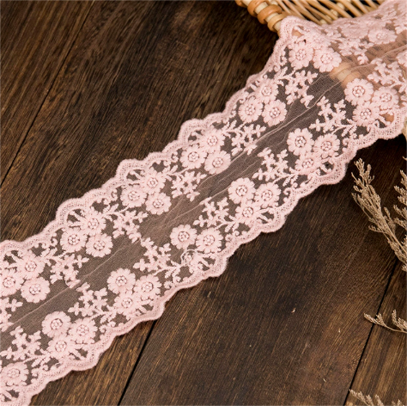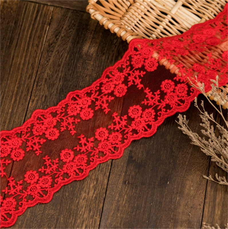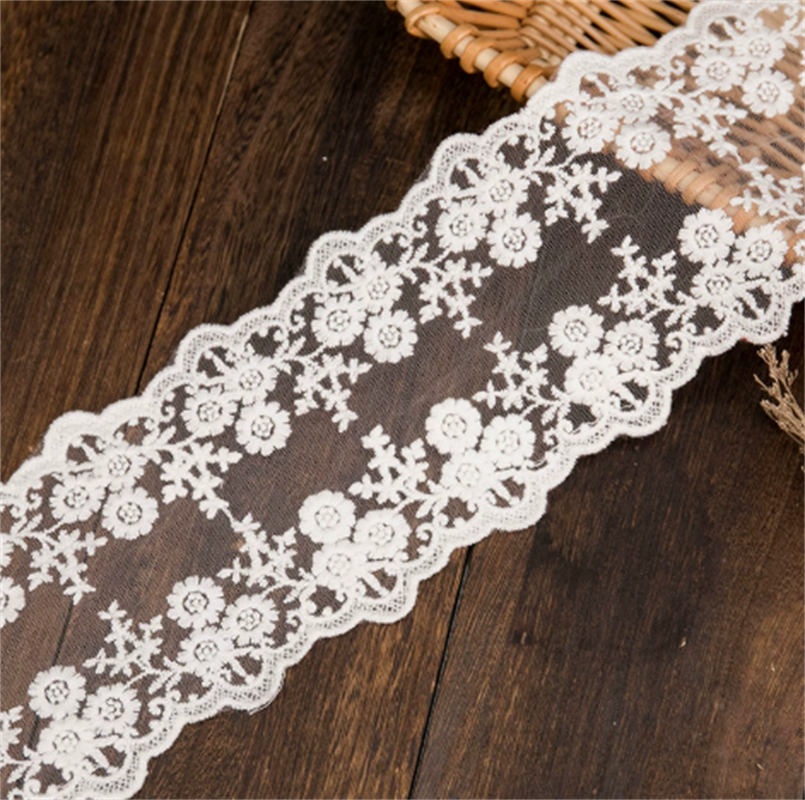 11CM宽 彩色棉线水溶刺绣网纱花边 双边对称蝴蝶结发饰蕾丝辅料
