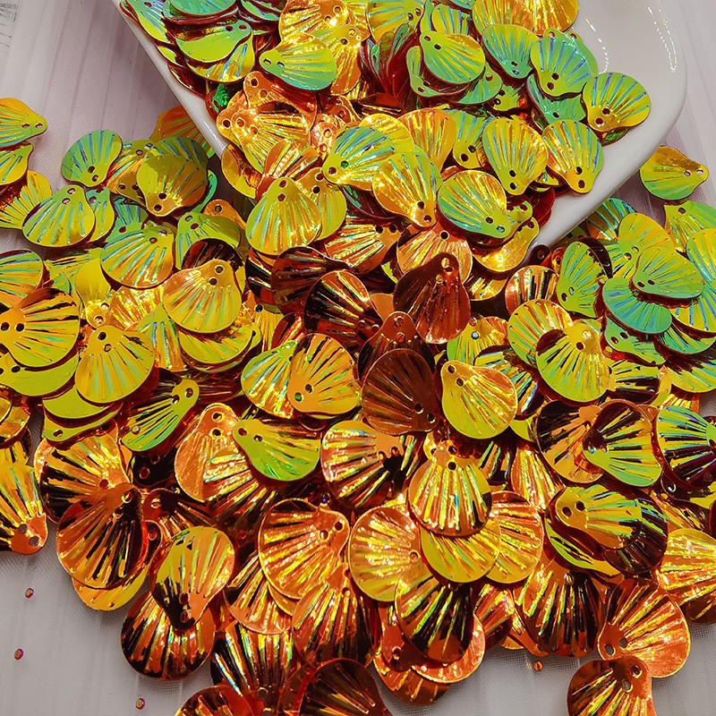 13毫米金色小贝壳亮片PVC装饰配件 用于服装和鞋子