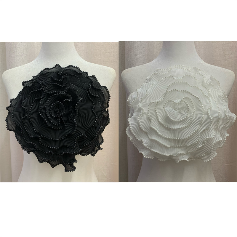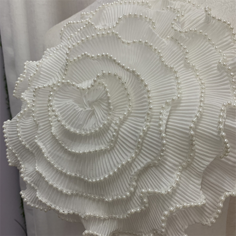 2025年春夏新雪纺压褶珍珠花上衣装饰辅料工艺花