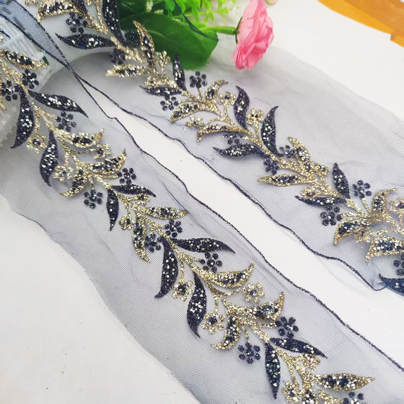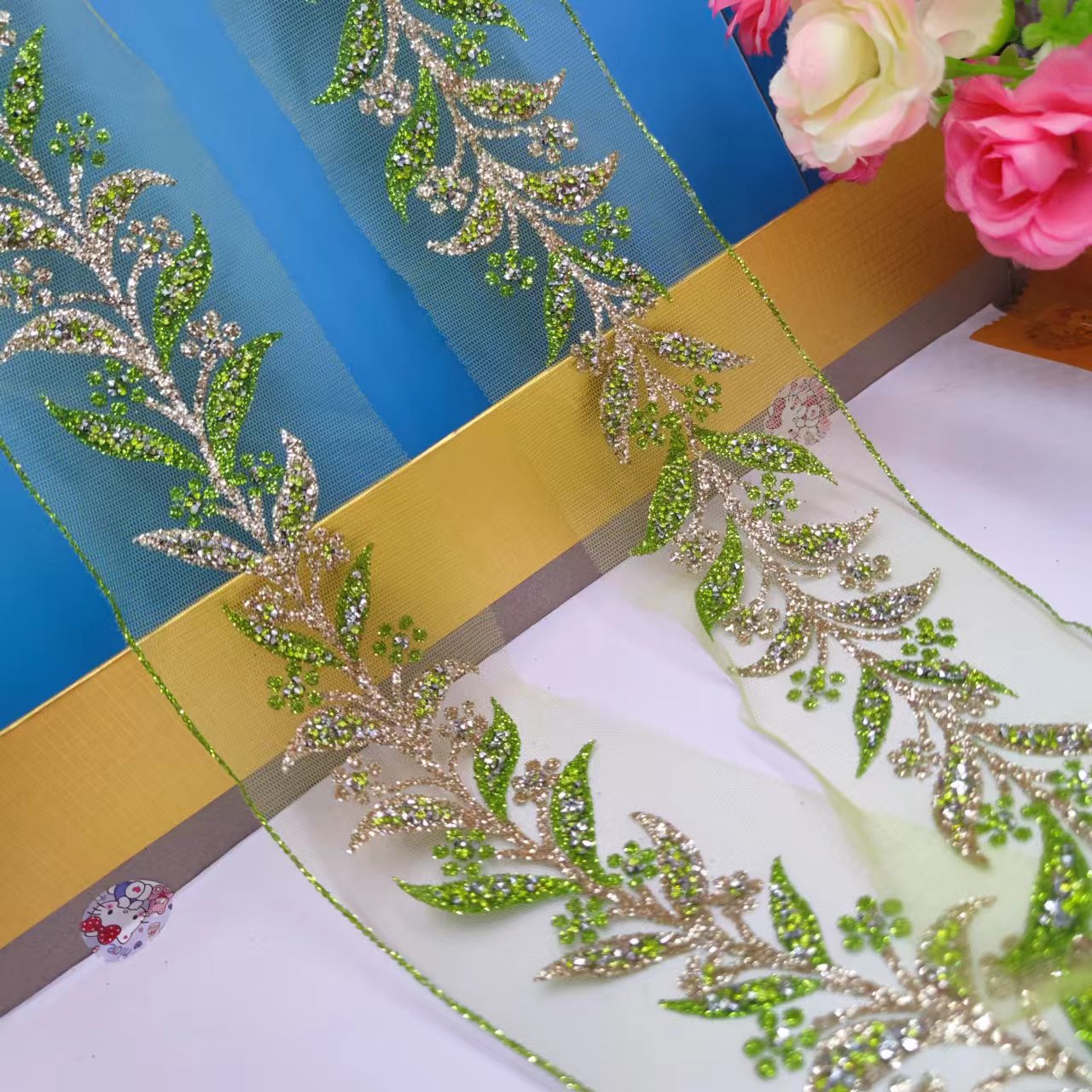 8CM6CM宽新款烫钻闪粉网底花边舞蹈服装装饰闪亮辅料配饰