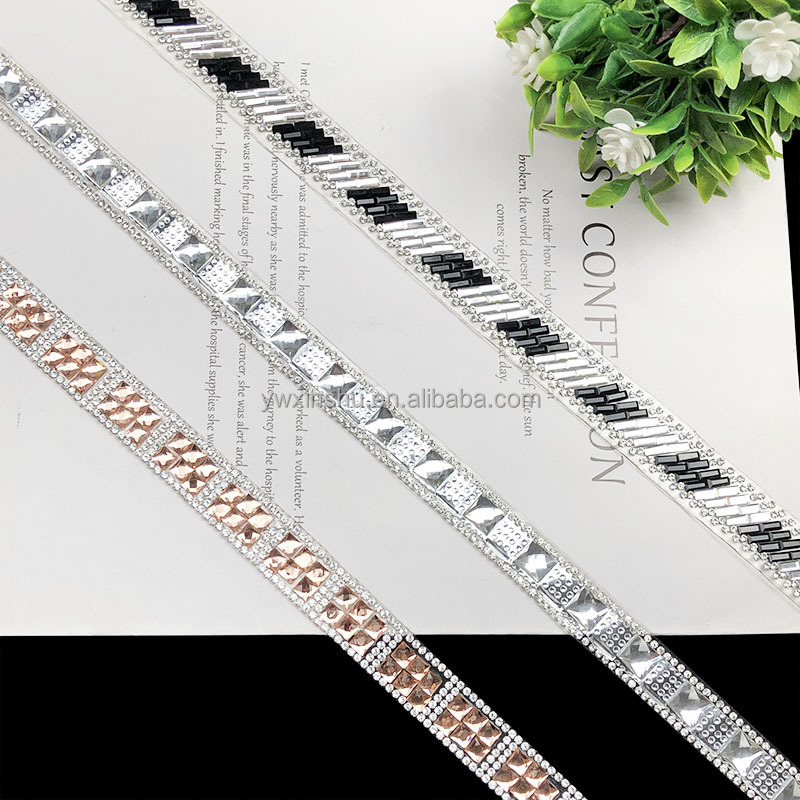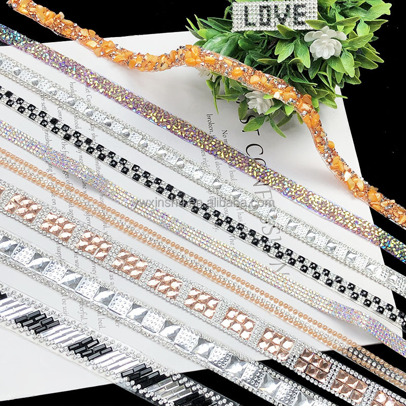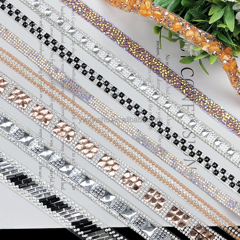 Beautiful Hotfix Rhinestone Chain Ribbon Trimming Hotfix Patches Applique